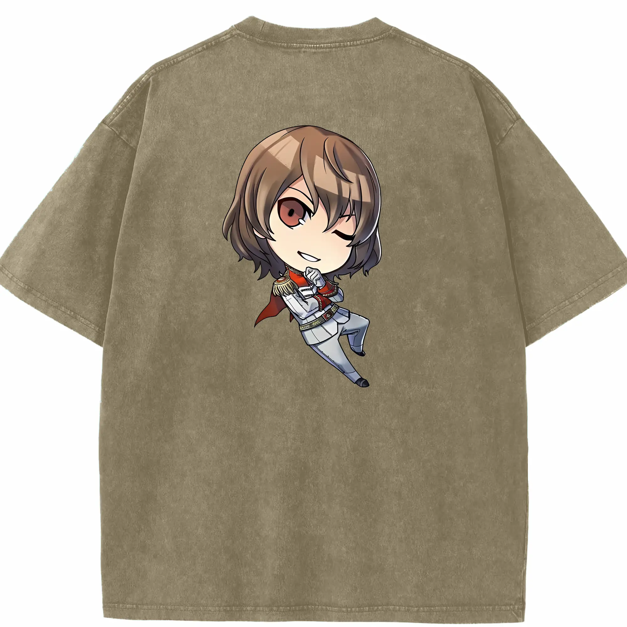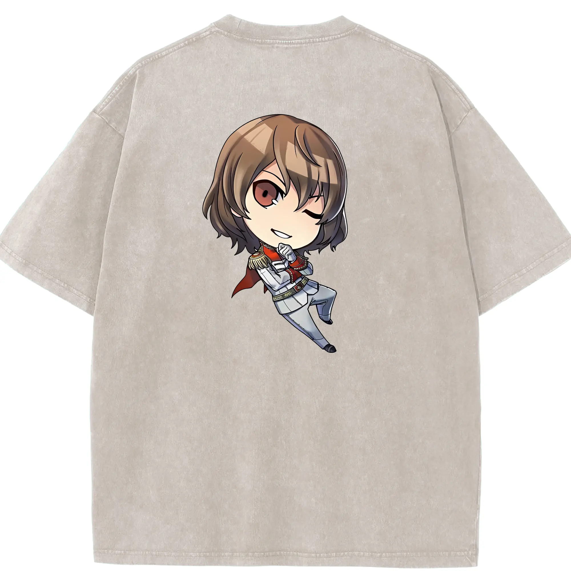 ペルソナ グッズ,明智吾郎 - 綿100% ヴィンテージ風 半袖Tシャツ ・ フロントプリント ・ 柔らか肌触り ・ 通気性 快適 ・ スポーツ カジュアル 外出用