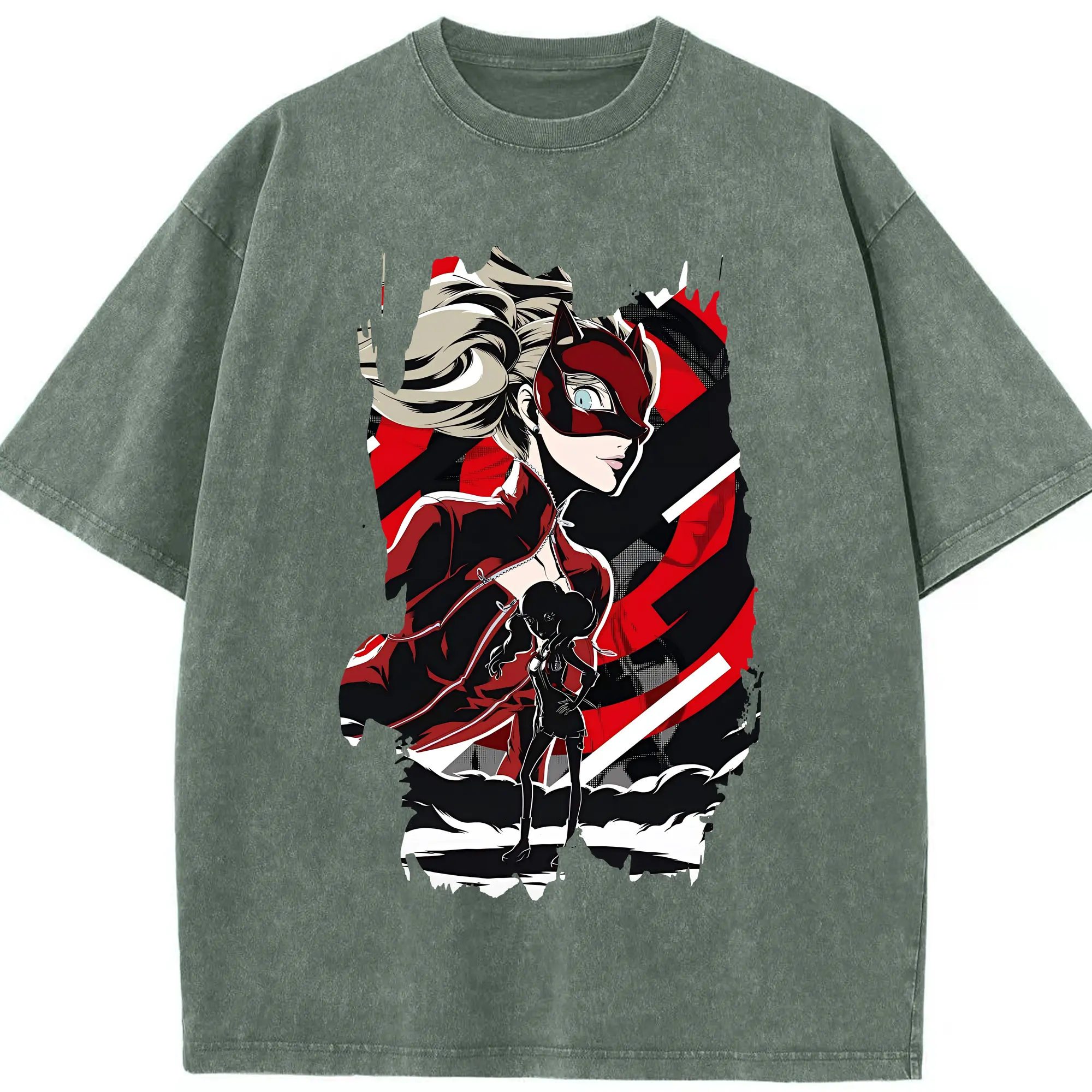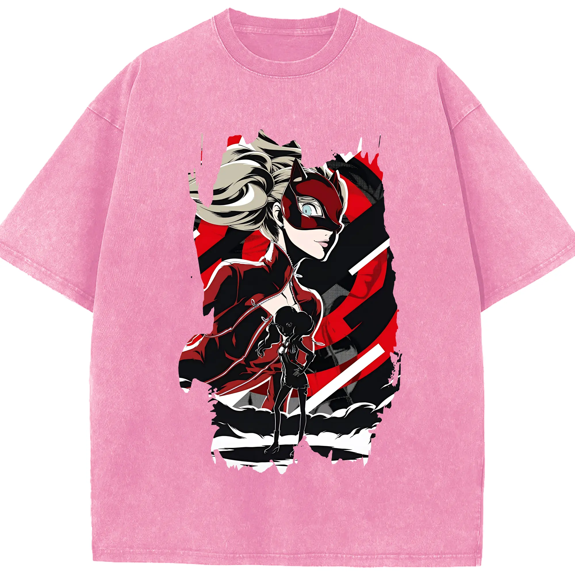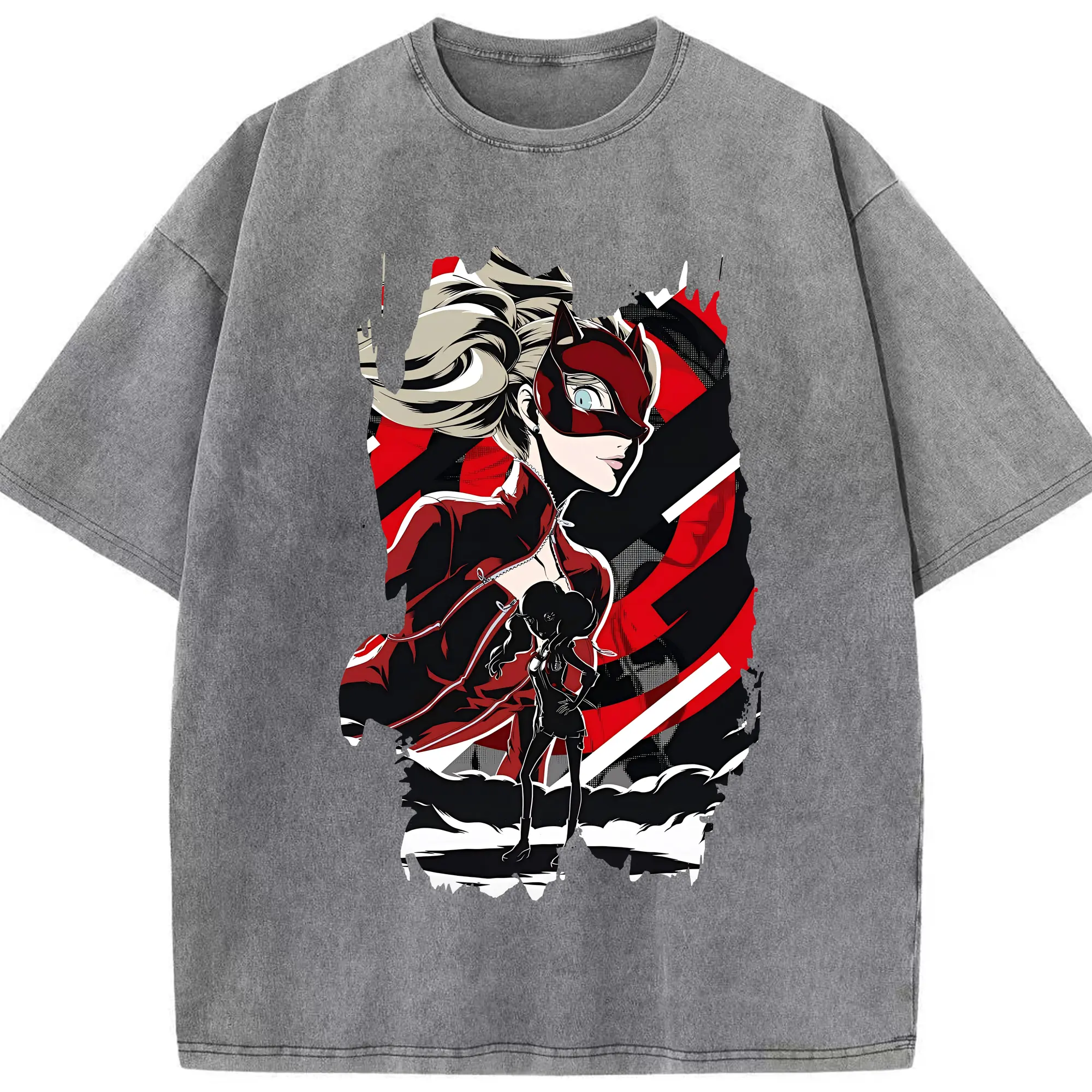 ペルソナ グッズ,高巻杏 - 綿100% ヴィンテージ風 半袖Tシャツ ・ 背面プリント ・ 柔らか肌触り ・ 通気性 快適 ・ スポーツ カジュアル 外出用