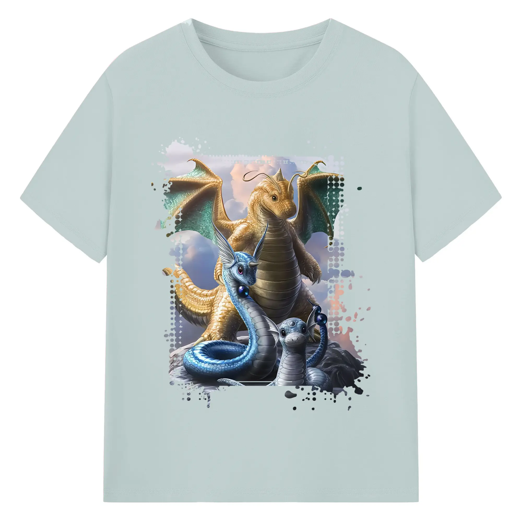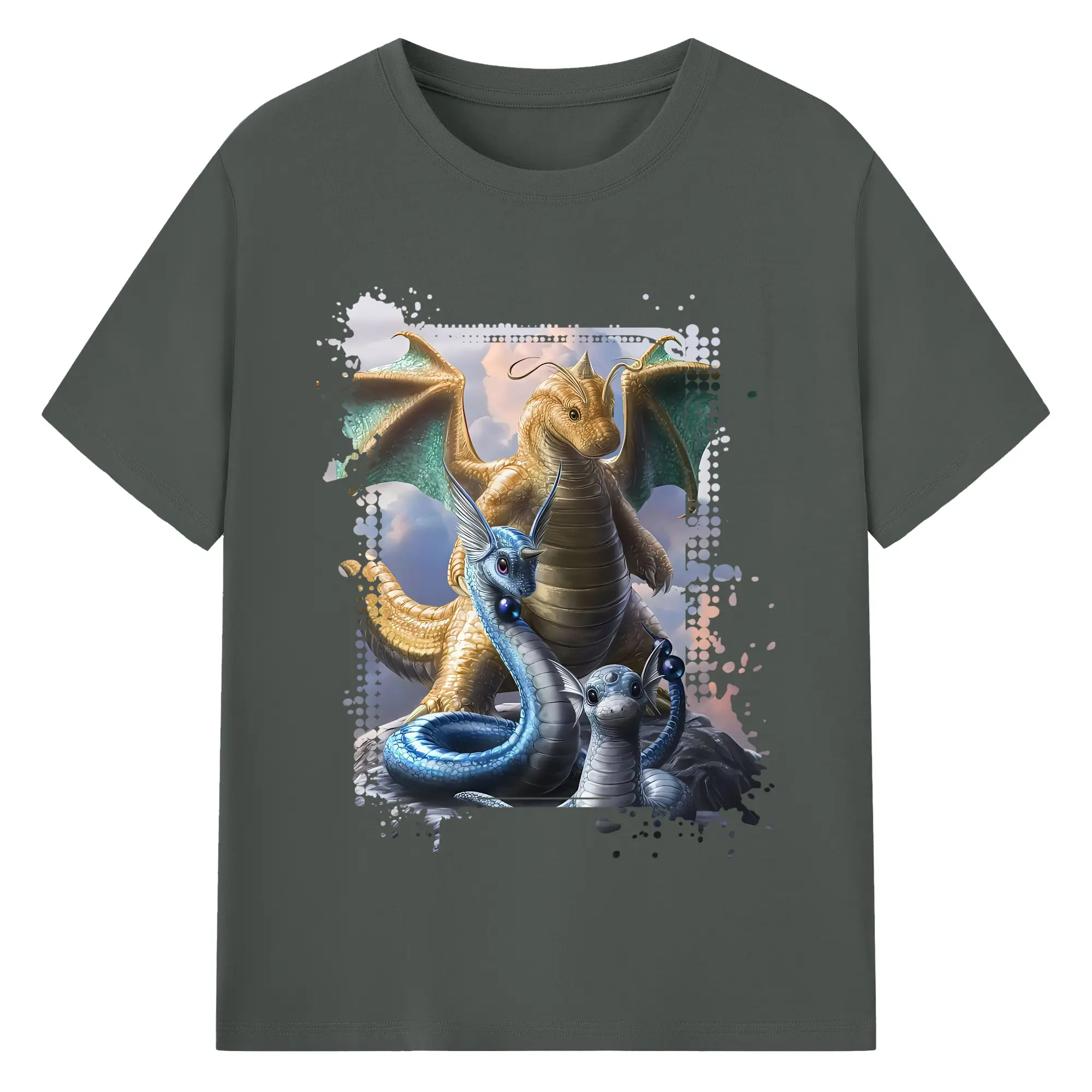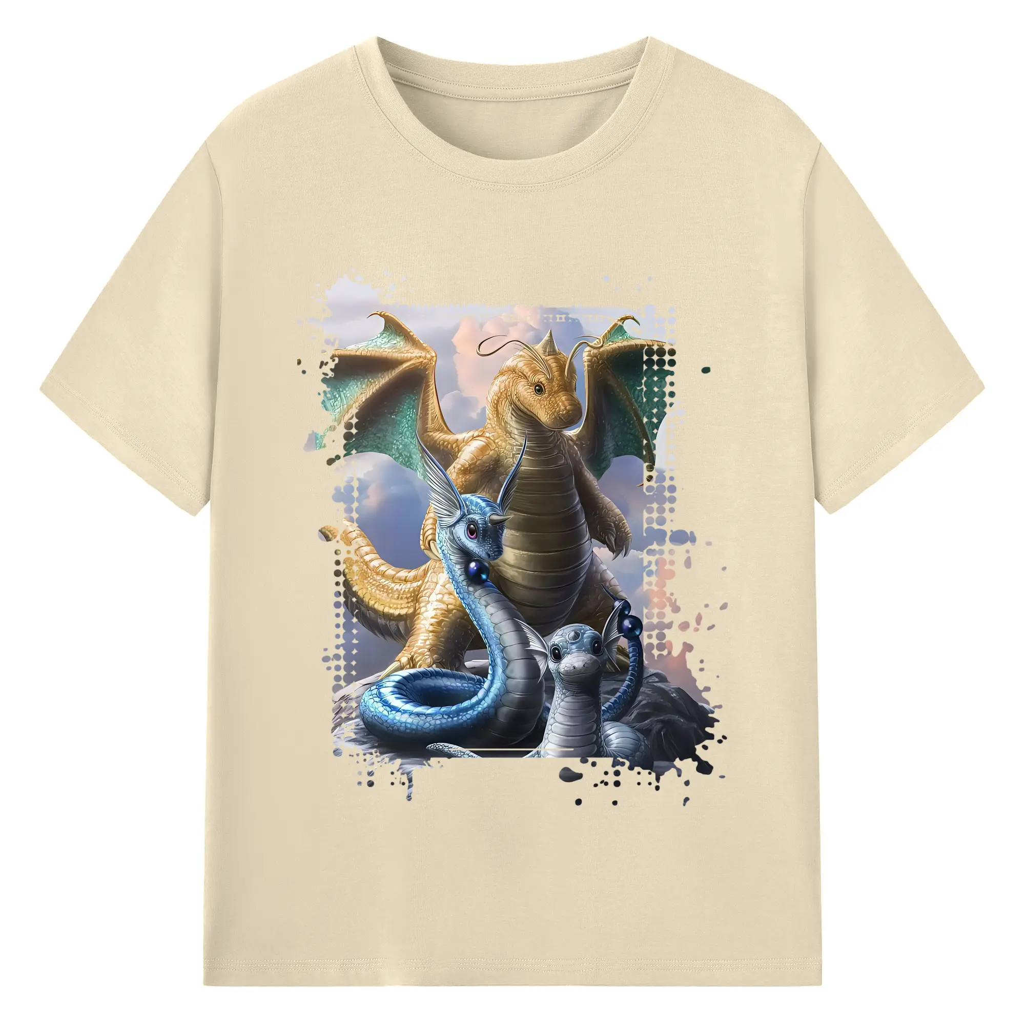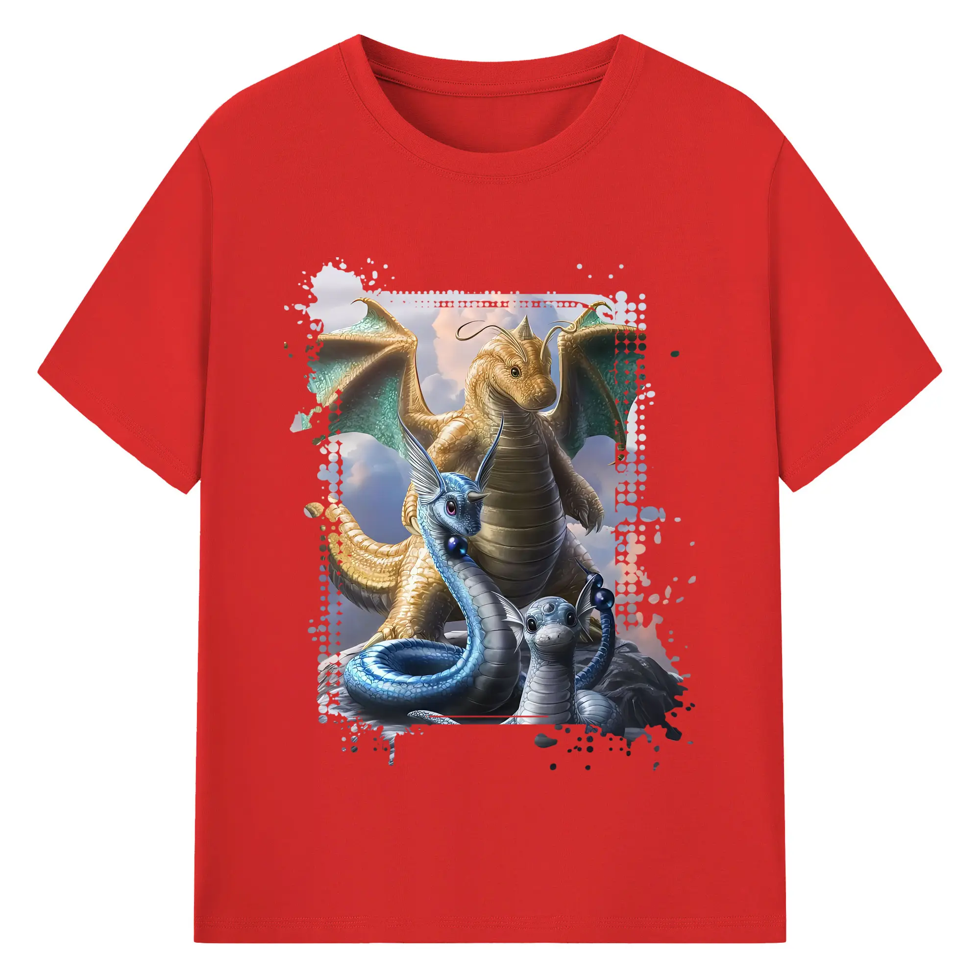 ポケモン グッズ,カイリュー - 綿100% ヴィンテージ風 半袖Tシャツ ・ フロントプリント ・ 柔らか肌触り ・ 通気性 快適 ・ スポーツ カジュアル 外出用