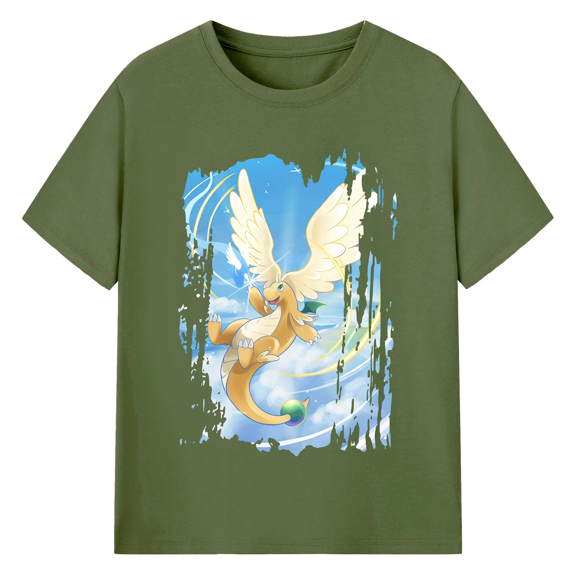 ポケモン グッズ,カイリュー - 綿100% ヴィンテージ風 半袖Tシャツ ・ フロントプリント ・ 柔らか肌触り ・ 通気性 快適 ・ スポーツ カジュアル 外出用