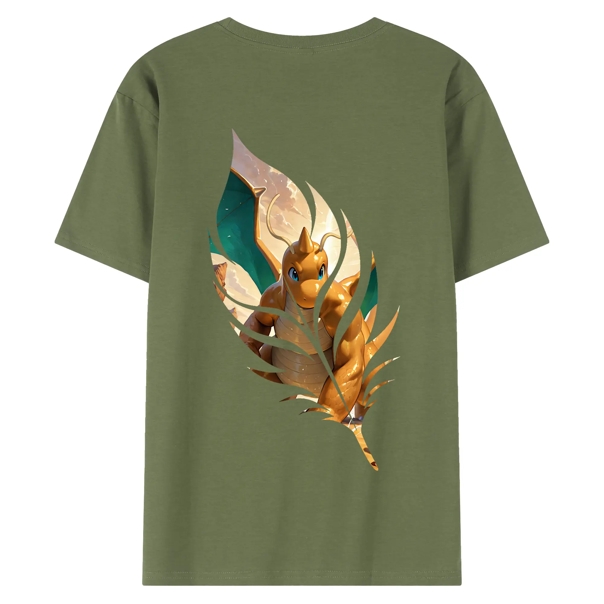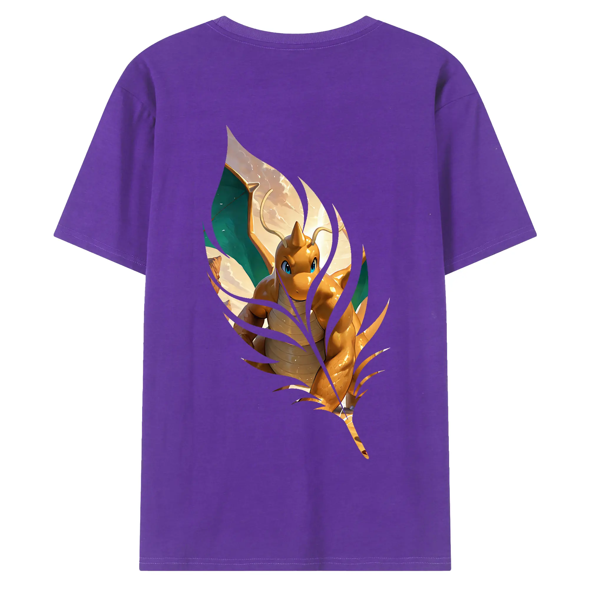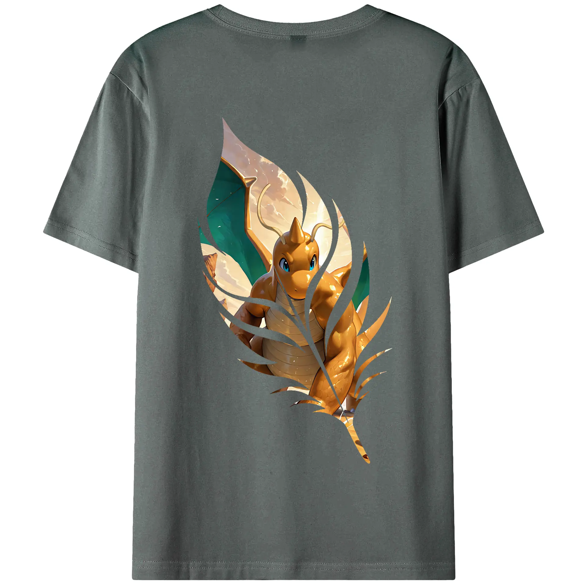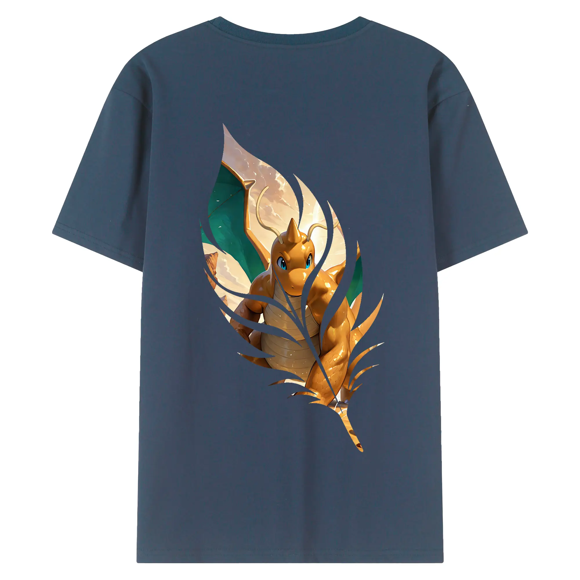 ポケモン グッズ,カイリュー - 綿100% ヴィンテージ風 半袖Tシャツ ・ 背面プリント ・ 柔らか肌触り ・ 通気性 快適 ・ スポーツ カジュアル 外出用