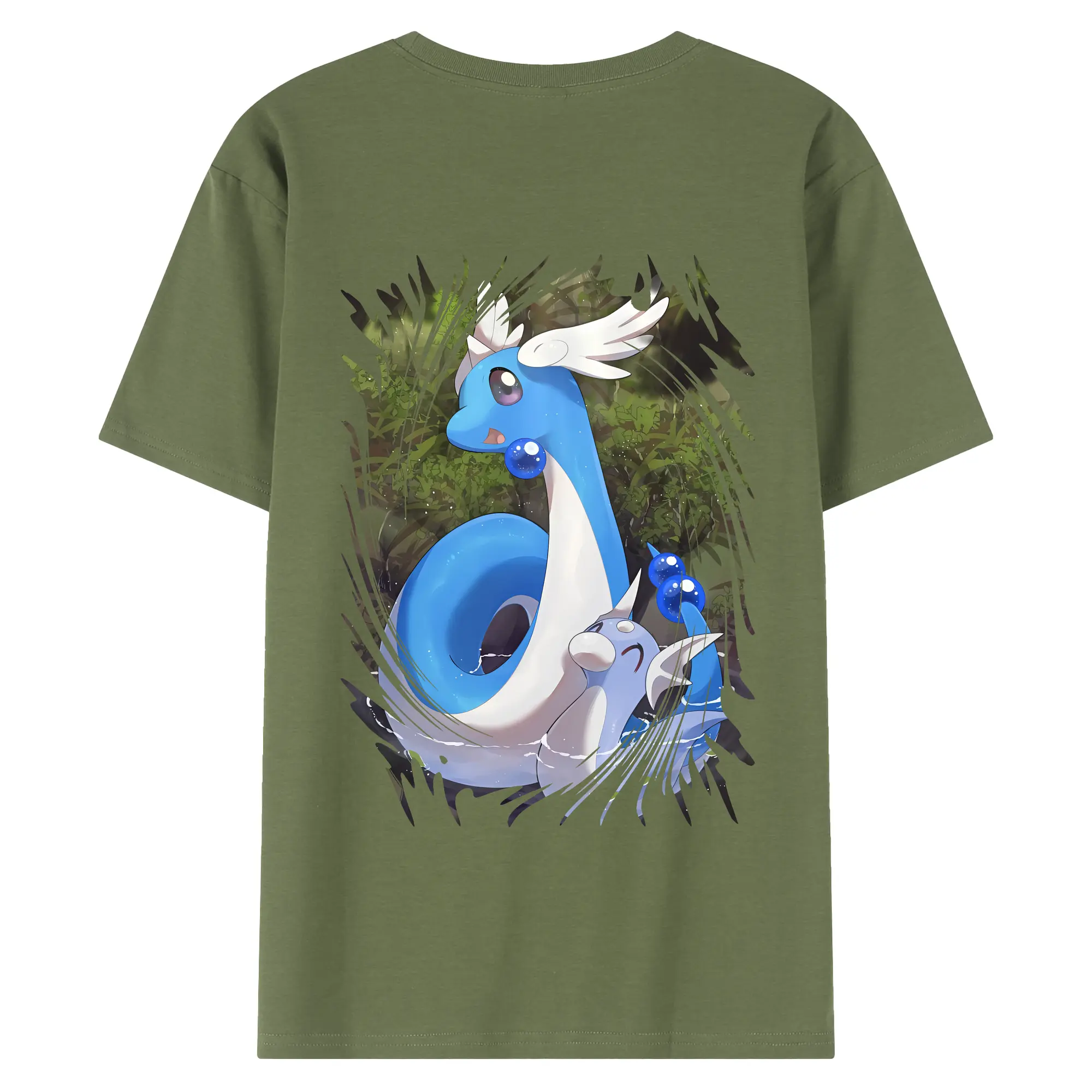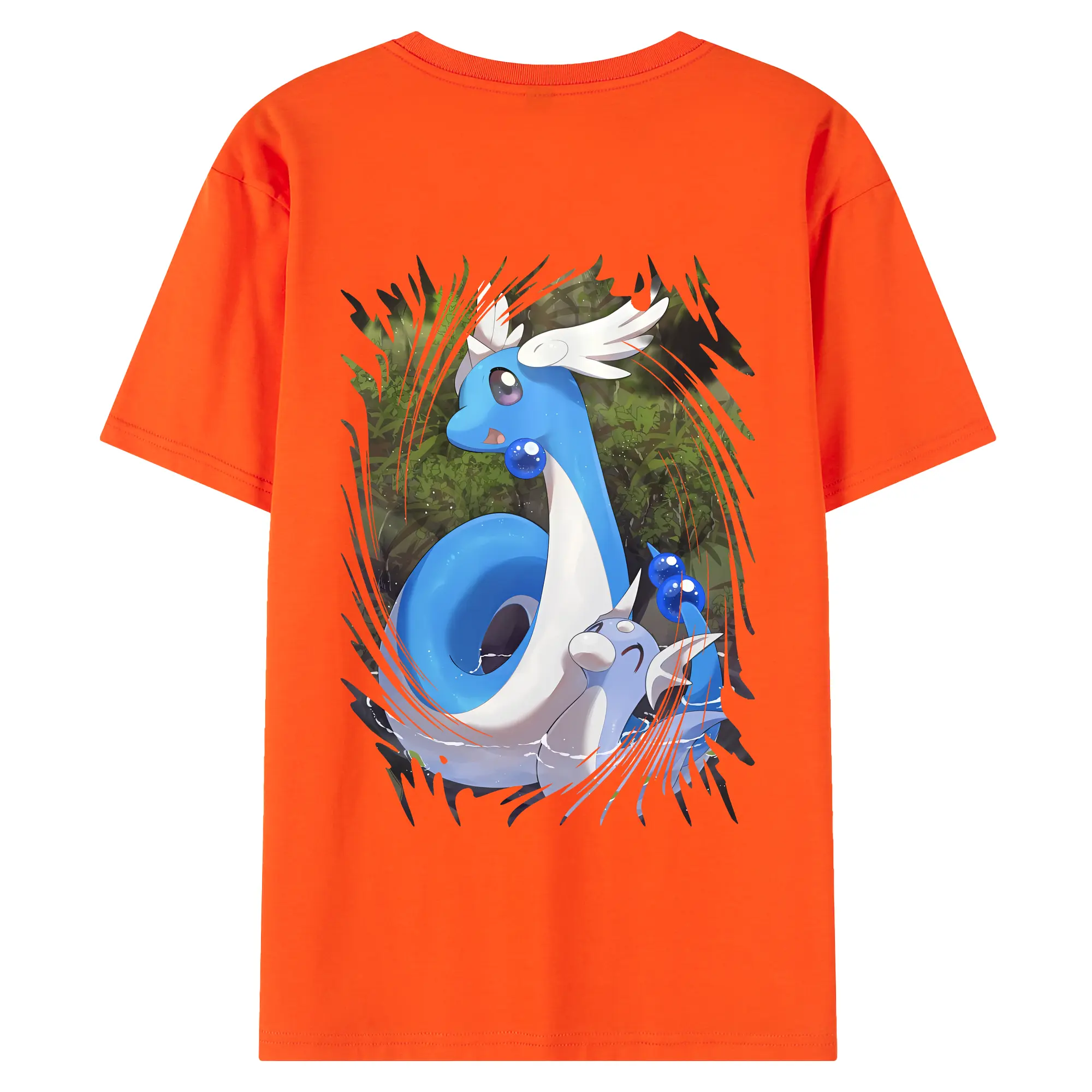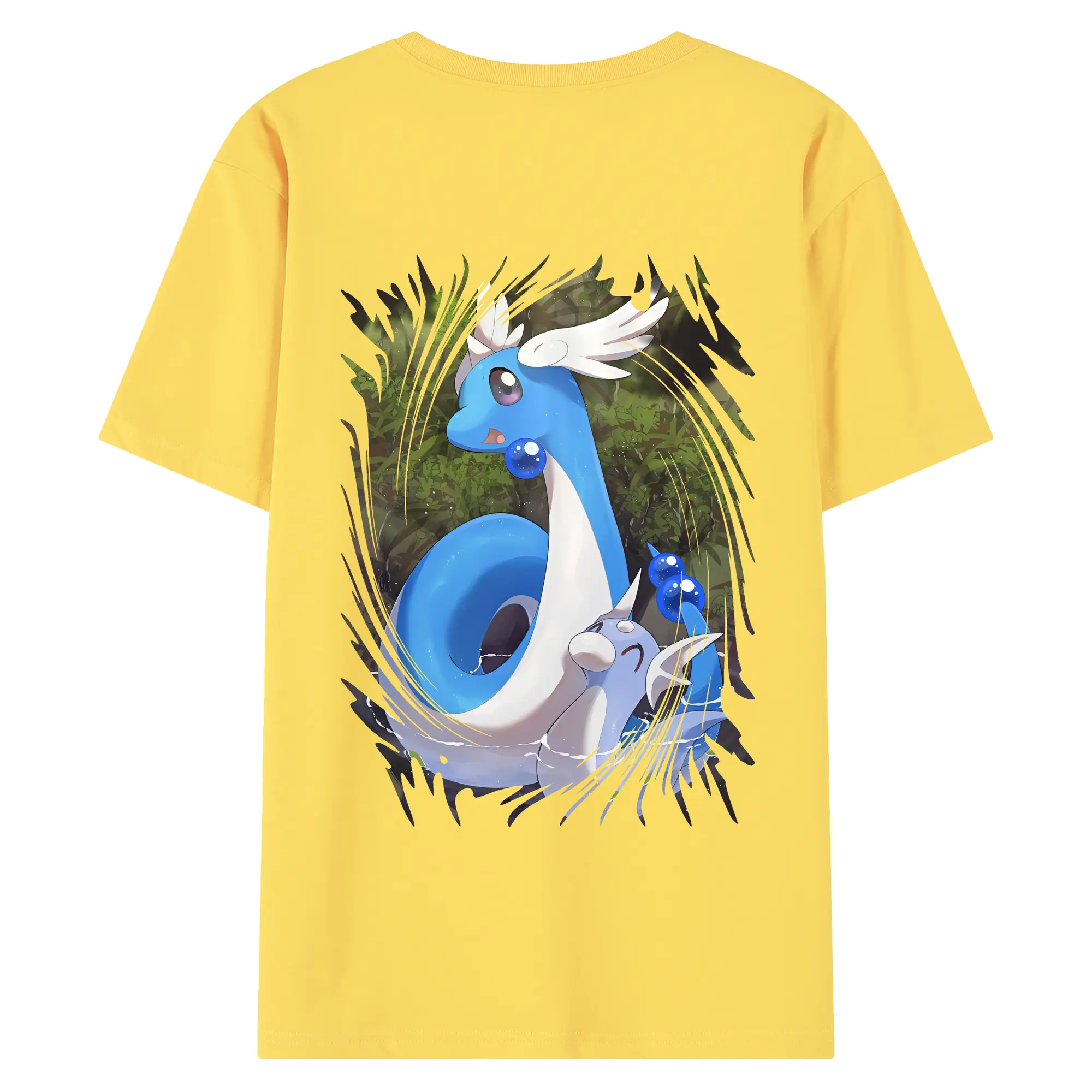 ポケモン グッズ,カイリュー - 綿100% ヴィンテージ風 半袖Tシャツ ・ 背面プリント ・ 柔らか肌触り ・ 通気性 快適 ・ スポーツ カジュアル 外出用