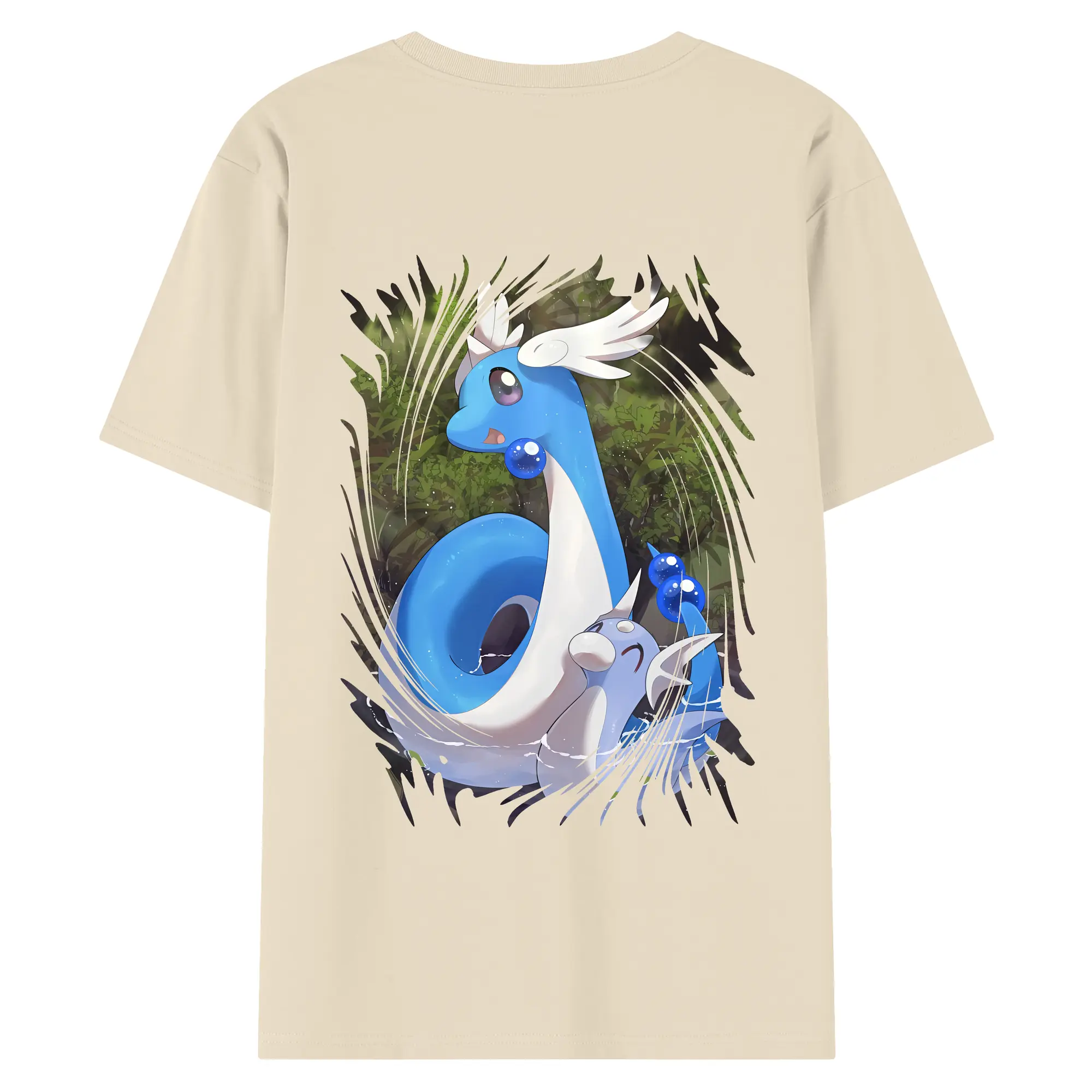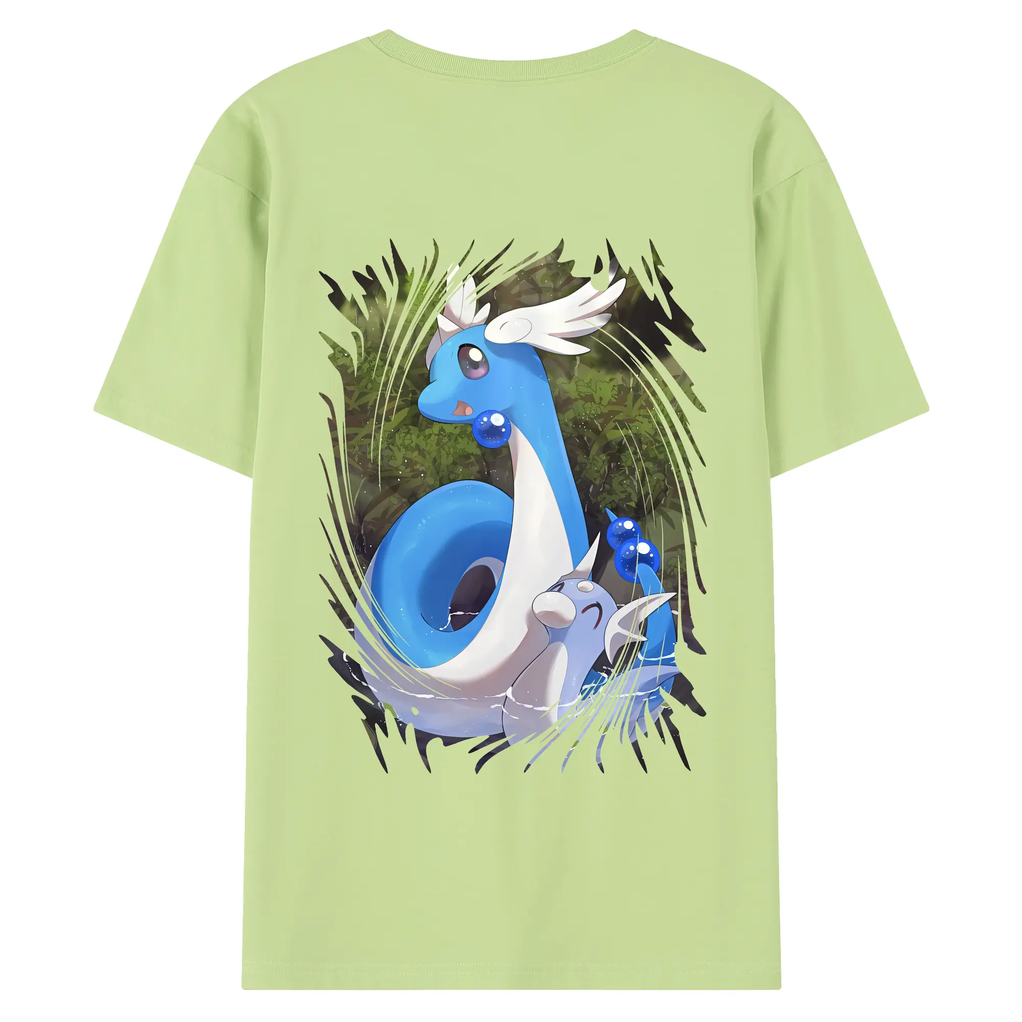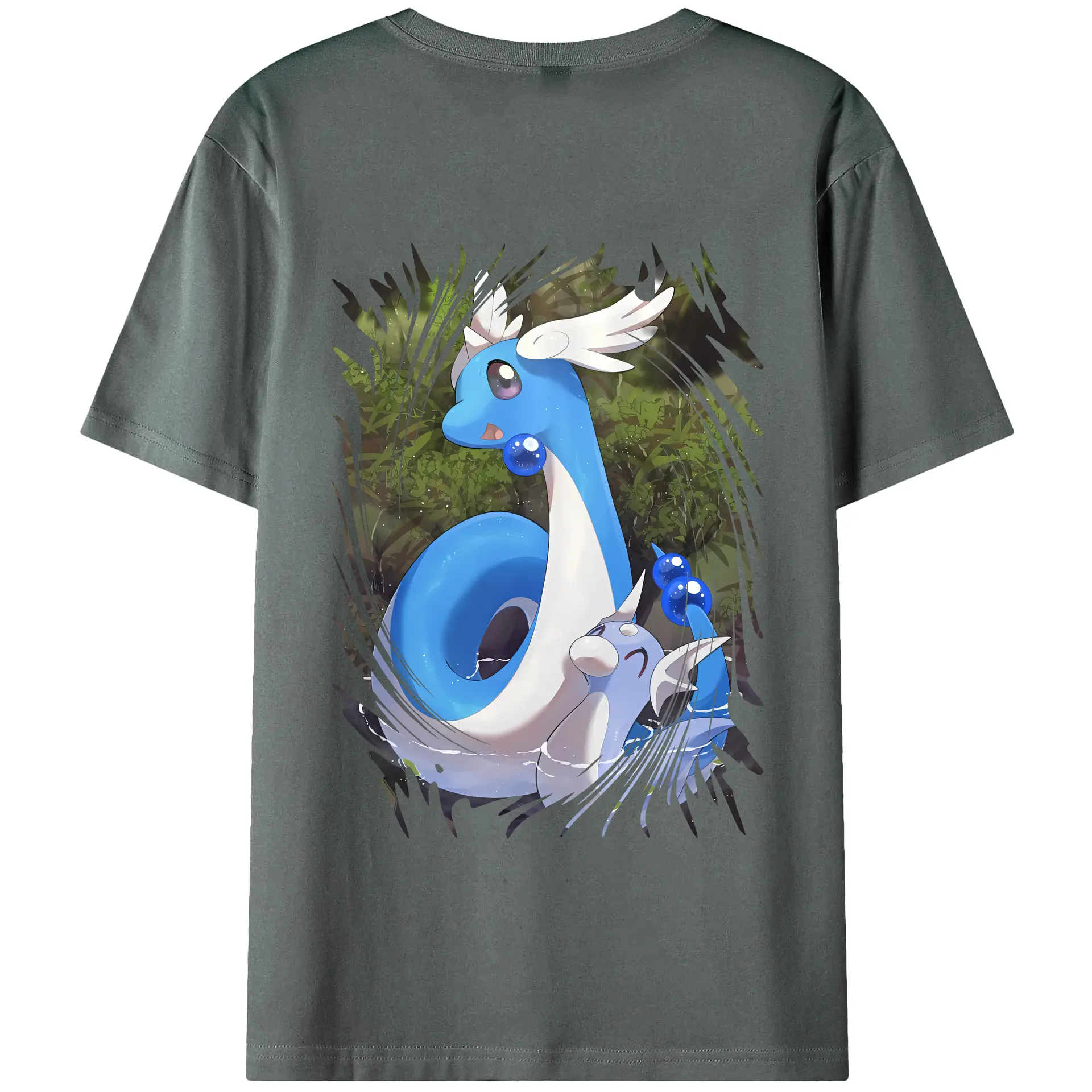 ポケモン グッズ,カイリュー - 綿100% ヴィンテージ風 半袖Tシャツ ・ 背面プリント ・ 柔らか肌触り ・ 通気性 快適 ・ スポーツ カジュアル 外出用