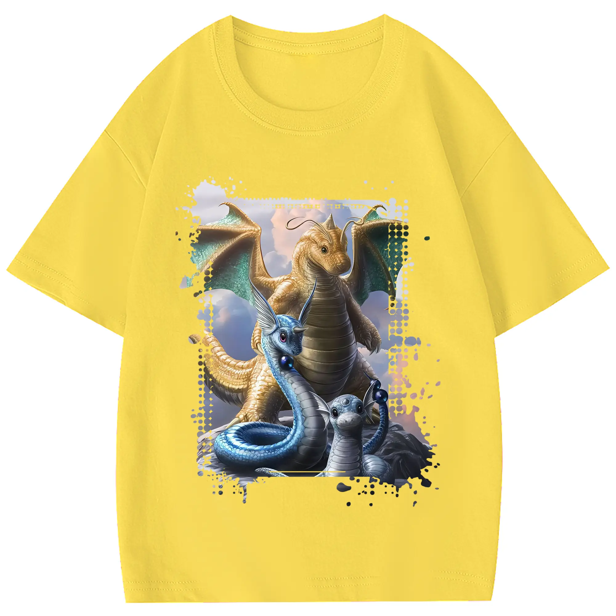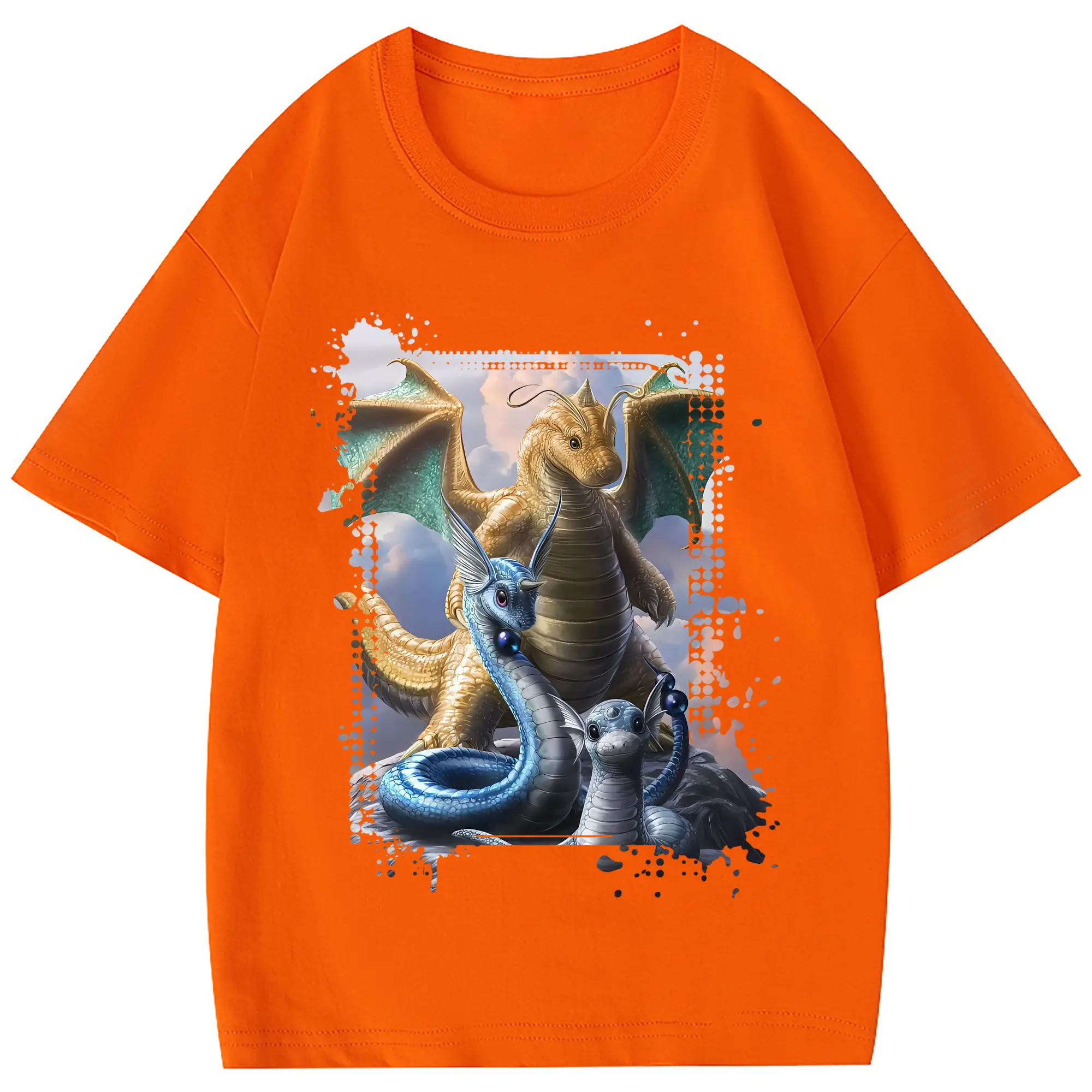 ポケモン グッズ,カイリュー - 綿100% ヴィンテージ風 半袖Tシャツ ・ フロントプリント ・ 柔らか肌触り ・ 通気性 快適 ・ スポーツ カジュアル 外出用
