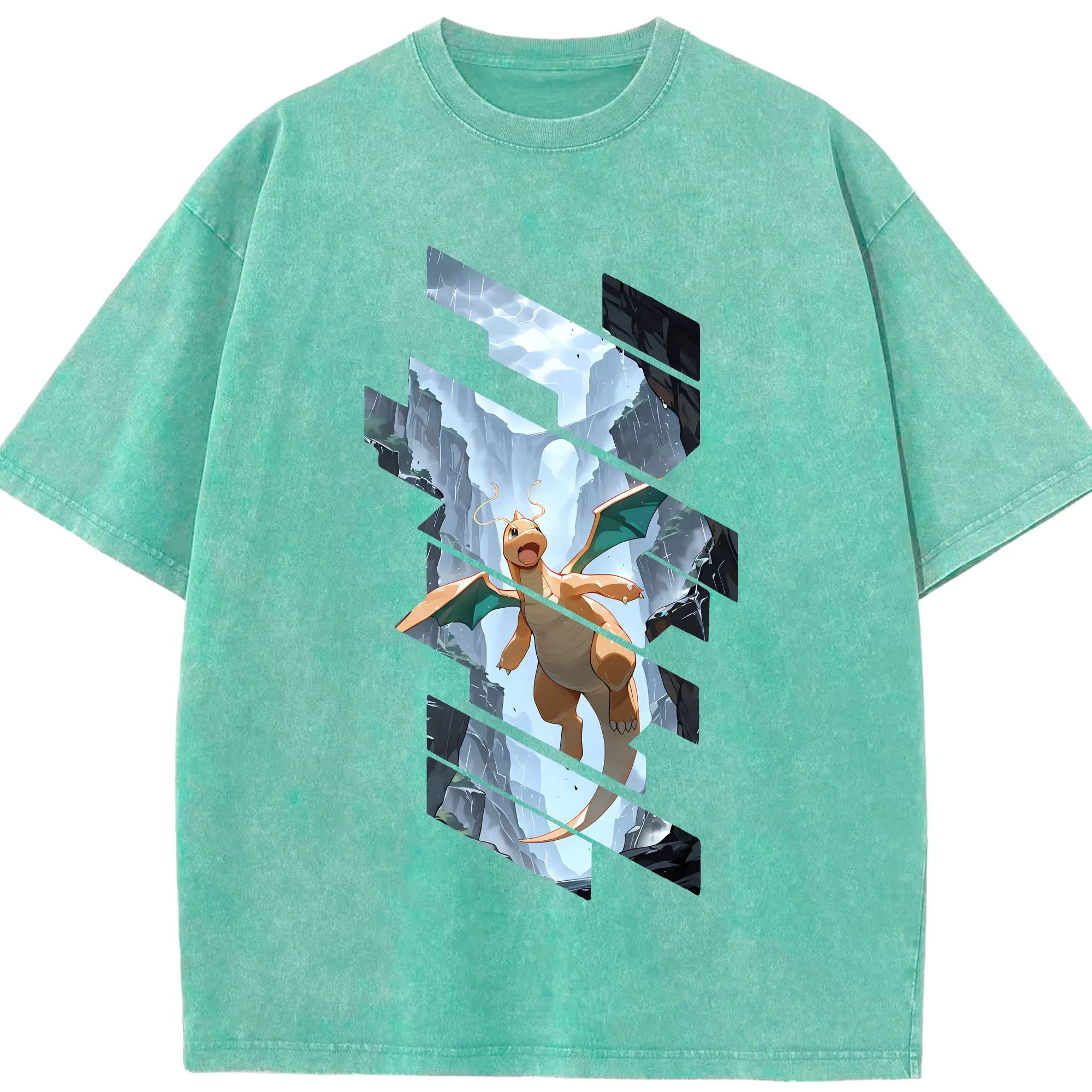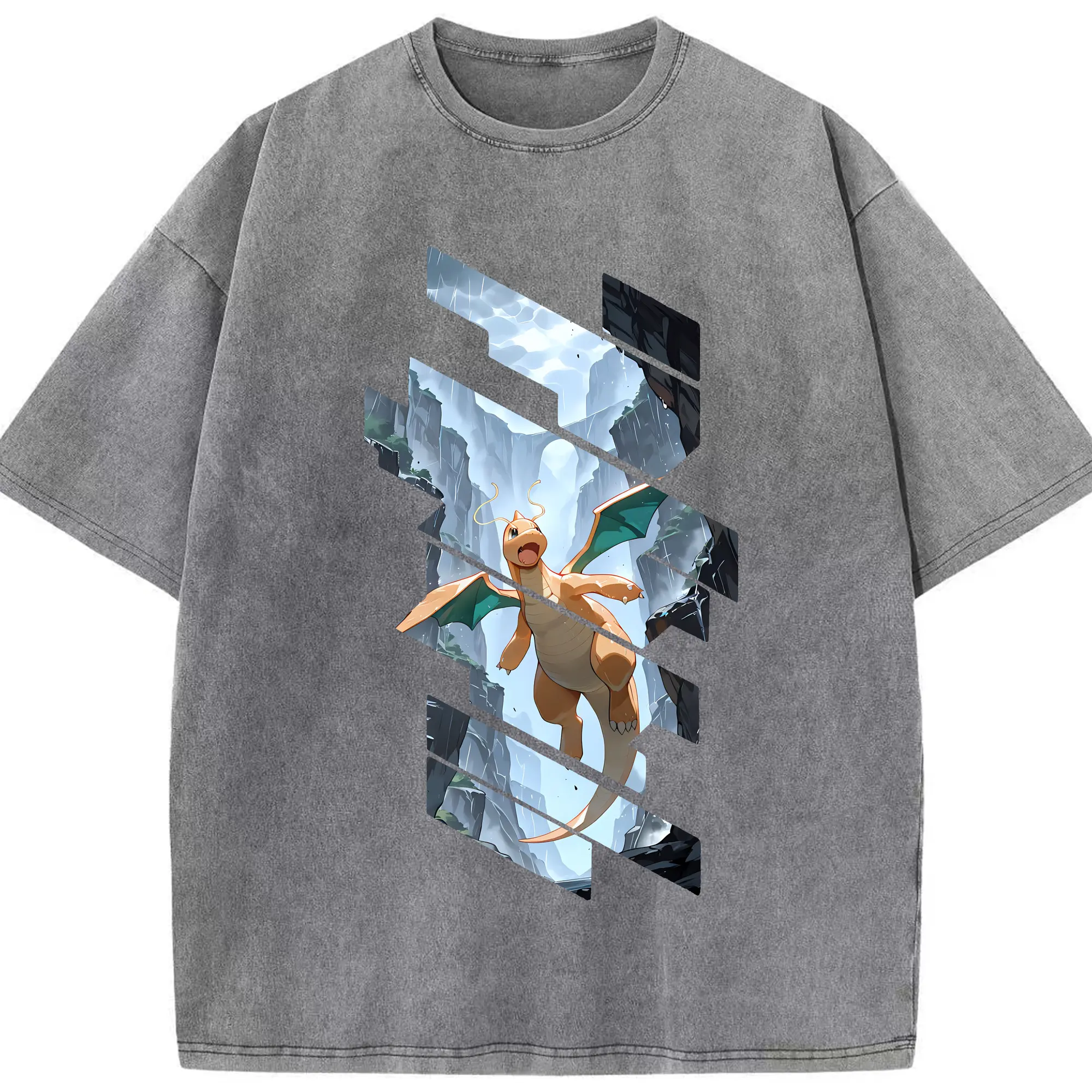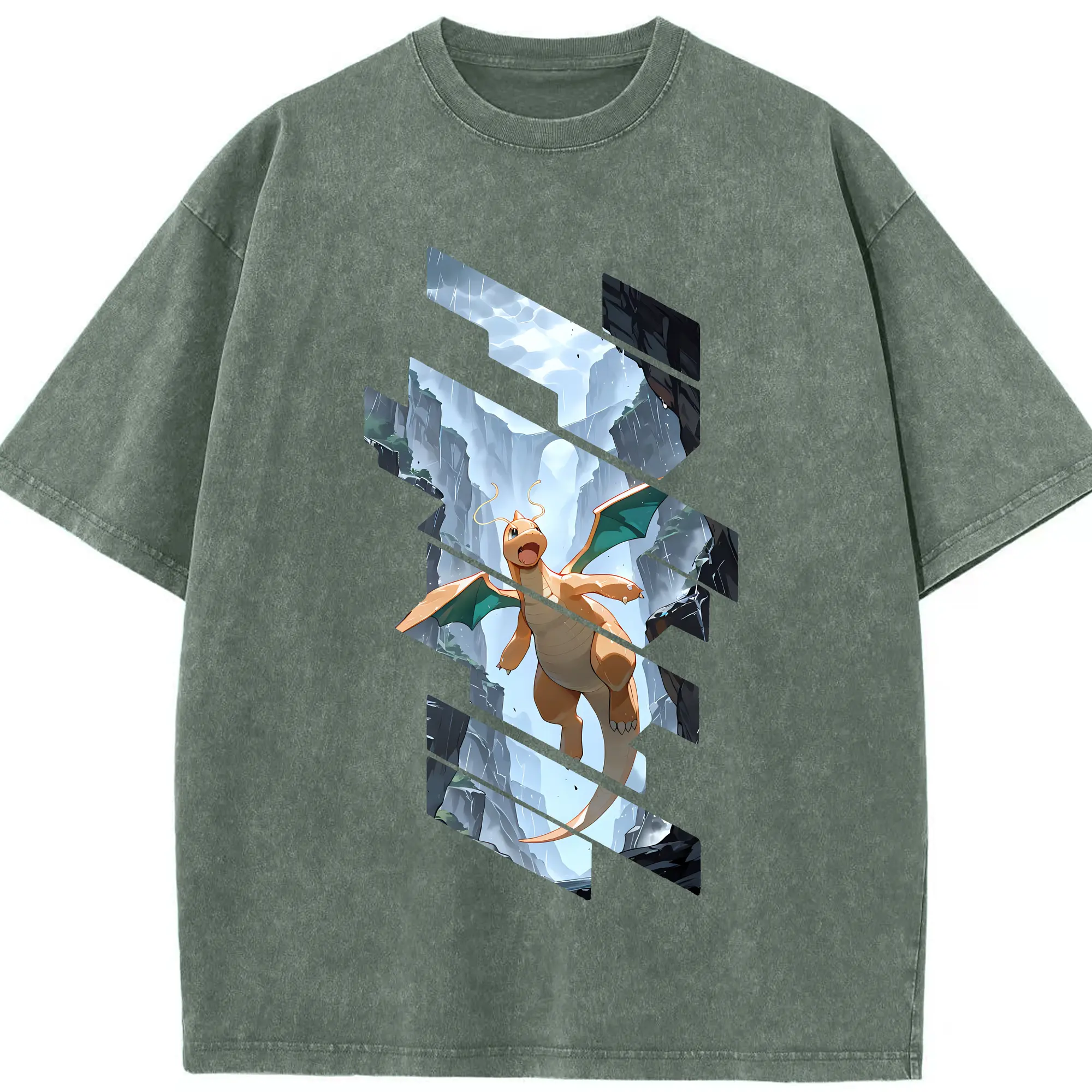 ポケモン グッズ,カイリュー - 綿100% ヴィンテージ風 半袖Tシャツ ・ 背面プリント ・ 柔らか肌触り ・ 通気性 快適 ・ スポーツ カジュアル 外出用