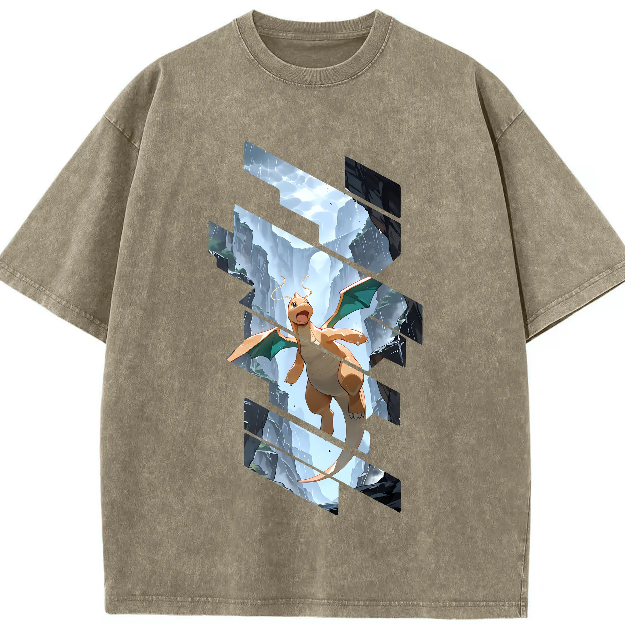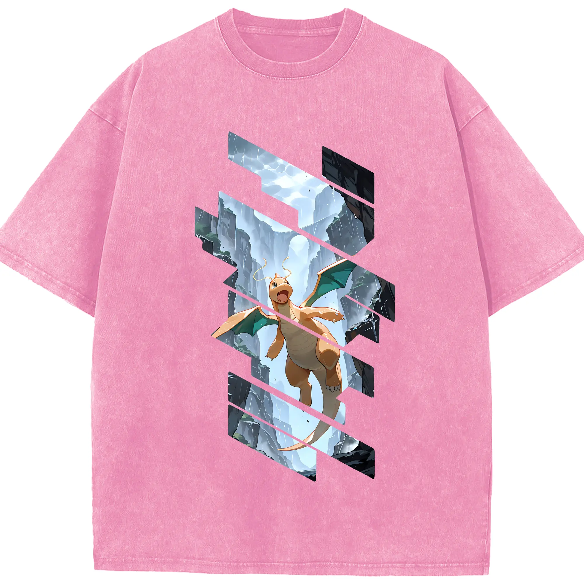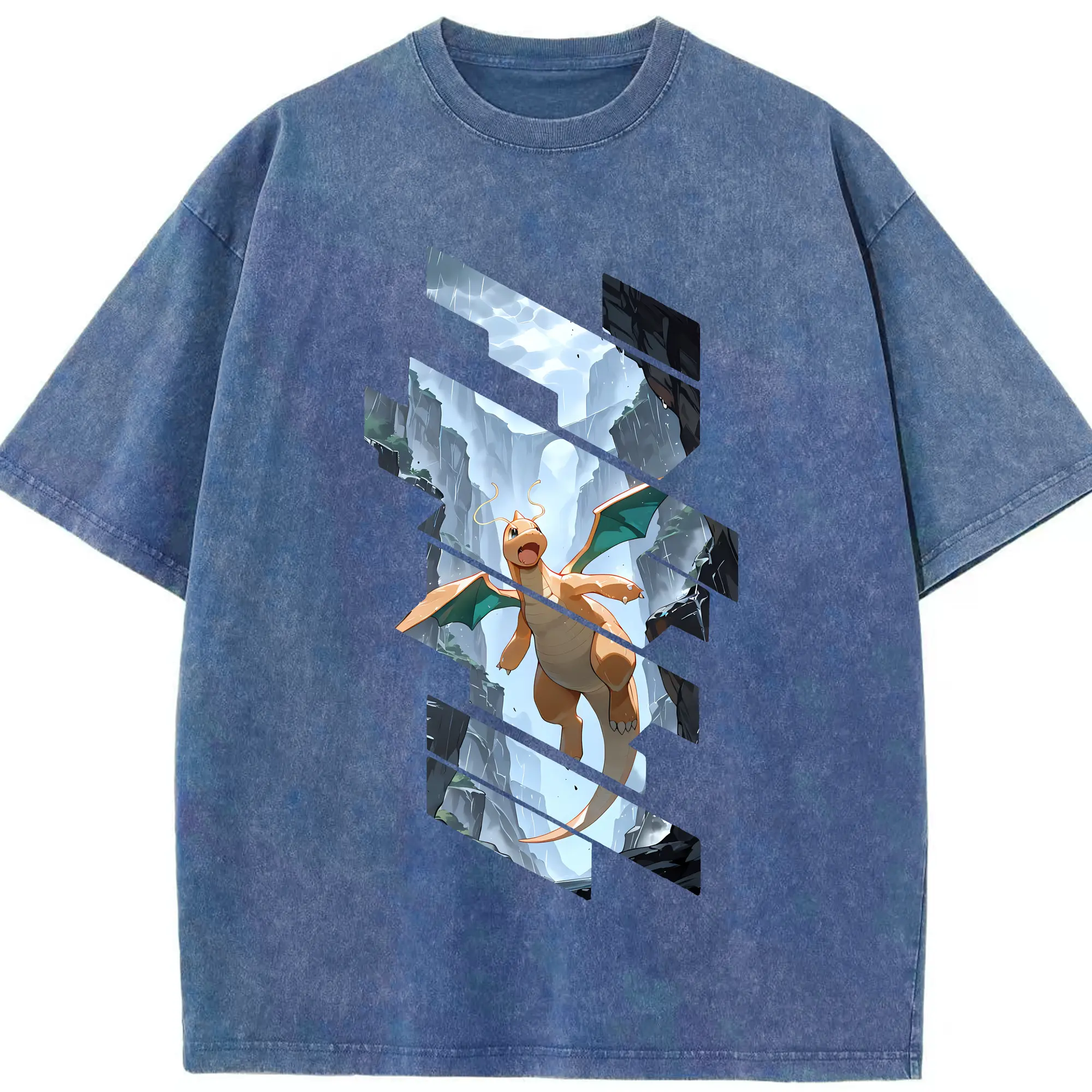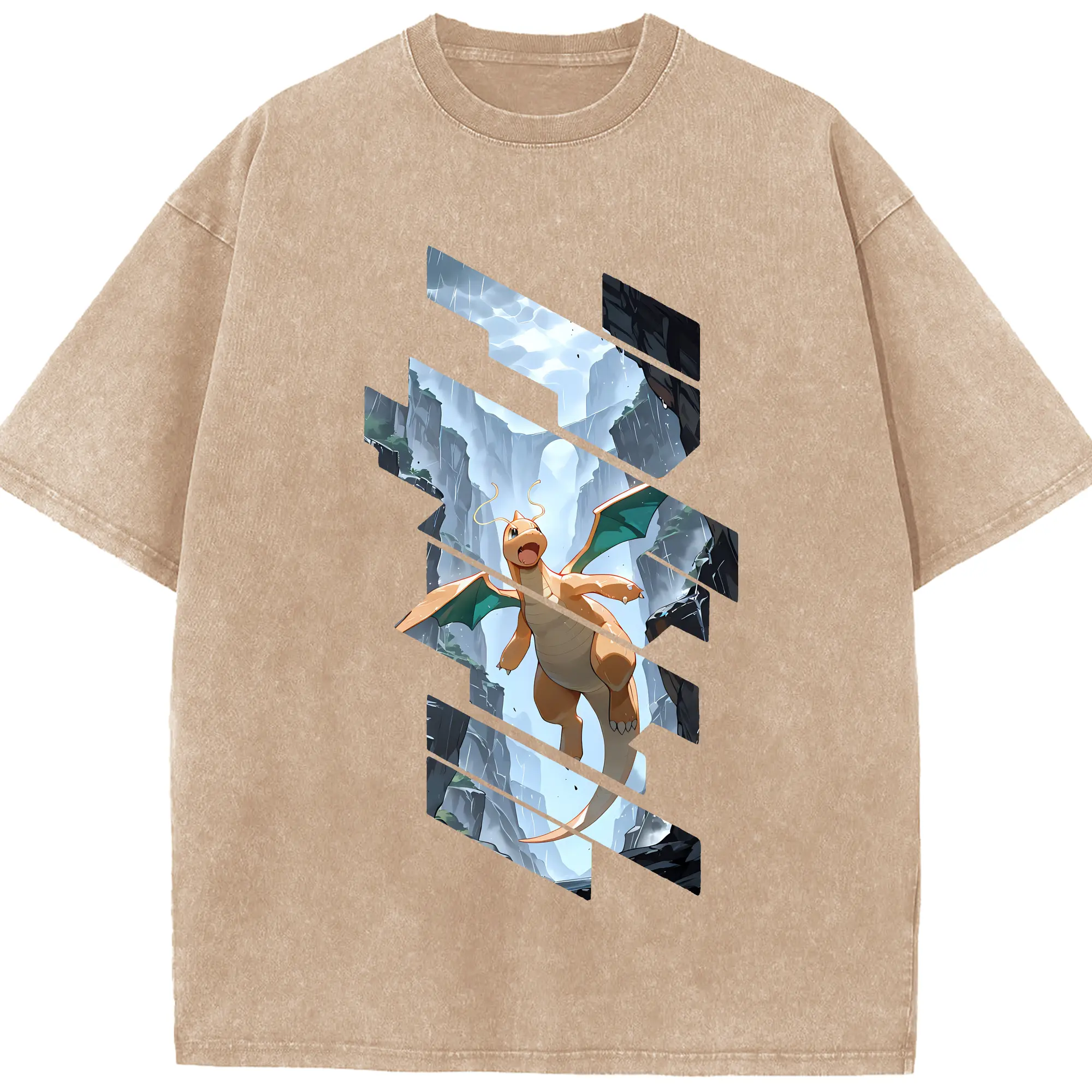 ポケモン グッズ,カイリュー - 綿100% ヴィンテージ風 半袖Tシャツ ・ 背面プリント ・ 柔らか肌触り ・ 通気性 快適 ・ スポーツ カジュアル 外出用