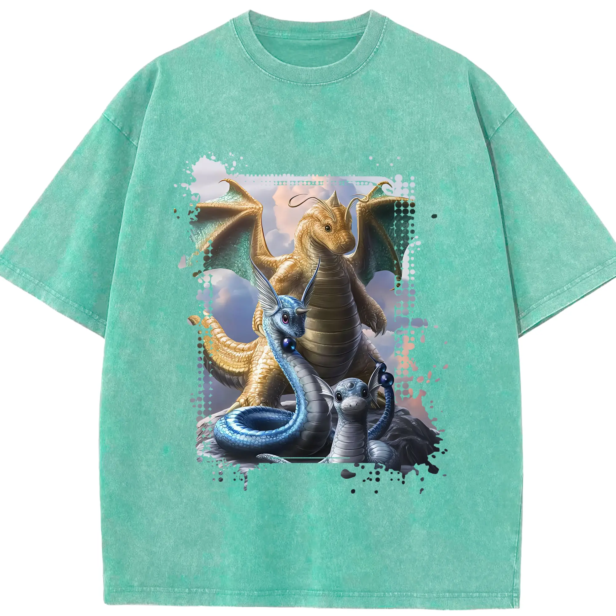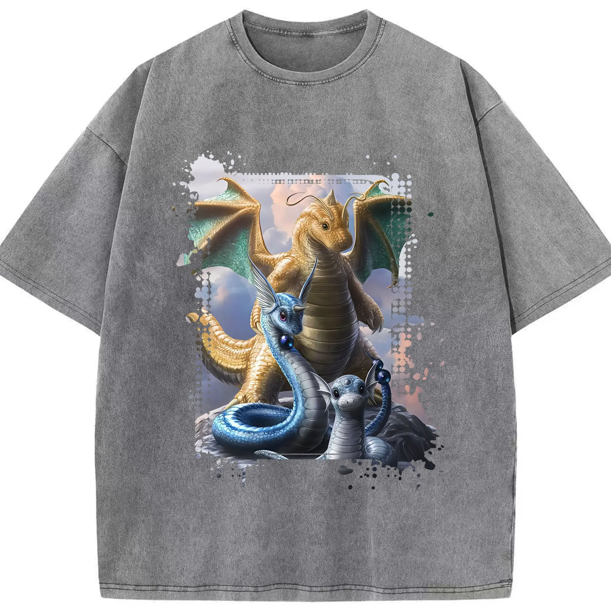 ポケモン グッズ,カイリュー - 綿100% ヴィンテージ風 半袖Tシャツ ・ 背面プリント ・ 柔らか肌触り ・ 通気性 快適 ・ スポーツ カジュアル 外出用
