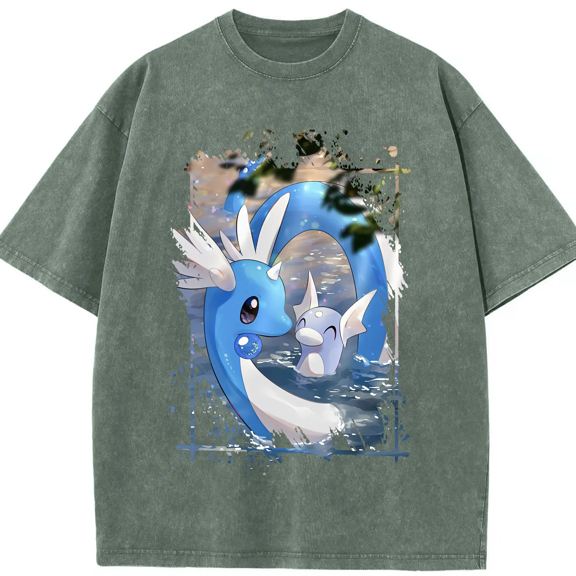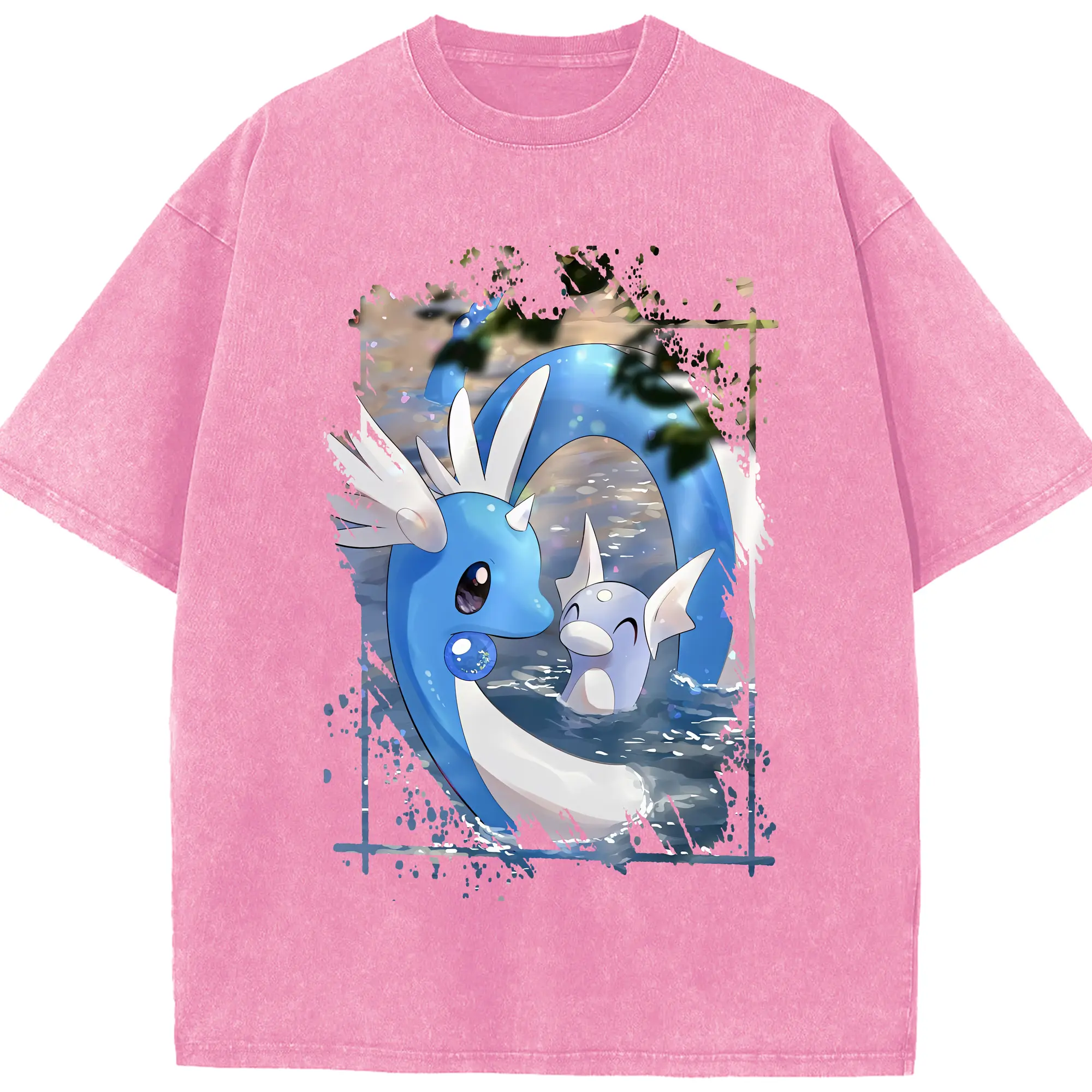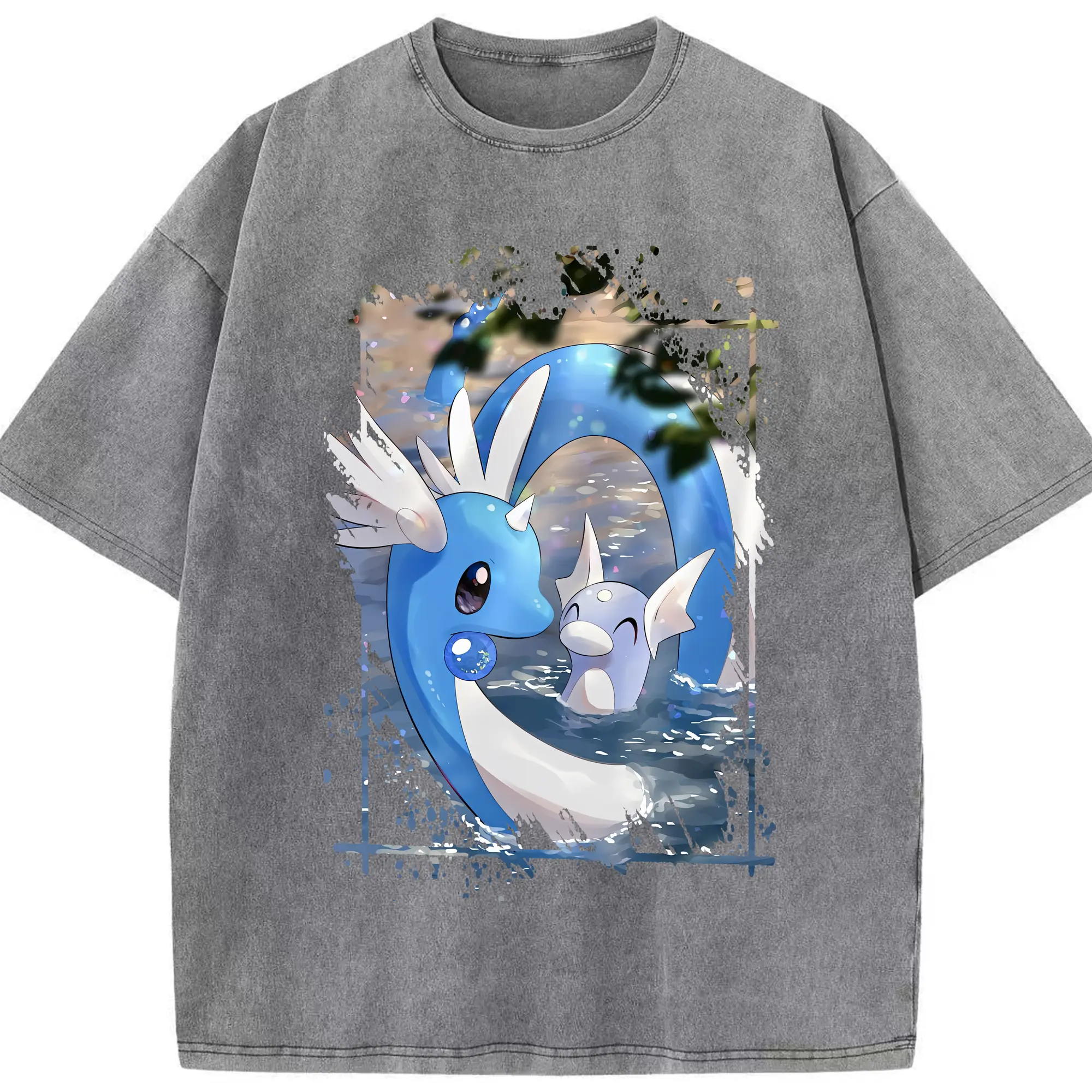 ポケモン グッズ,カイリュー - 綿100% ヴィンテージ風 半袖Tシャツ ・ 背面プリント ・ 柔らか肌触り ・ 通気性 快適 ・ スポーツ カジュアル 外出用