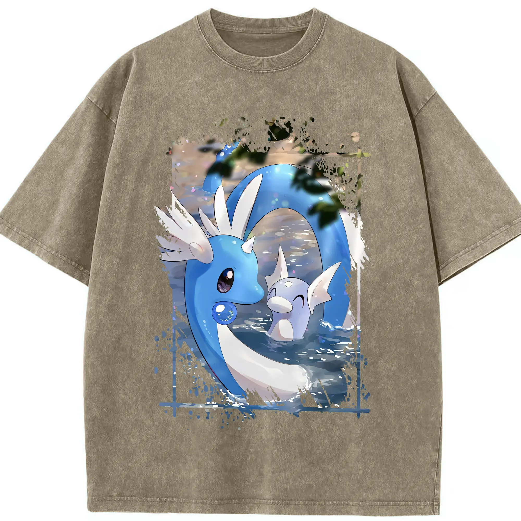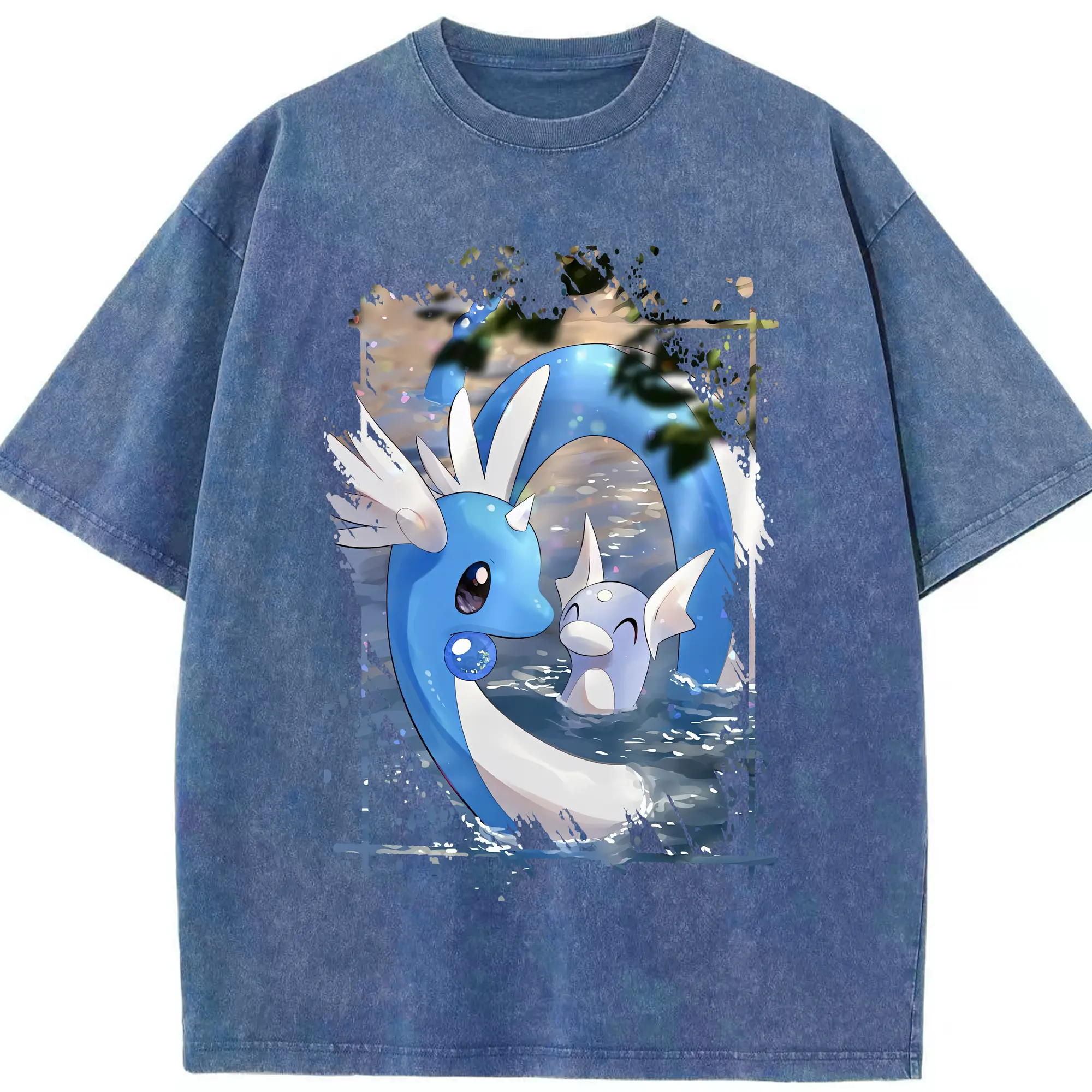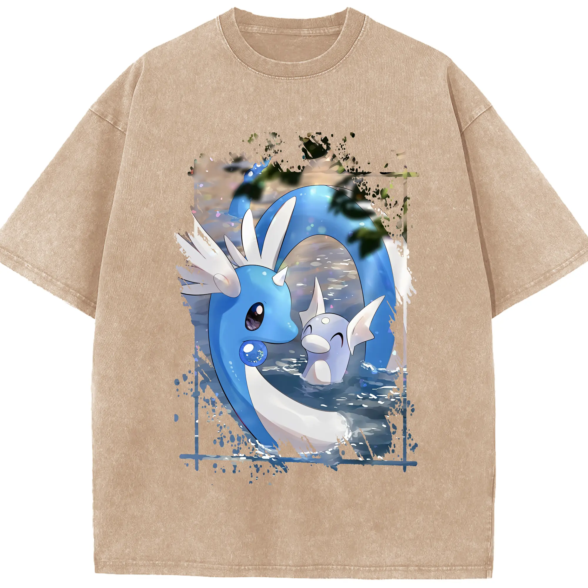 ポケモン グッズ,カイリュー - 綿100% ヴィンテージ風 半袖Tシャツ ・ 背面プリント ・ 柔らか肌触り ・ 通気性 快適 ・ スポーツ カジュアル 外出用