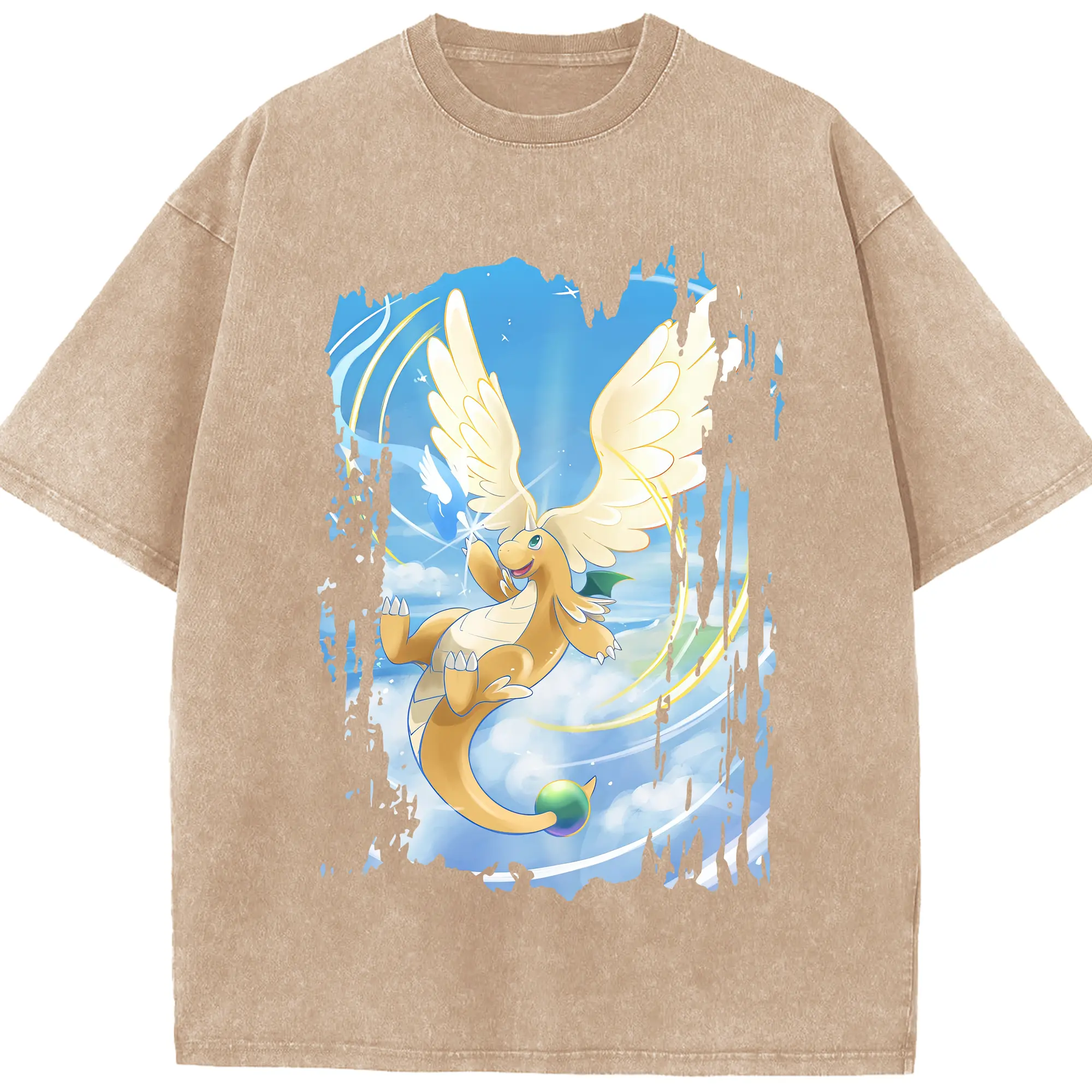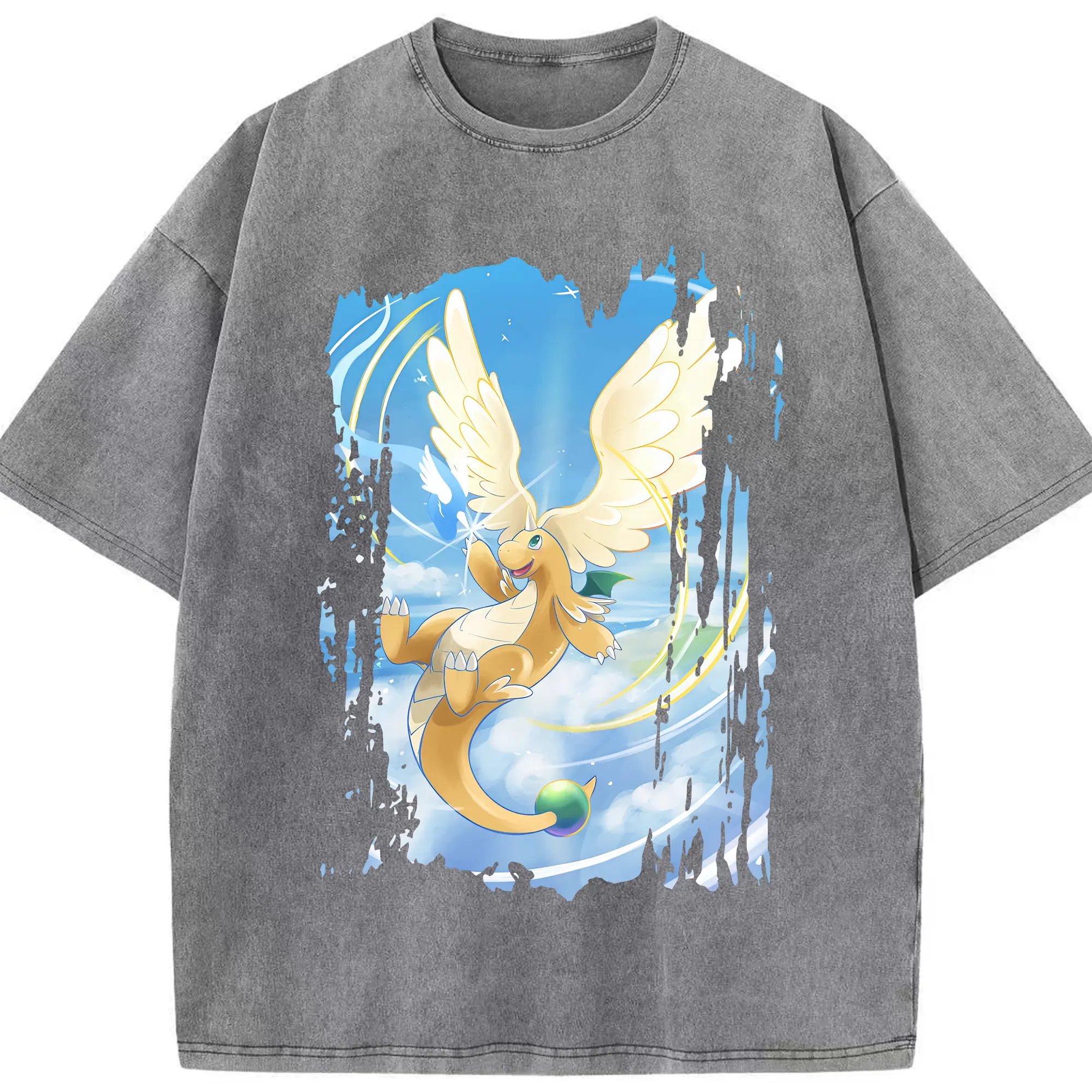 ポケモン グッズ,カイリュー - 綿100% ヴィンテージ風 半袖Tシャツ ・ 背面プリント ・ 柔らか肌触り ・ 通気性 快適 ・ スポーツ カジュアル 外出用