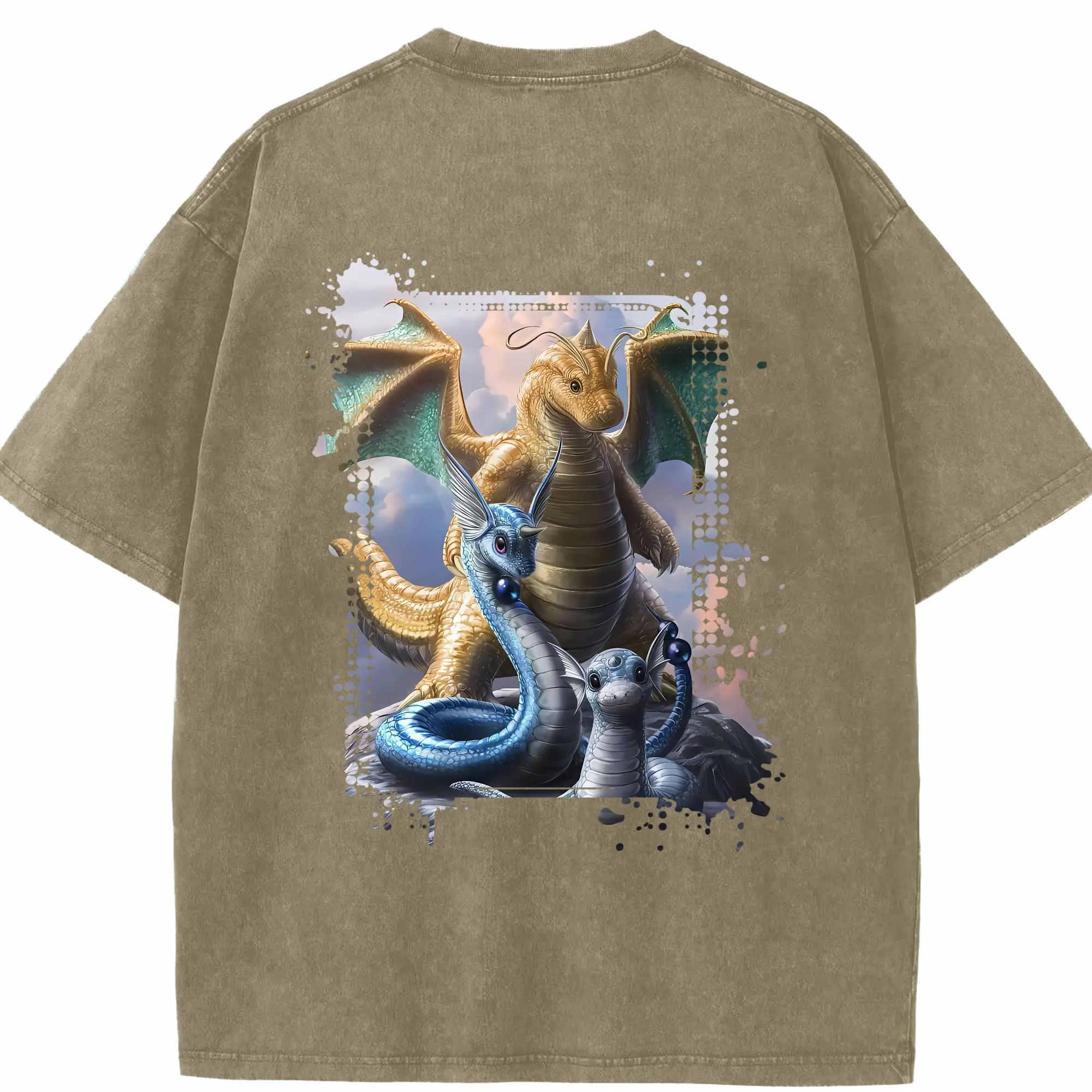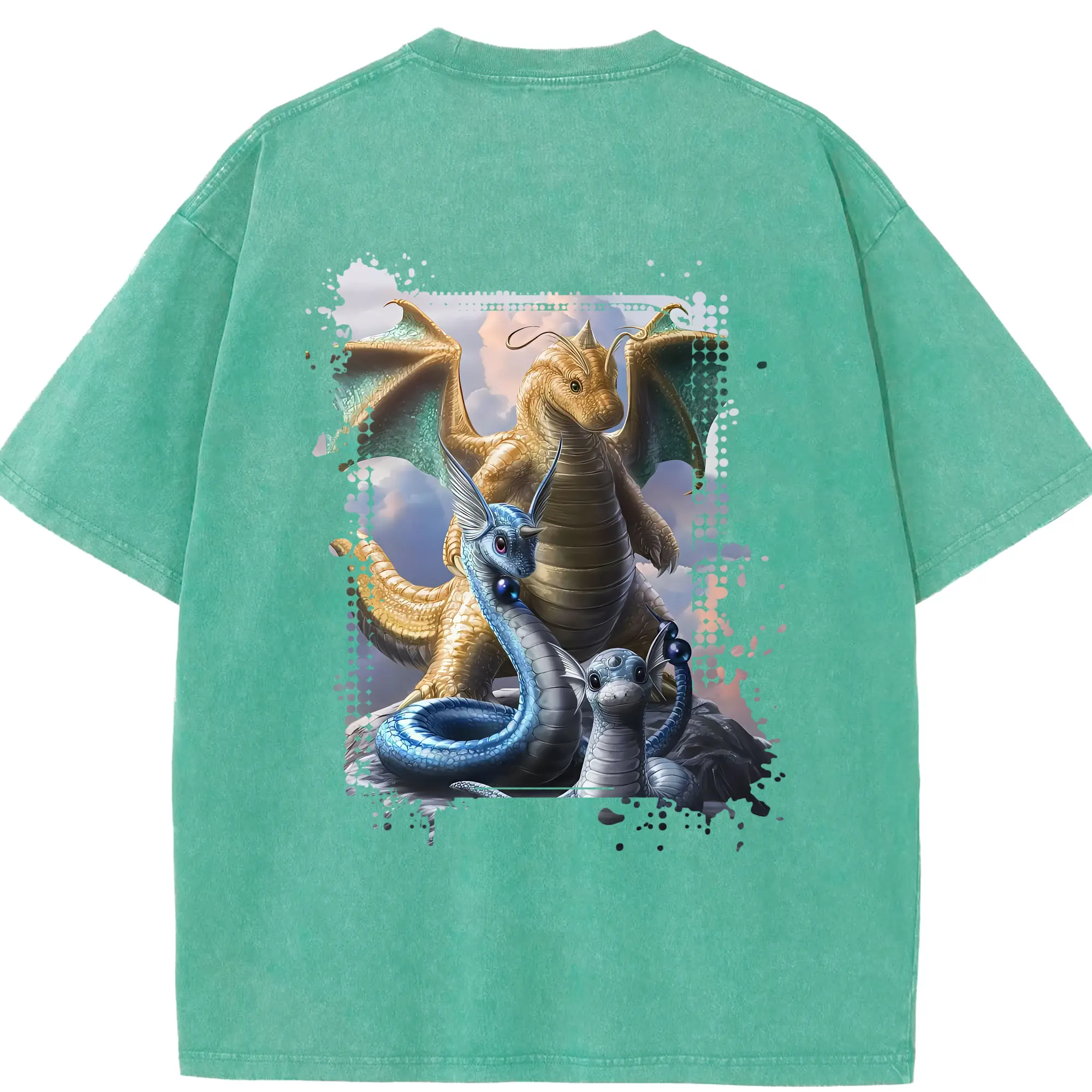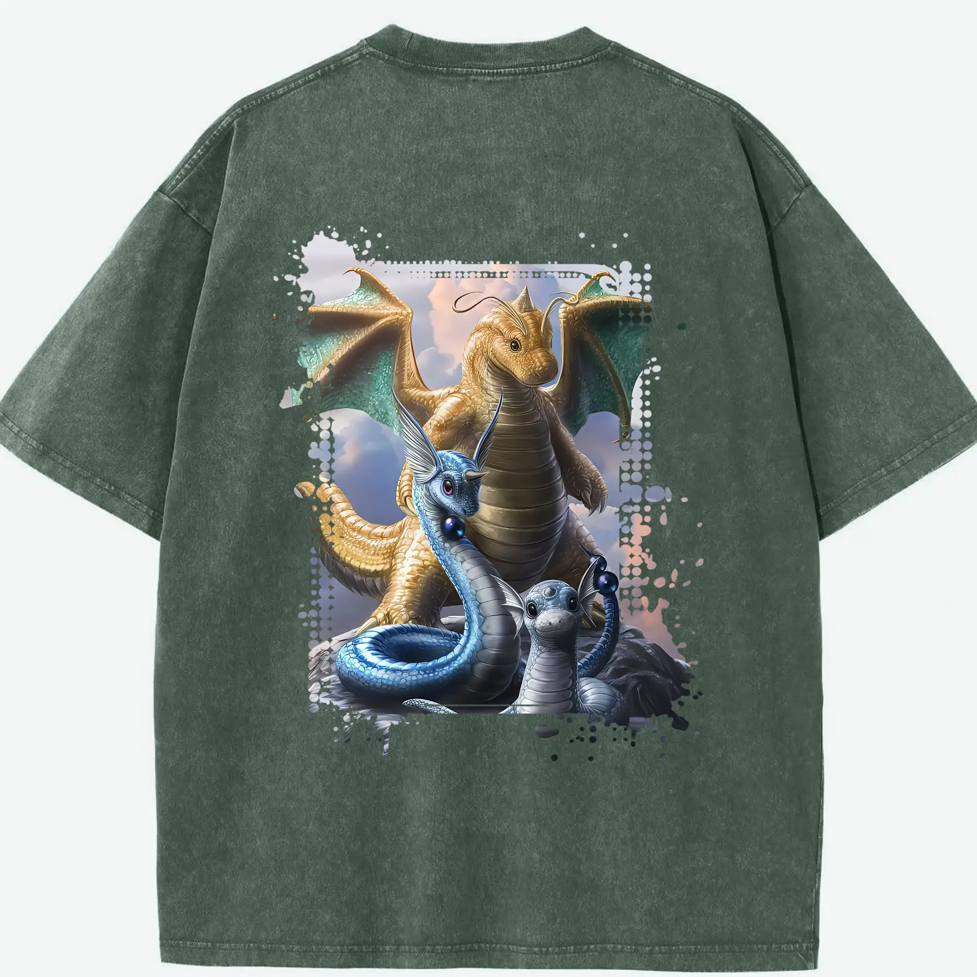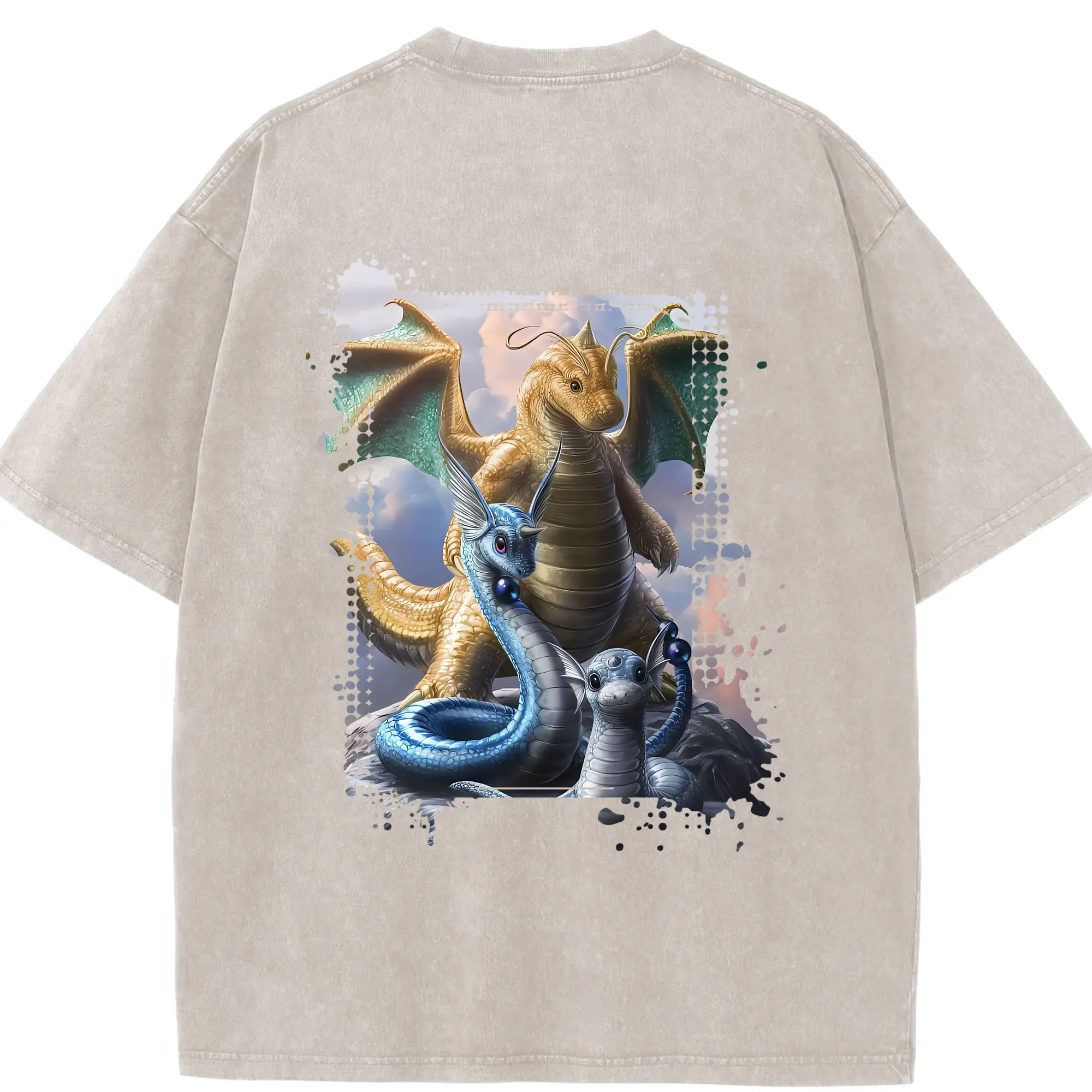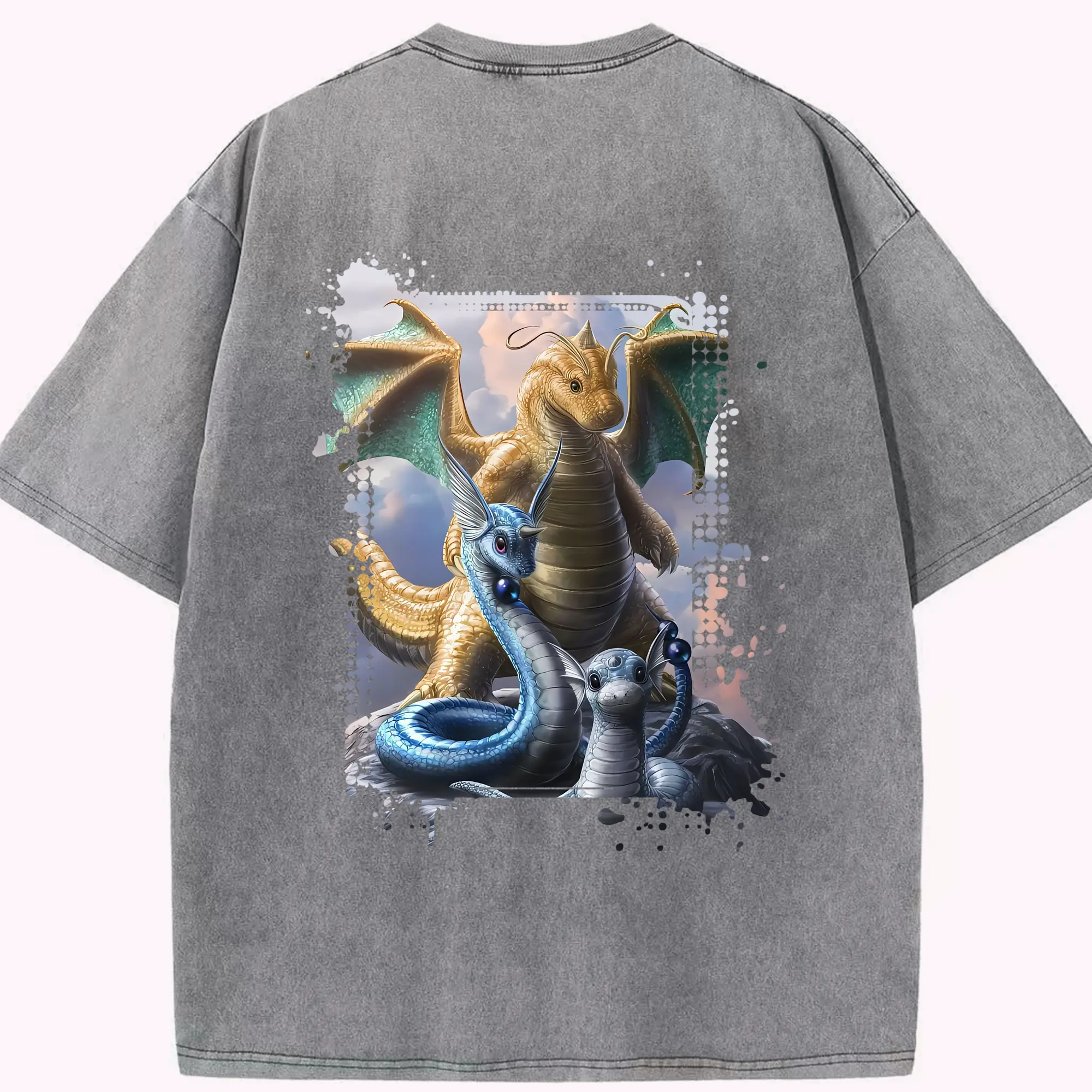 ポケモン グッズ,カイリュー - 綿100% ヴィンテージ風 半袖Tシャツ ・ フロントプリント ・ 柔らか肌触り ・ 通気性 快適 ・ スポーツ カジュアル 外出用