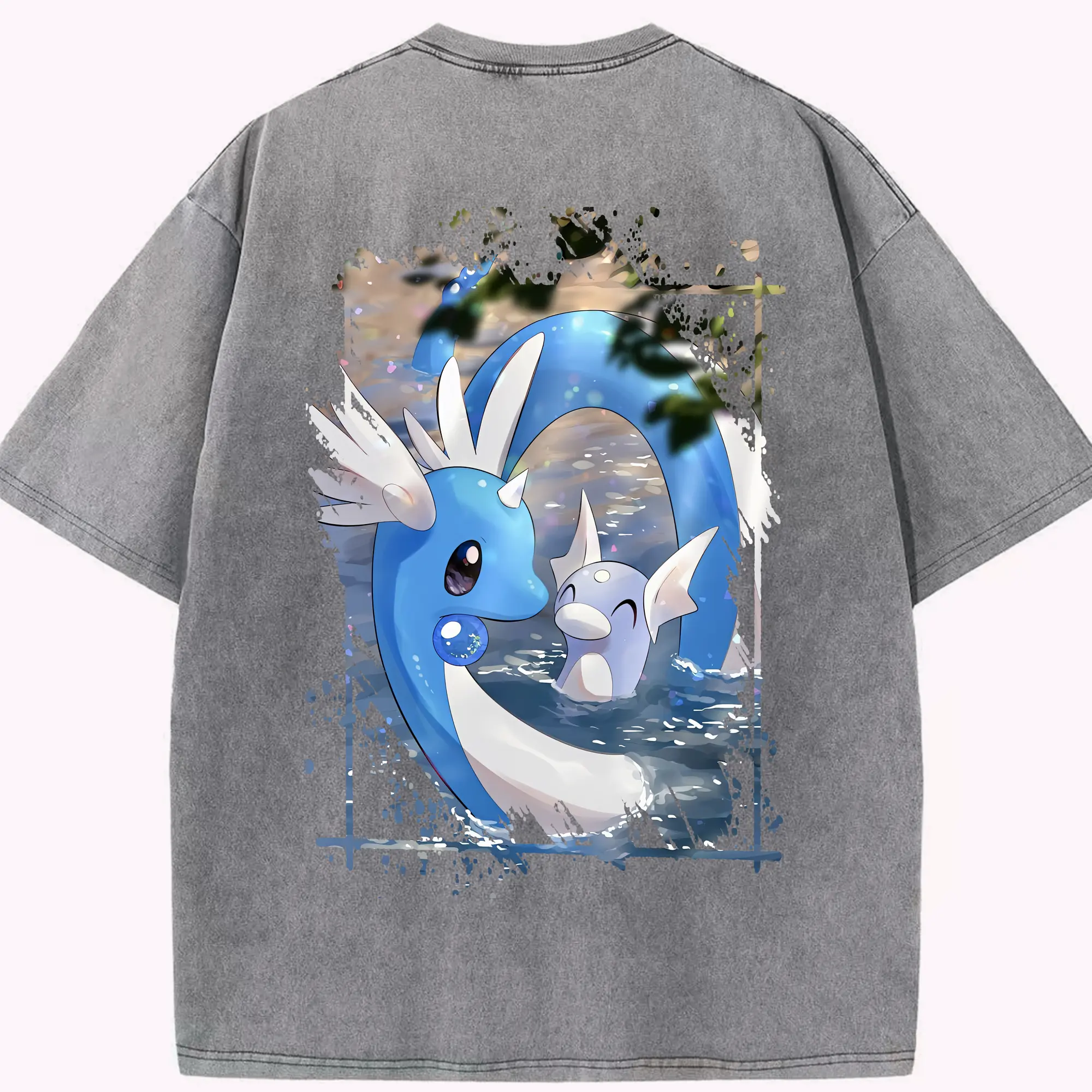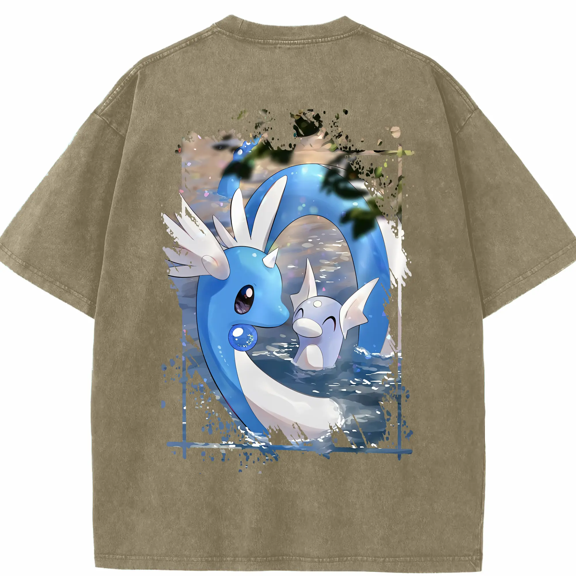 ポケモン グッズ,カイリュー - 綿100% ヴィンテージ風 半袖Tシャツ ・ フロントプリント ・ 柔らか肌触り ・ 通気性 快適 ・ スポーツ カジュアル 外出用