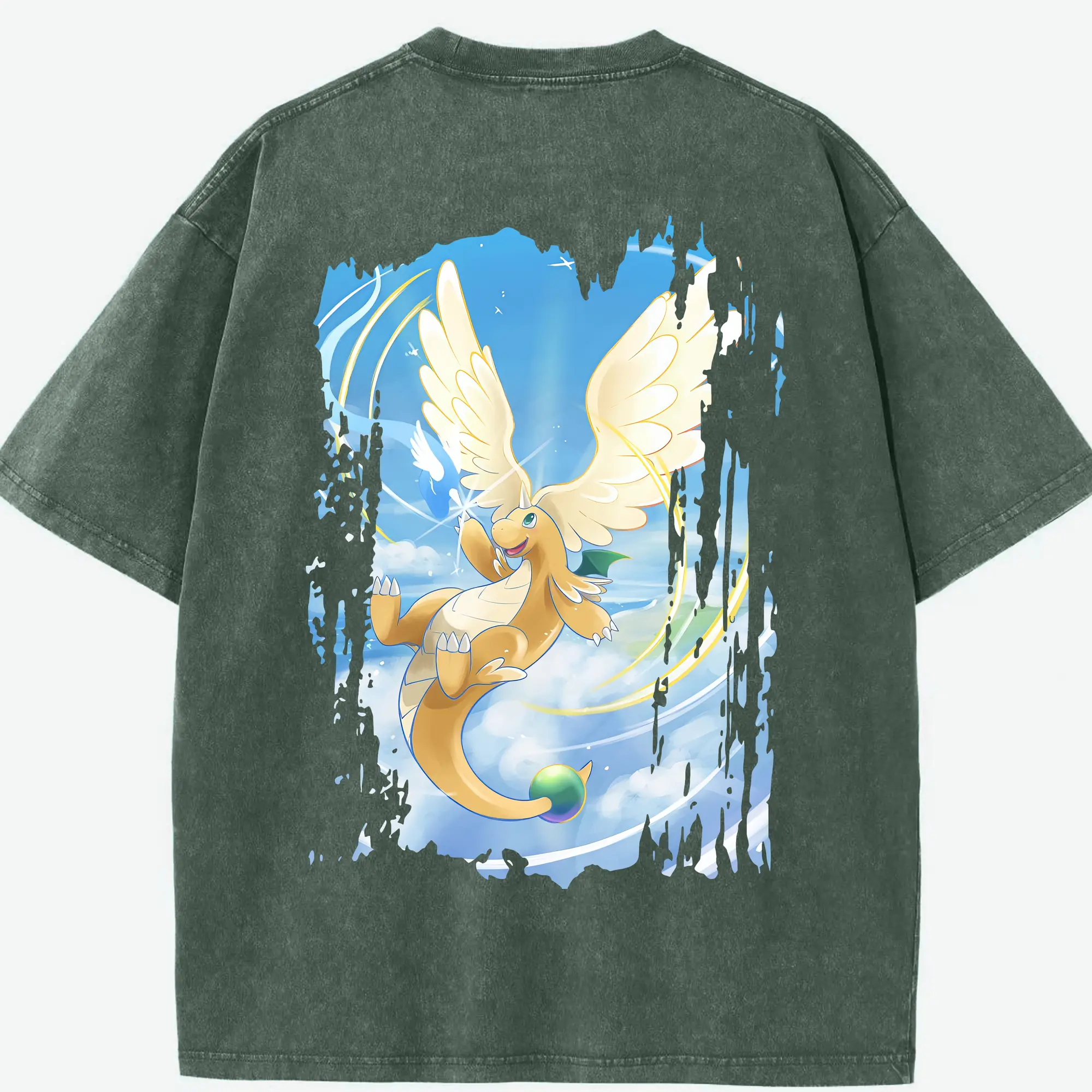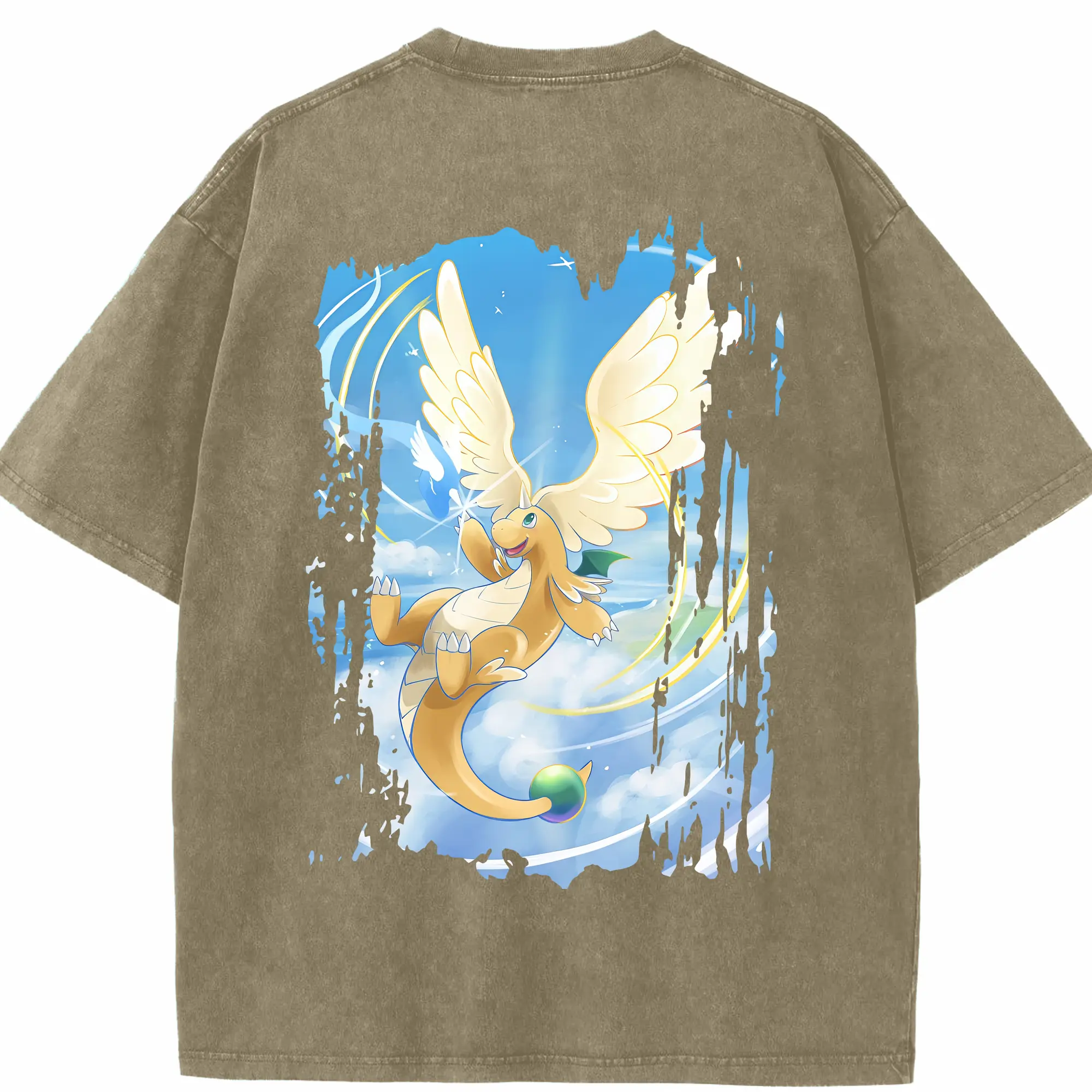 ポケモン グッズ,カイリュー - 綿100% ヴィンテージ風 半袖Tシャツ ・ フロントプリント ・ 柔らか肌触り ・ 通気性 快適 ・ スポーツ カジュアル 外出用