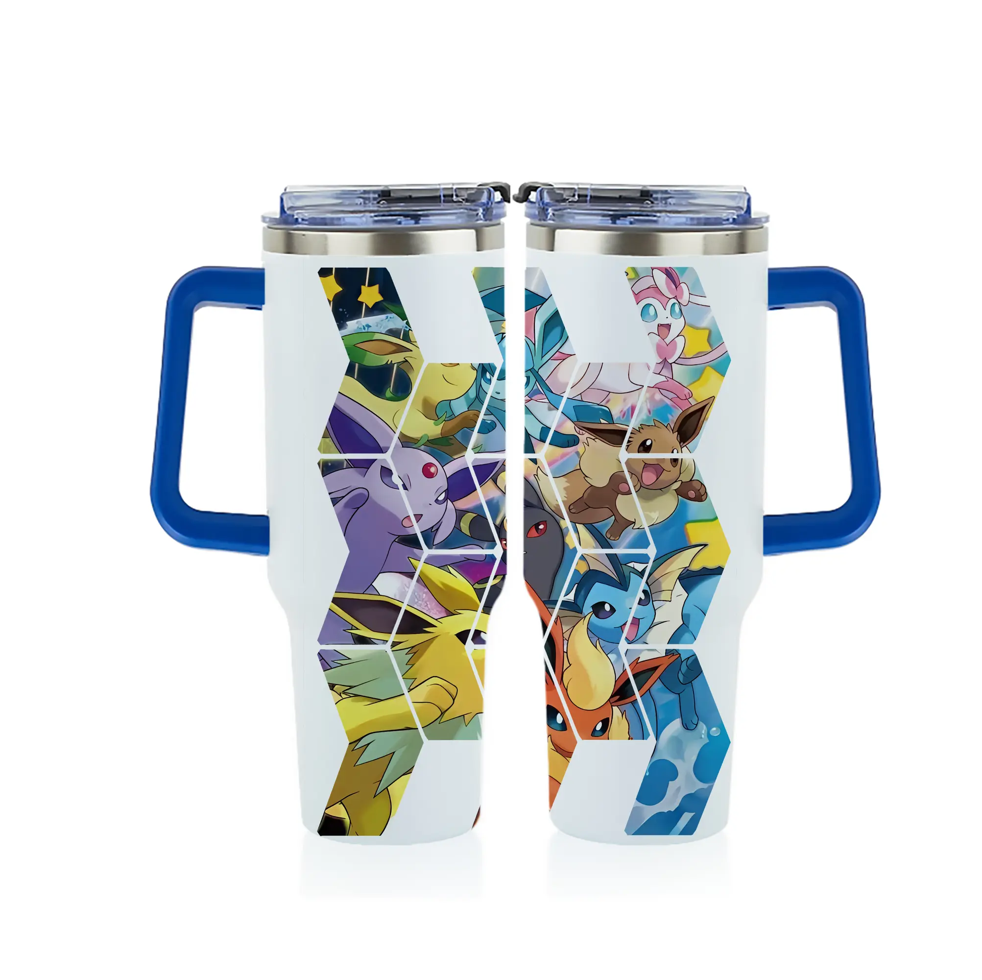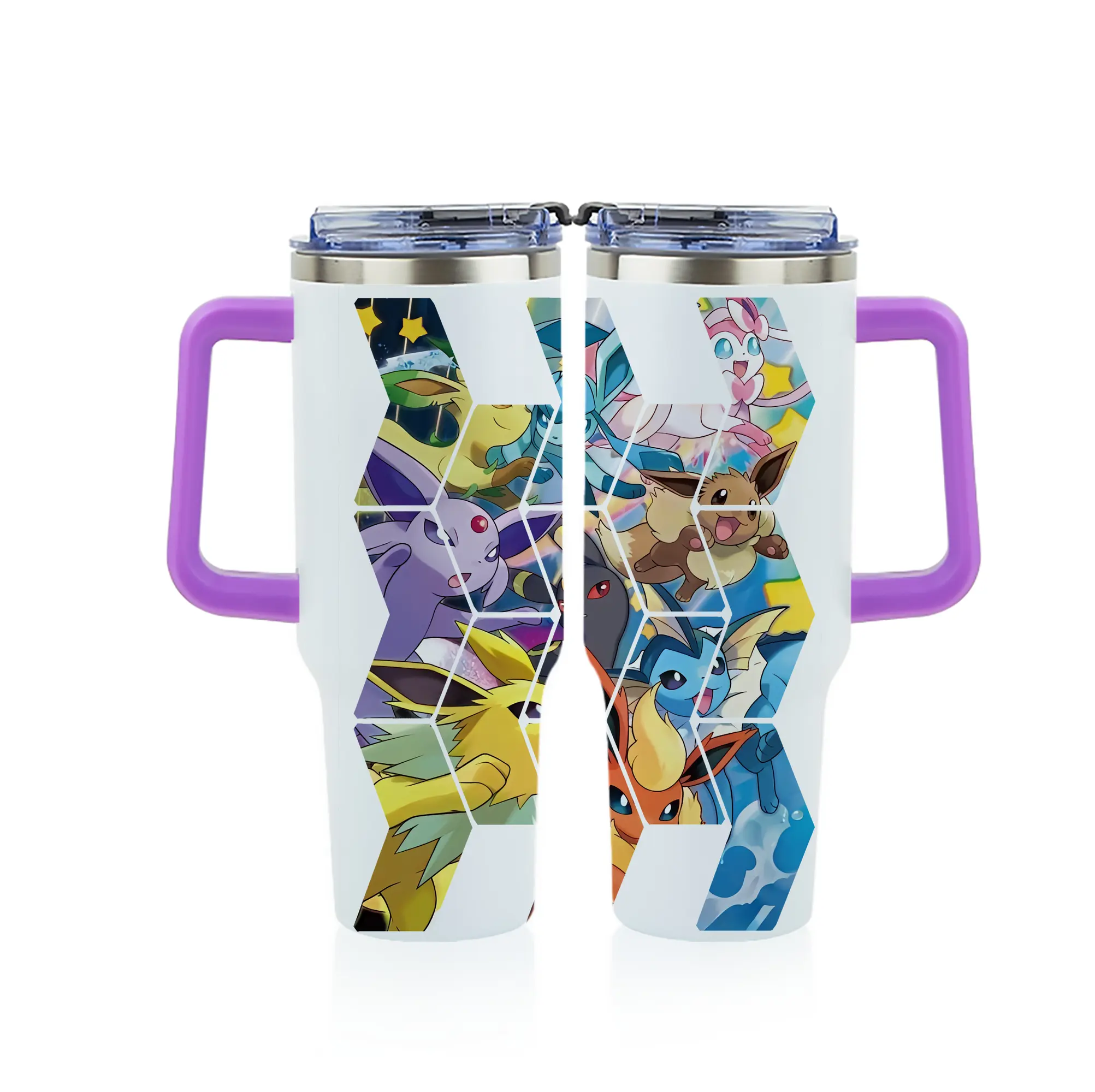 ポケモン グッズ,イーブイ - 1200mL フルプリント車用タンブラー ・ 304ステンレス 内側 ・ 201ステンレス 外側 ・ 保温 保冷 ・ 通勤 ドライブ アウトドア用