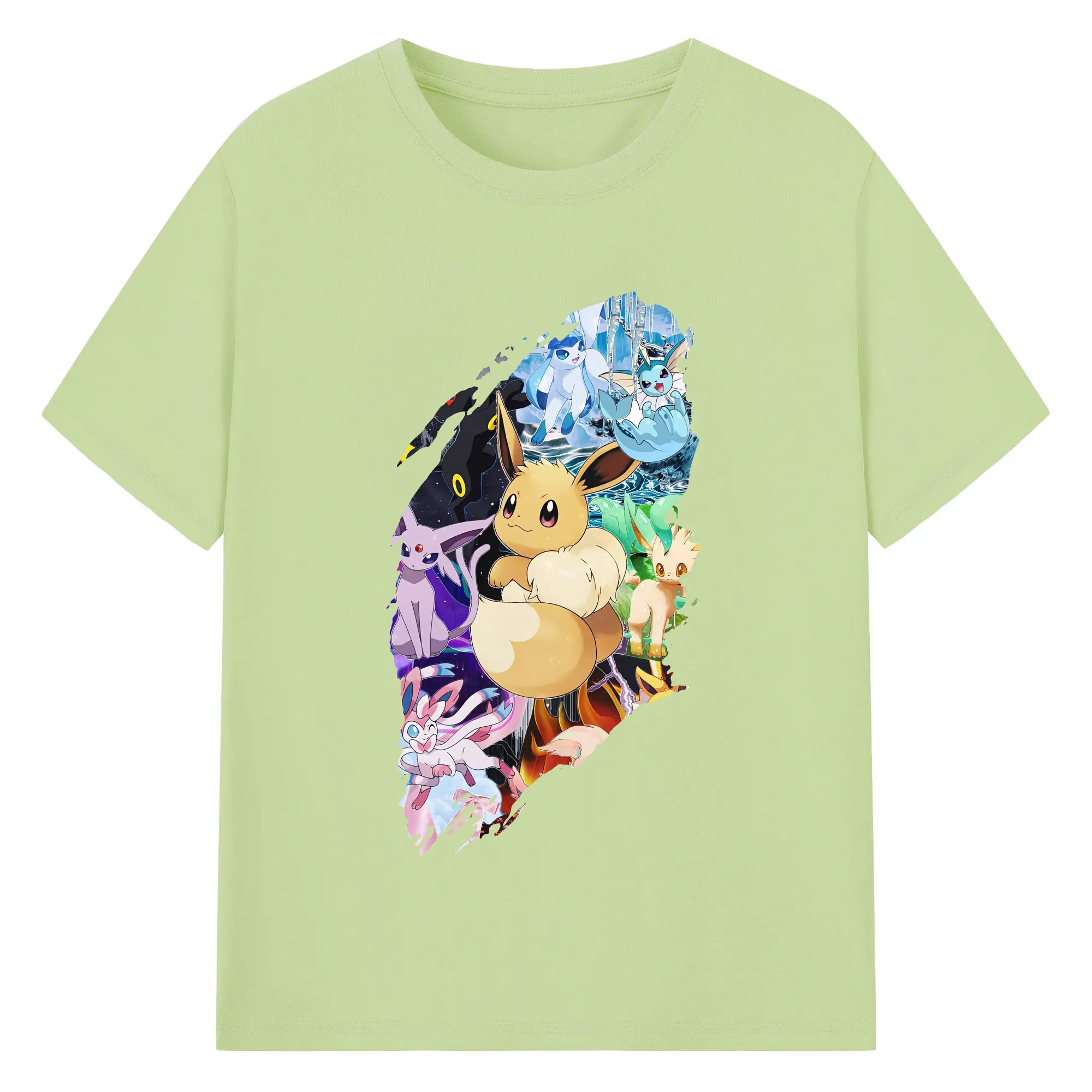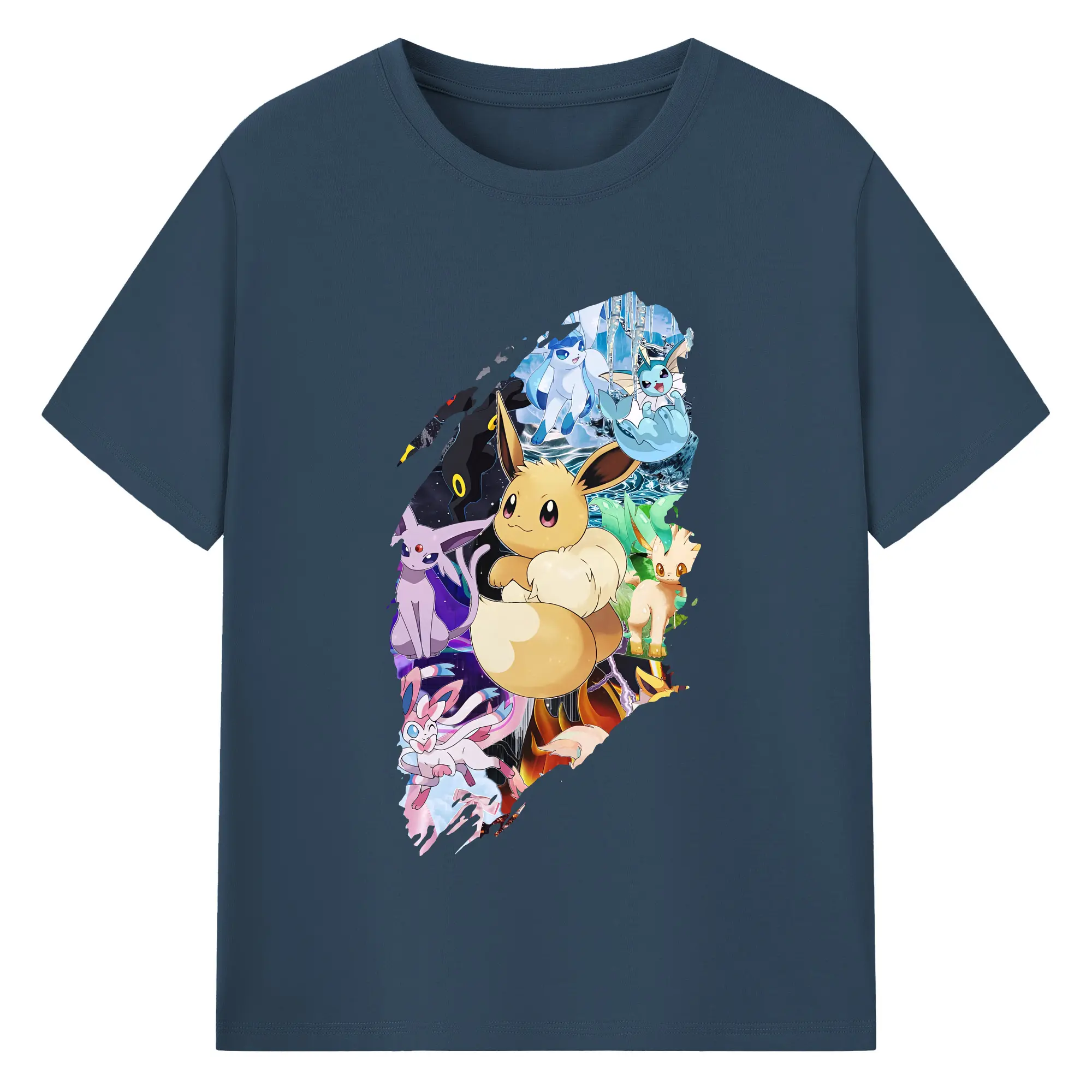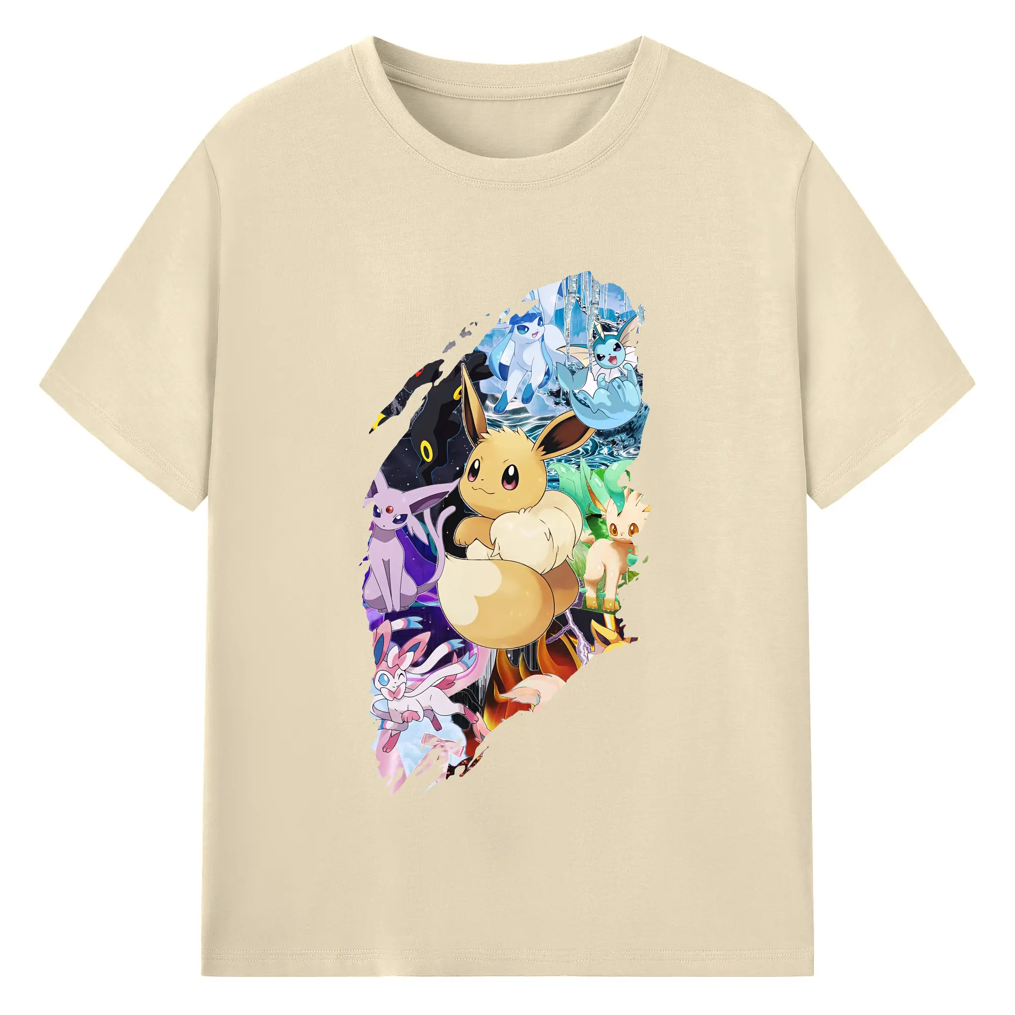 ポケモン グッズ,イーブイ - 綿100% 半袖Tシャツ ・ バックプリント ・ 快適 通気性 ・ 日常使い 散歩 スポーツ用