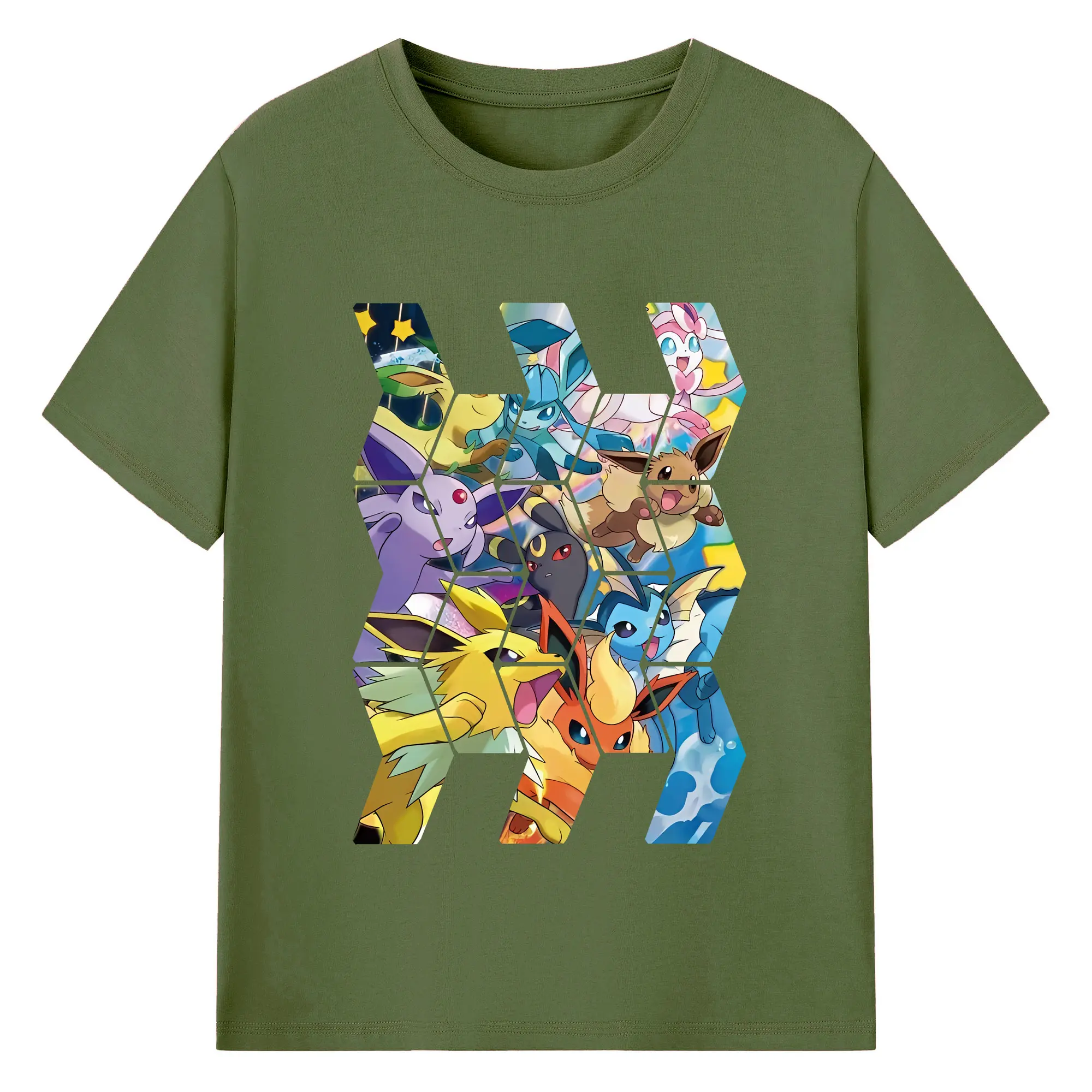 ポケモン グッズ,イーブイ - 綿100% 半袖Tシャツ ・ バックプリント ・ 快適 通気性 ・ 日常使い 散歩 スポーツ用