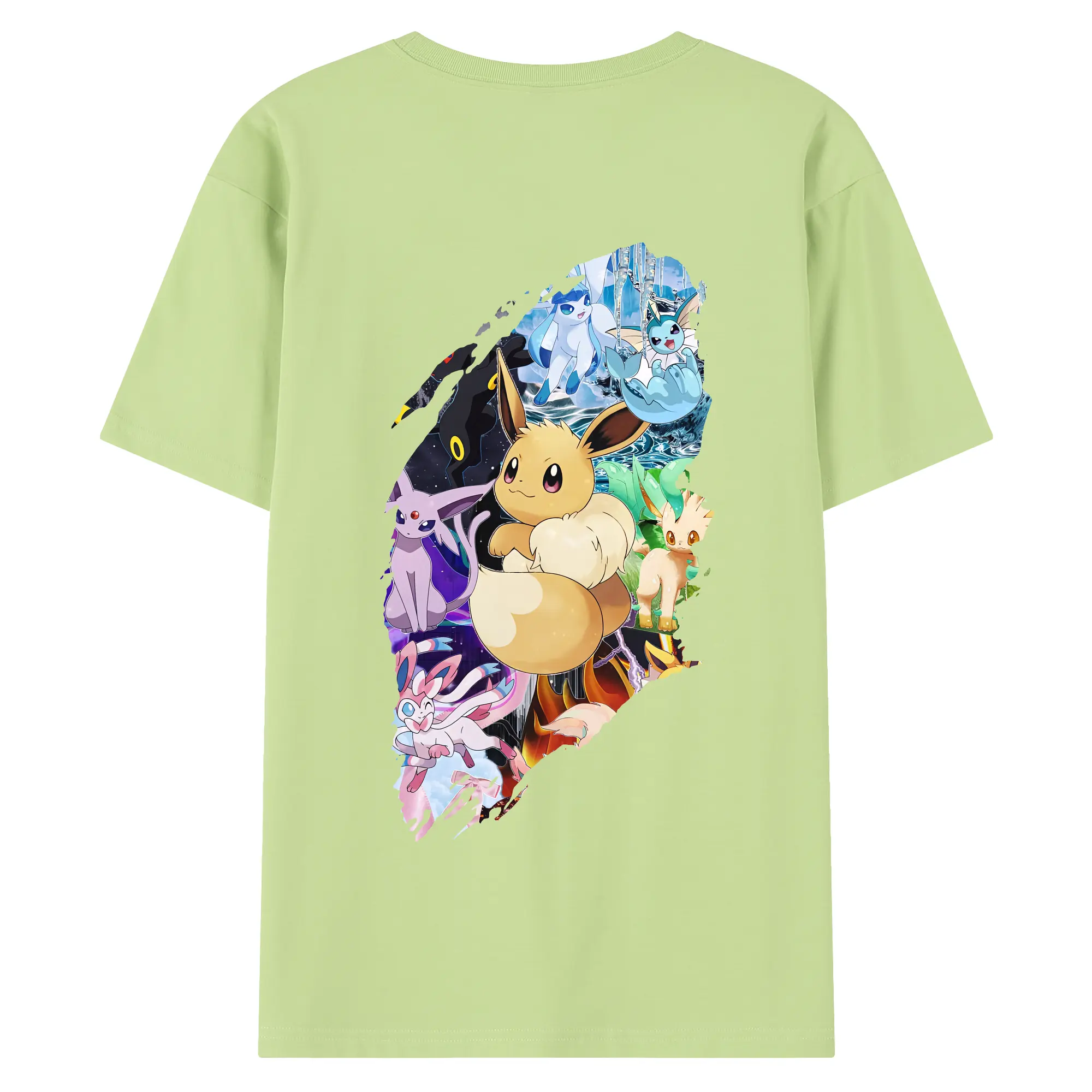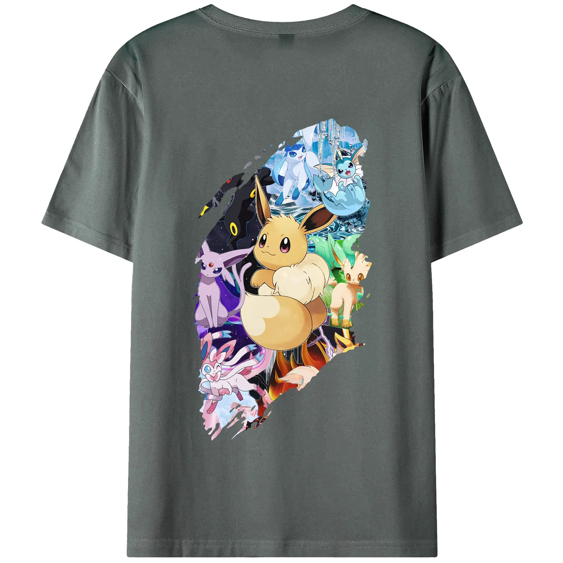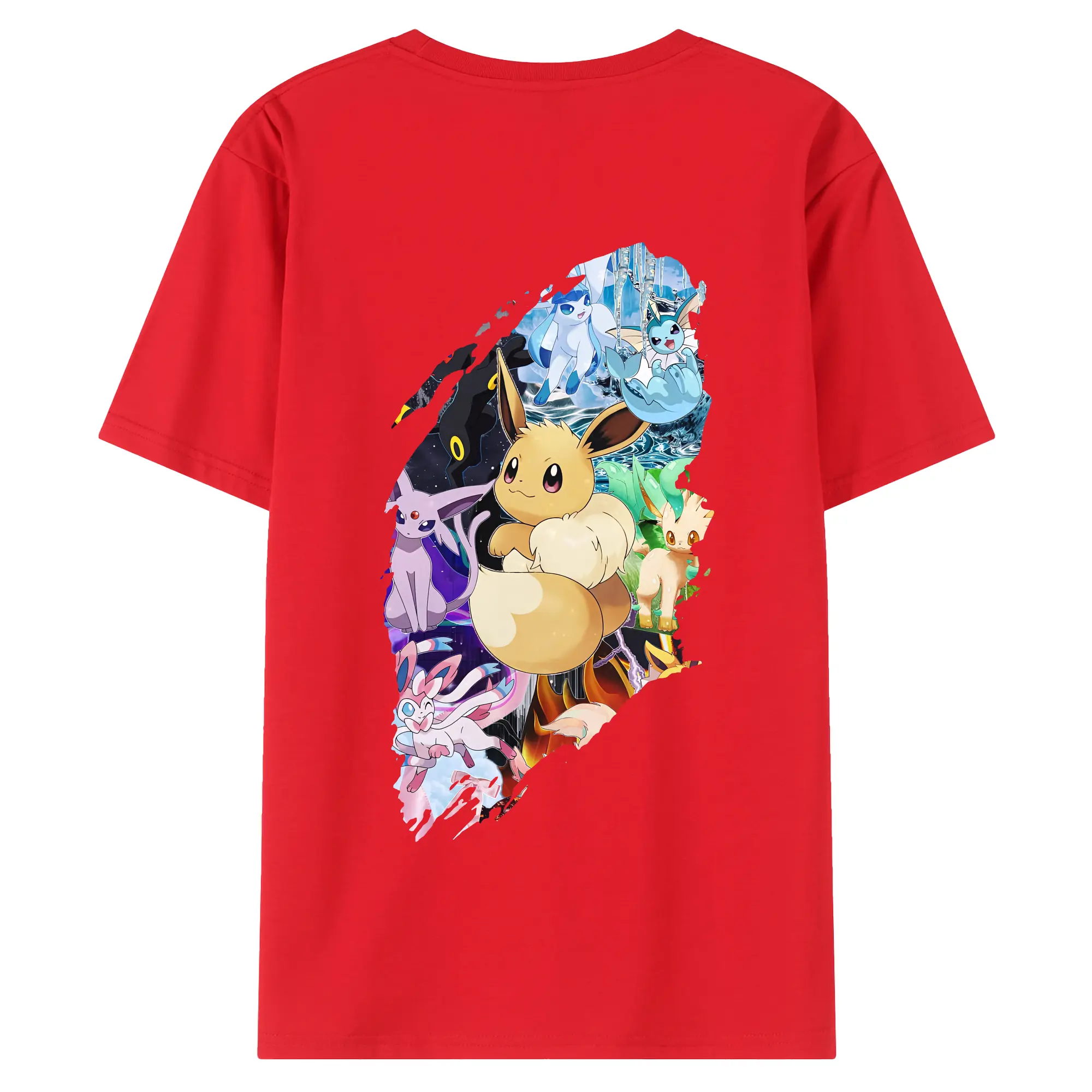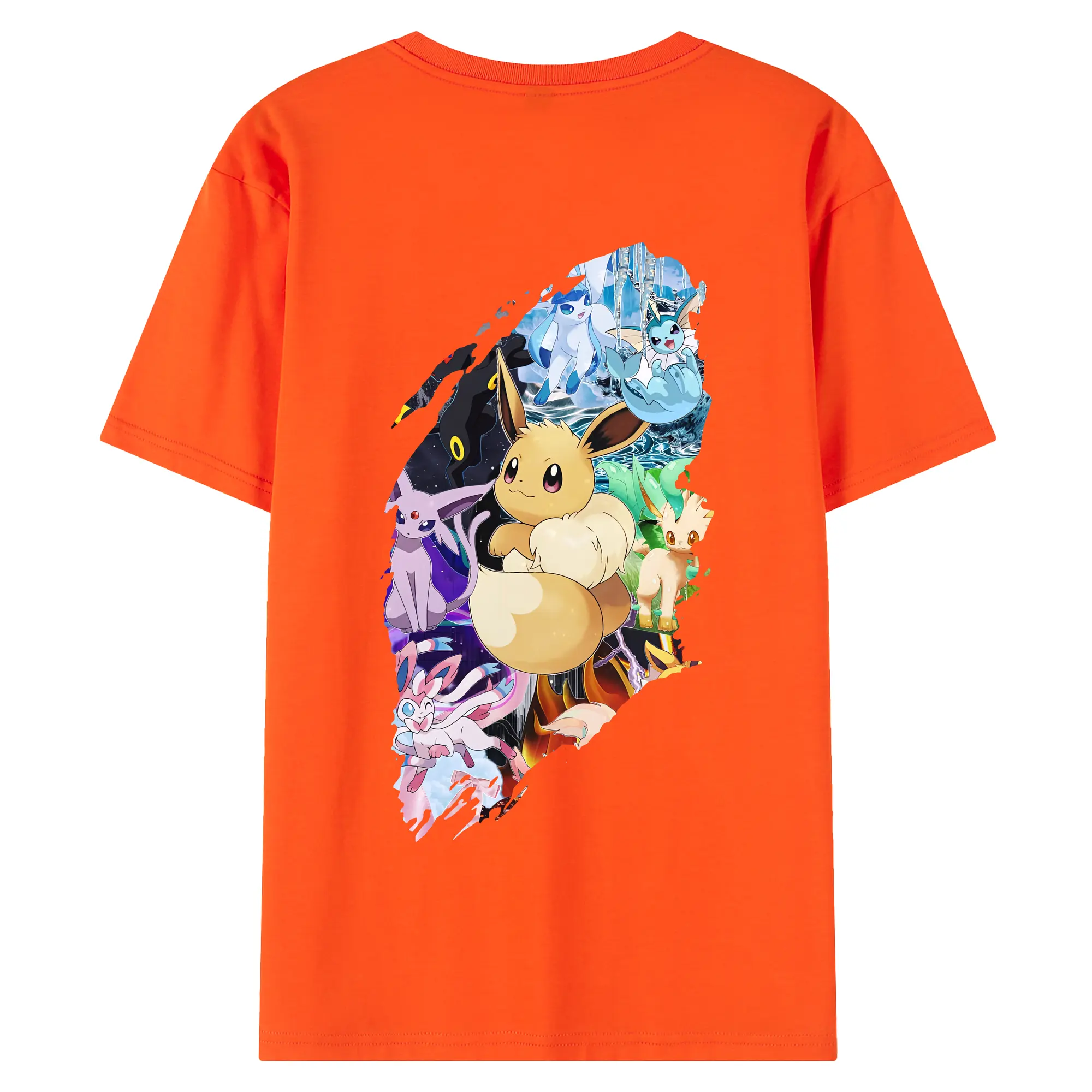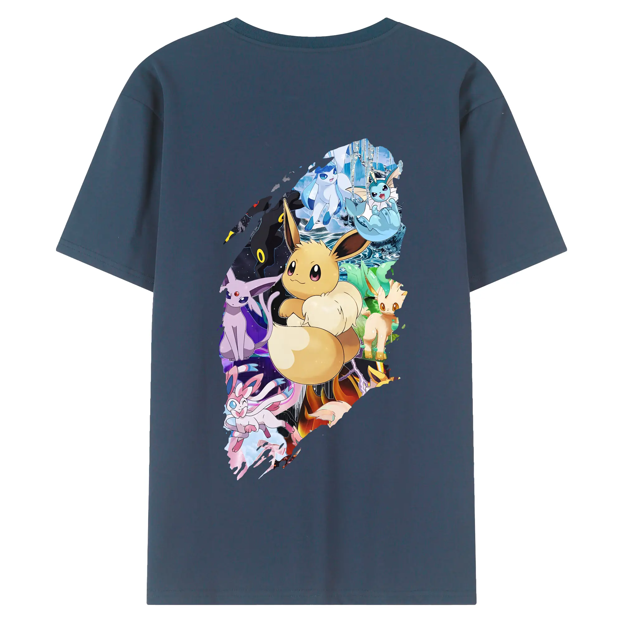 ポケモン グッズ,イーブイ - 綿100% ヴィンテージ風 半袖Tシャツ ・ 背面プリント ・ 柔らか肌触り ・ 通気性 快適 ・ スポーツ カジュアル 外出用