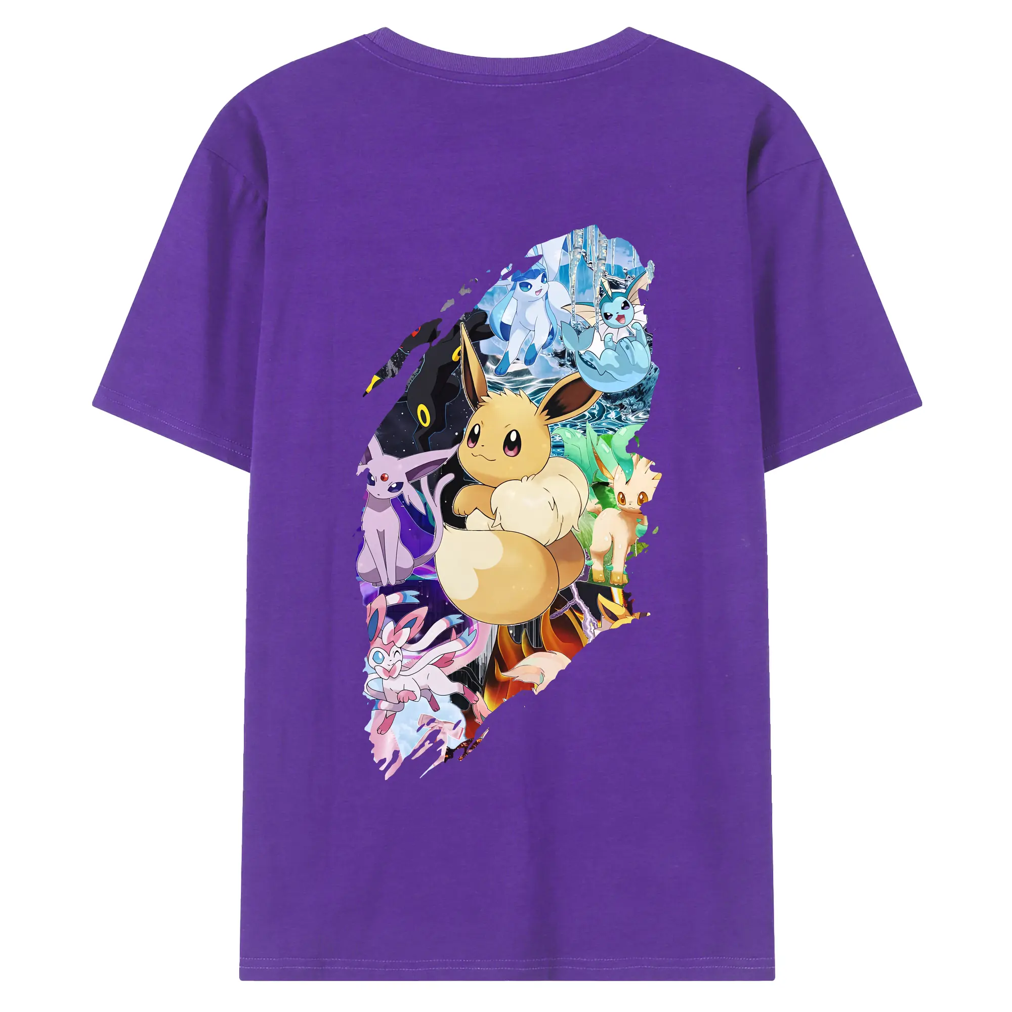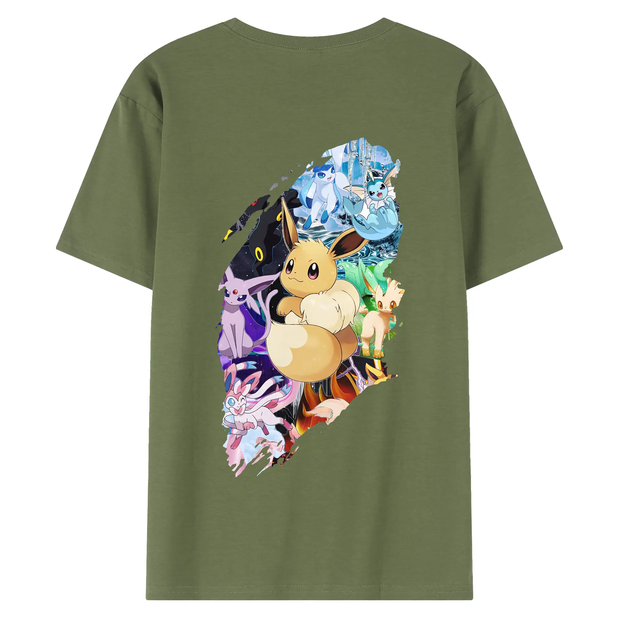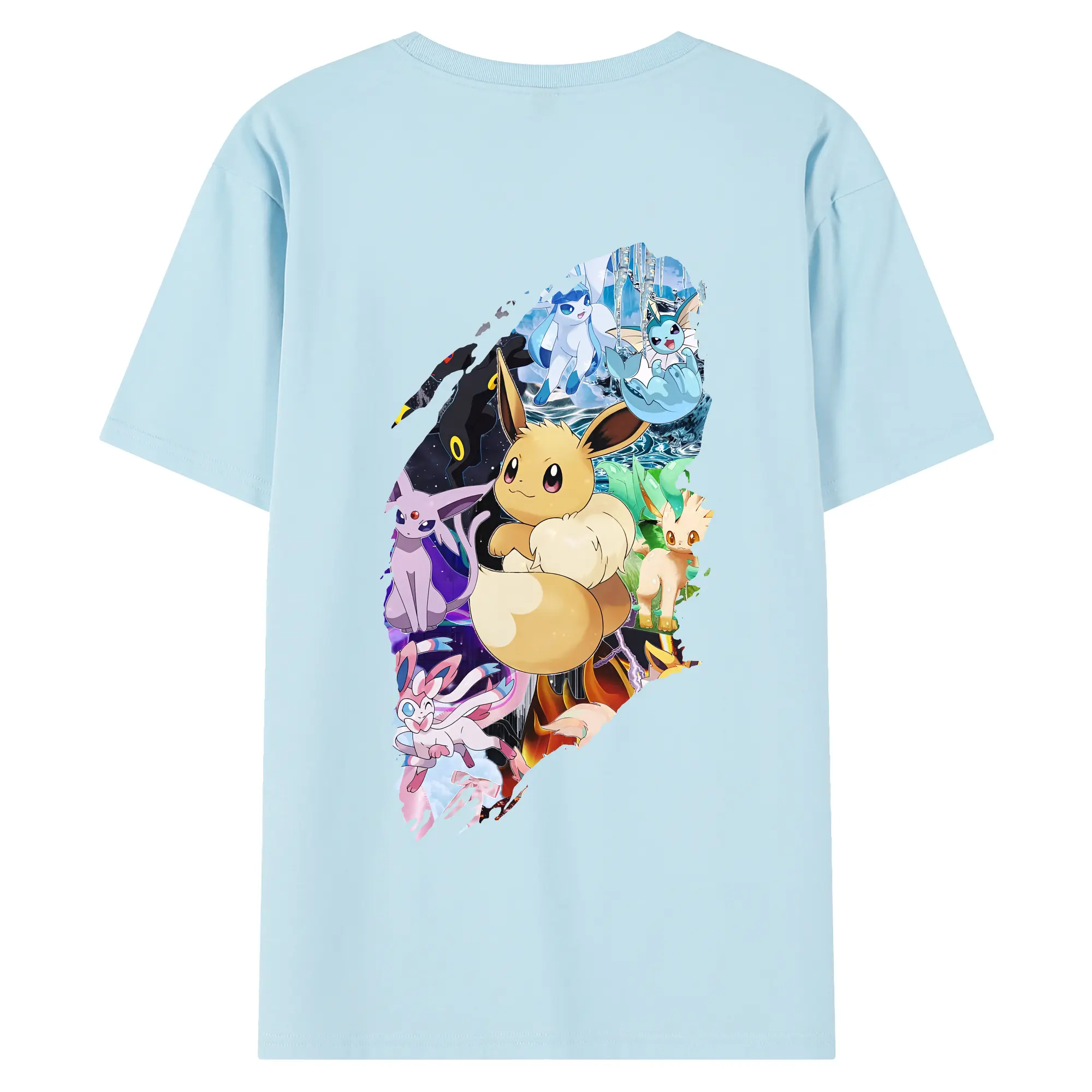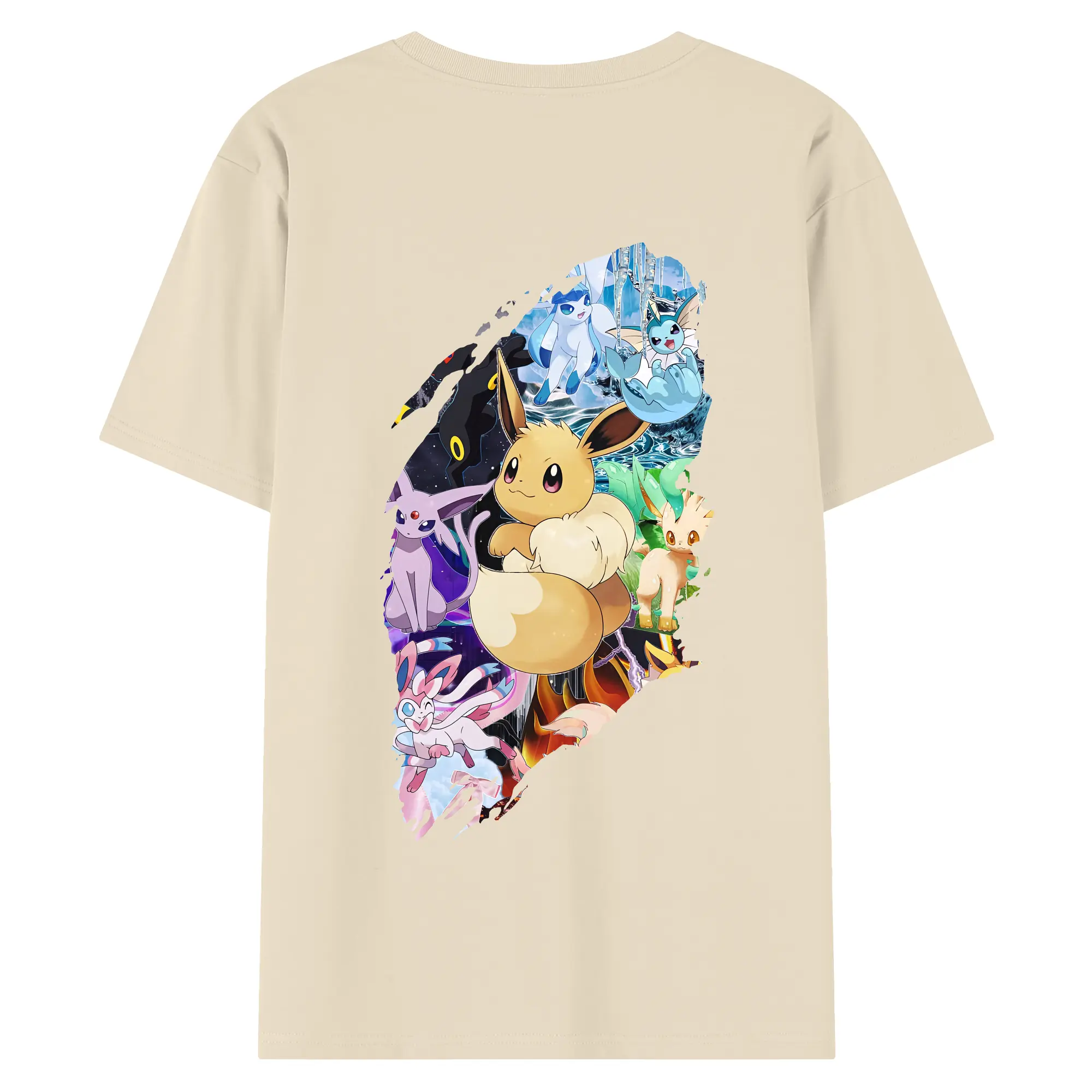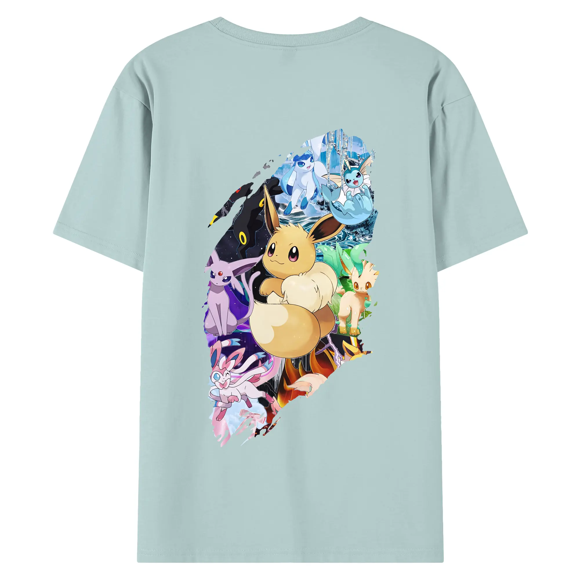 ポケモン グッズ,イーブイ - 綿100% ヴィンテージ風 半袖Tシャツ ・ 背面プリント ・ 柔らか肌触り ・ 通気性 快適 ・ スポーツ カジュアル 外出用