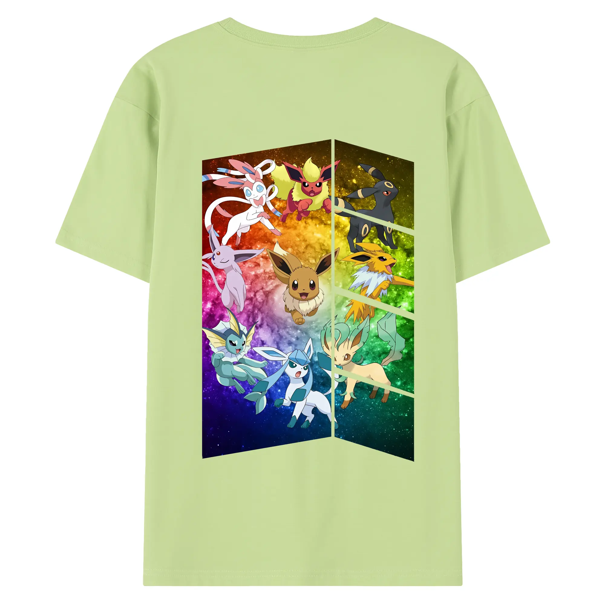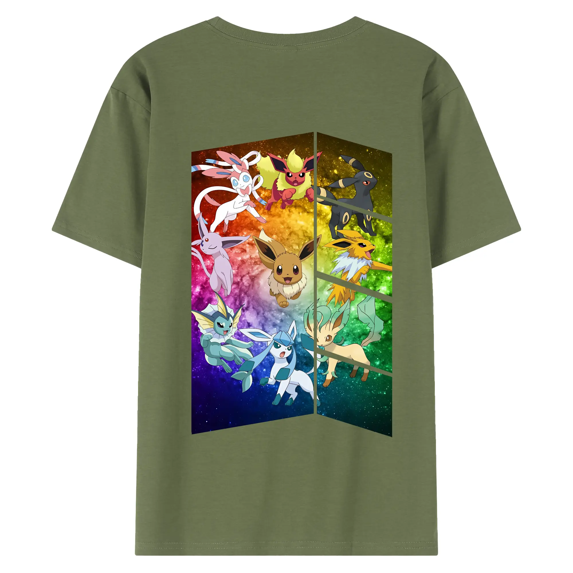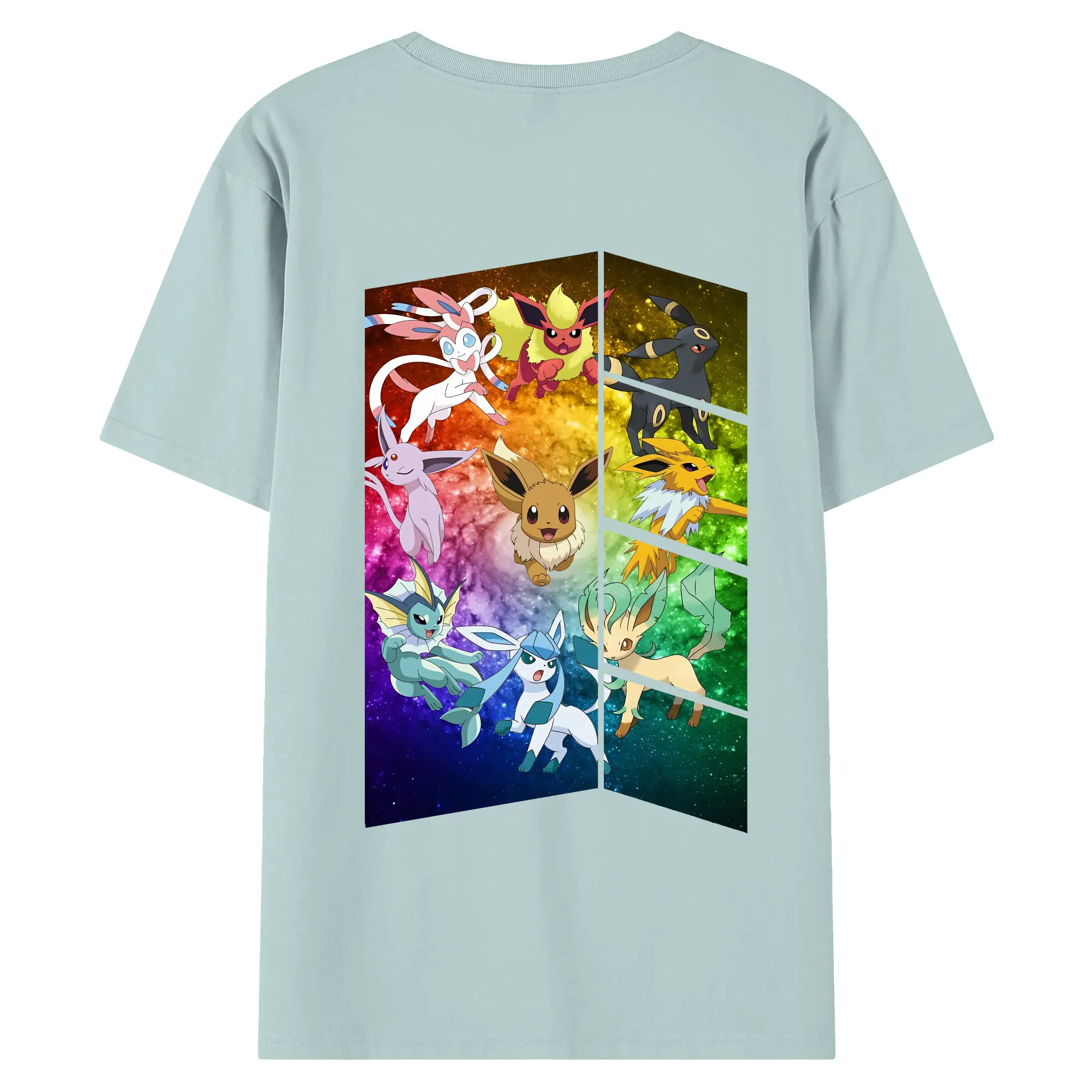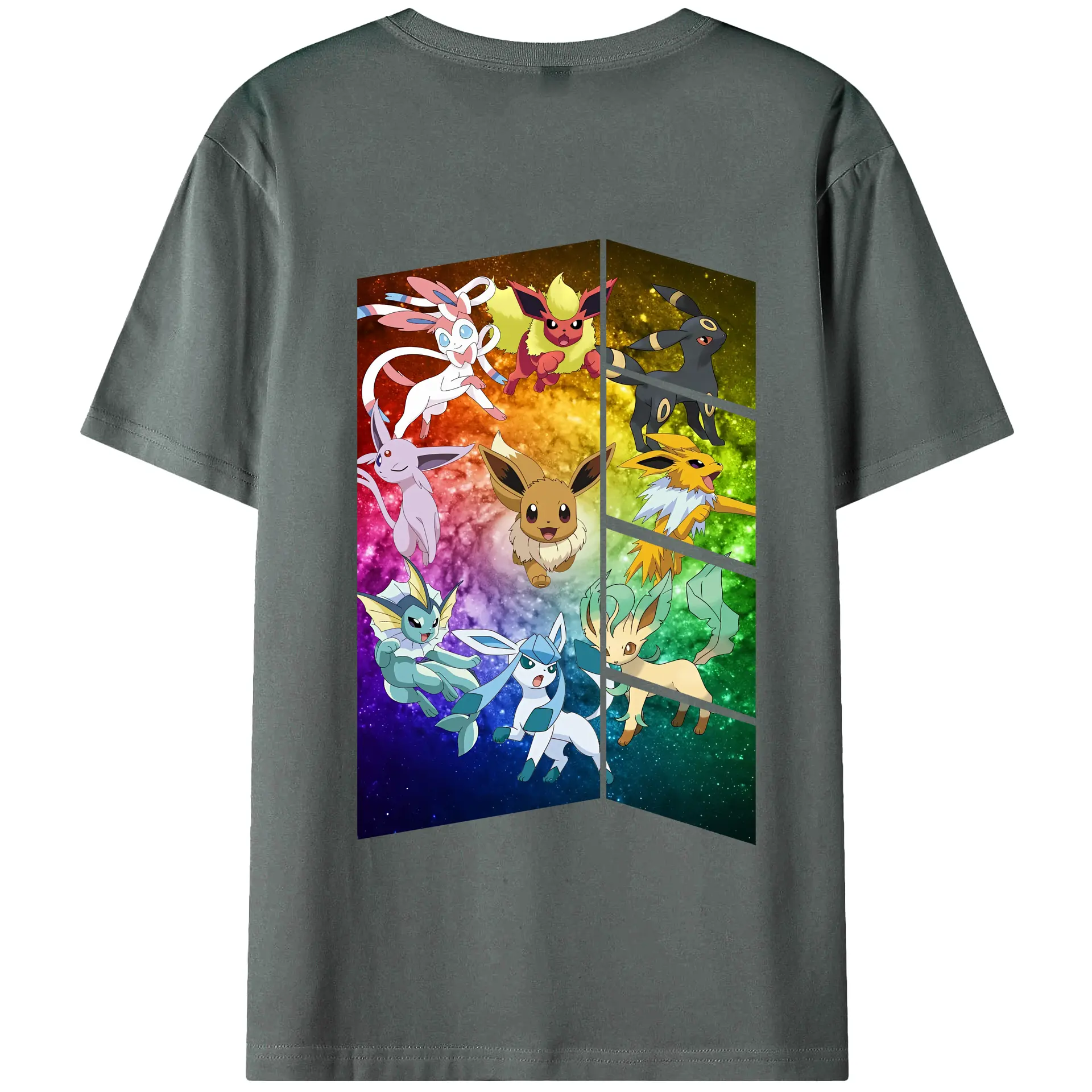 ポケモン グッズ,イーブイ - 綿100% ヴィンテージ風 半袖Tシャツ ・ 背面プリント ・ 柔らか肌触り ・ 通気性 快適 ・ スポーツ カジュアル 外出用
