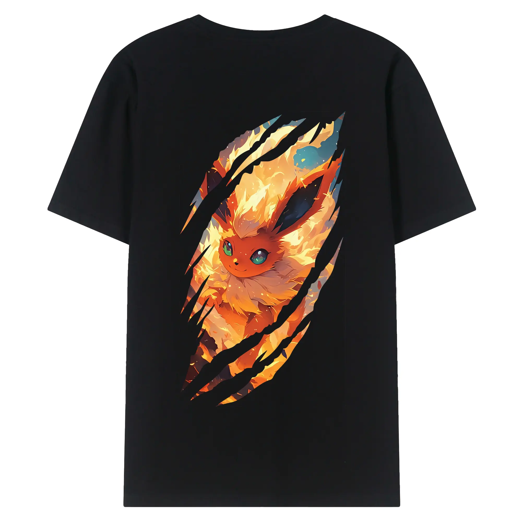 ポケモン グッズ,イーブイ - 綿100% 半袖Tシャツ ・ バックプリント ・ 快適 通気性 ・ 日常使い 散歩 スポーツ用