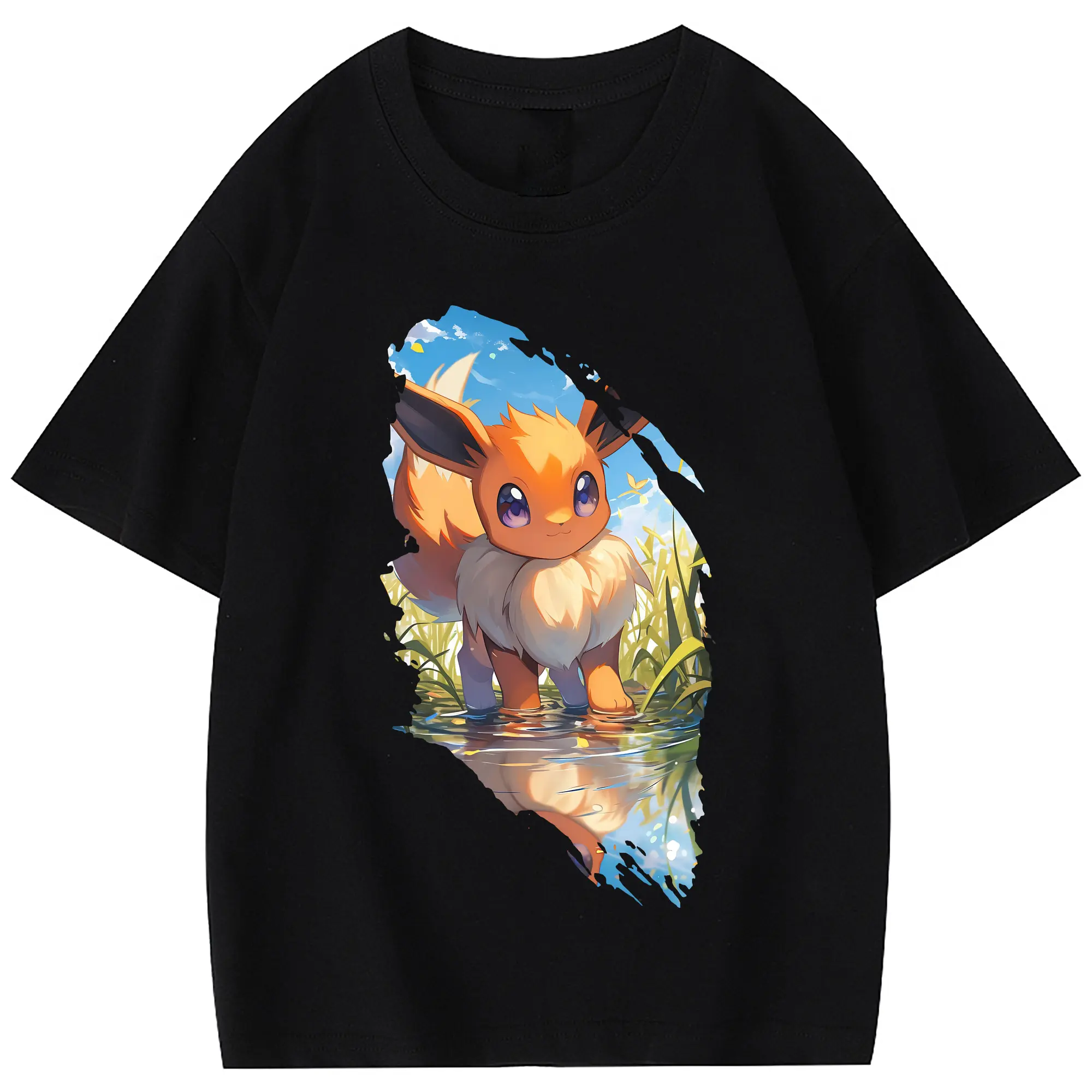 ポケモン グッズ,イーブイ - 綿100% 半袖Tシャツ ・ バックプリント ・ 快適 通気性 ・ 日常使い 散歩 スポーツ用