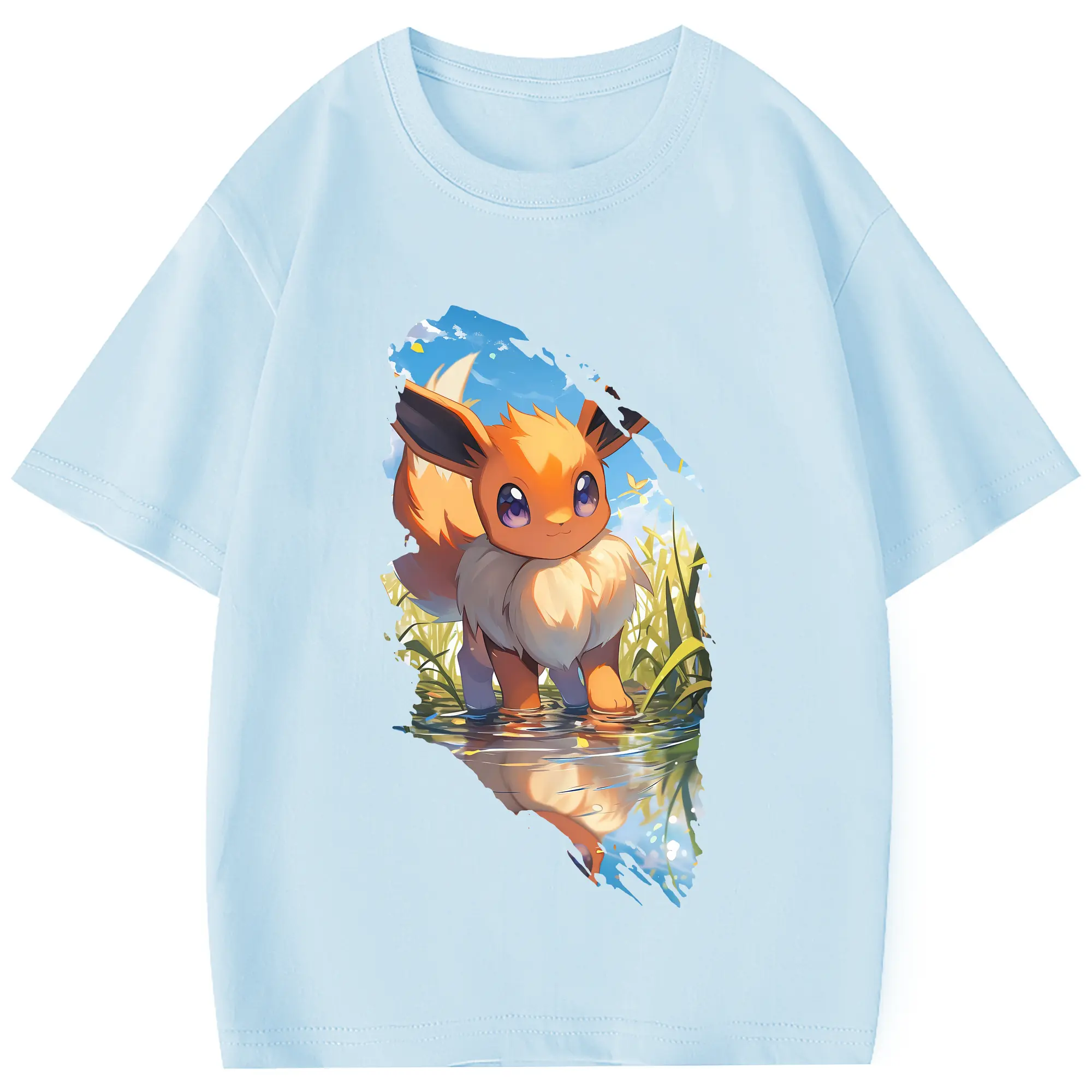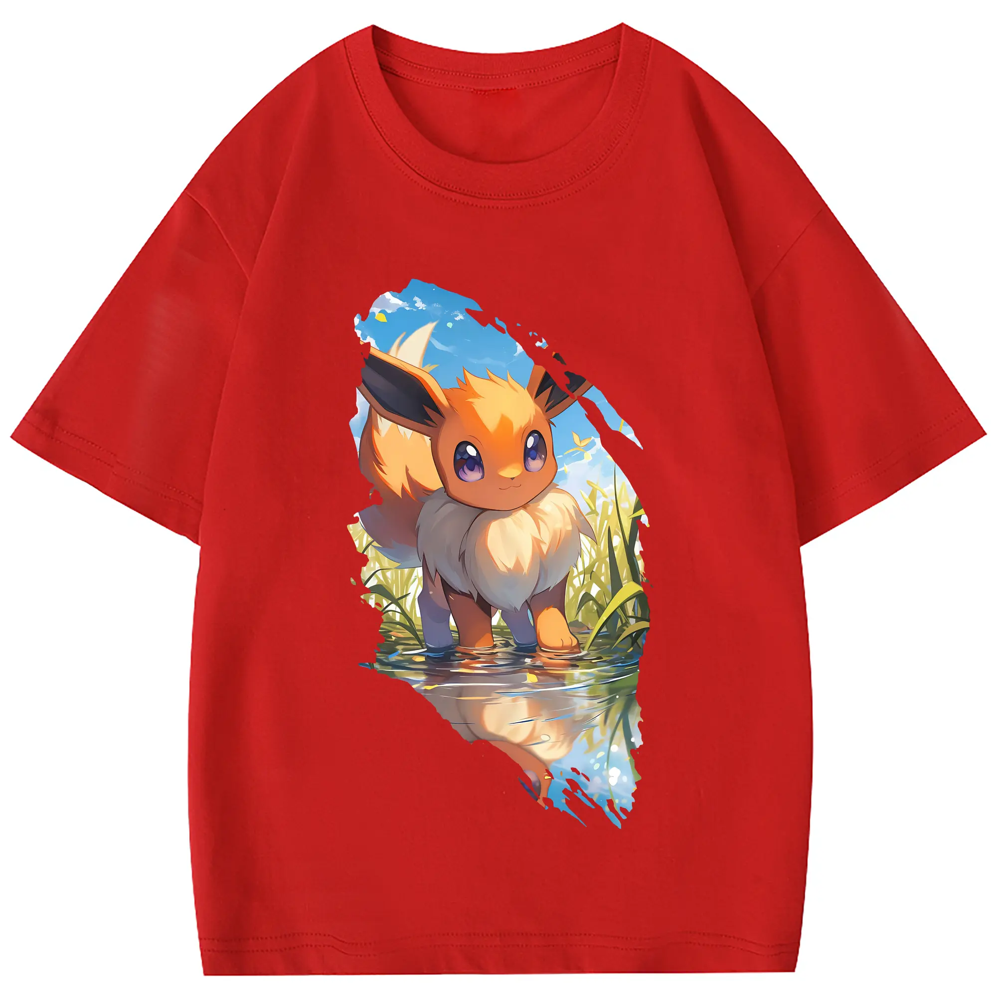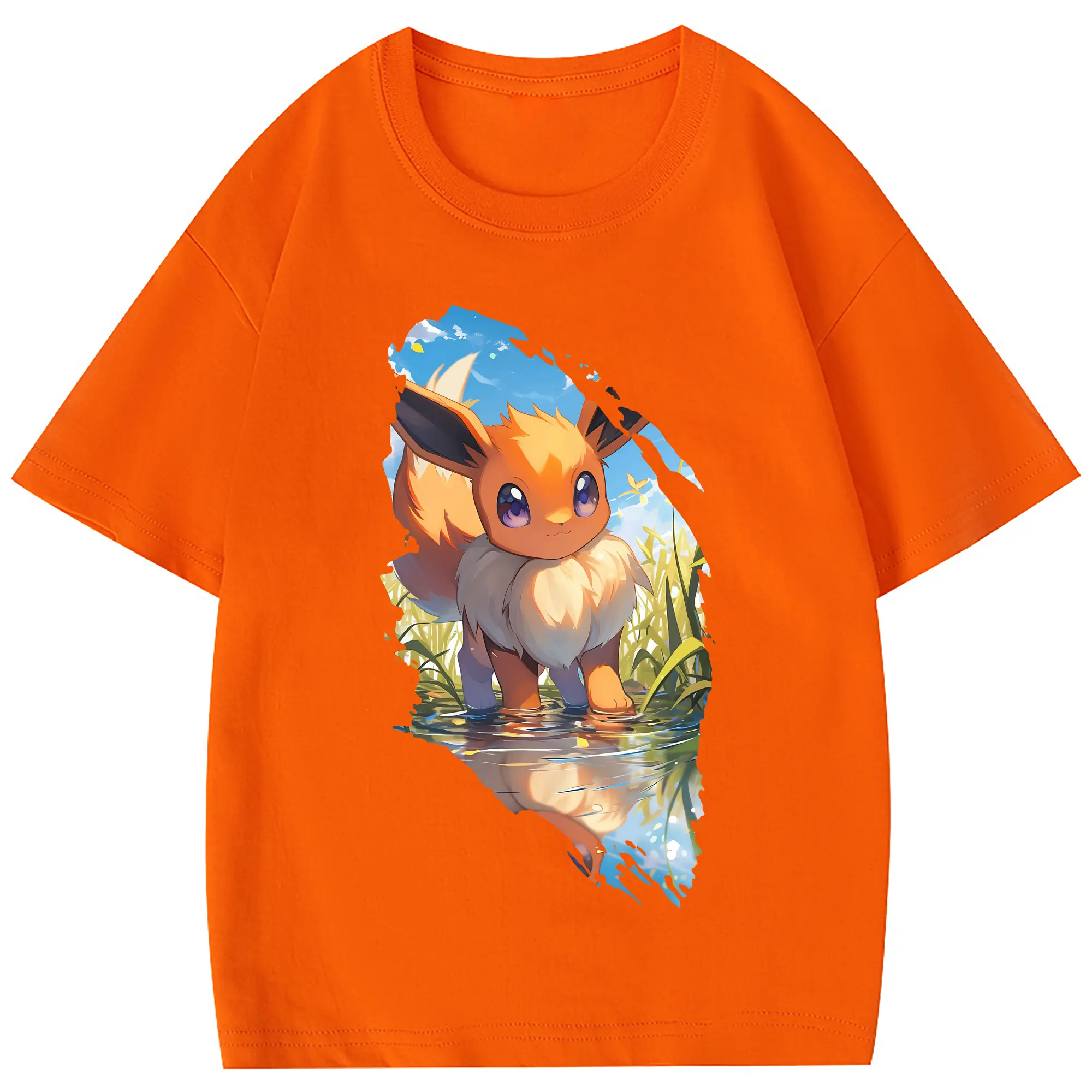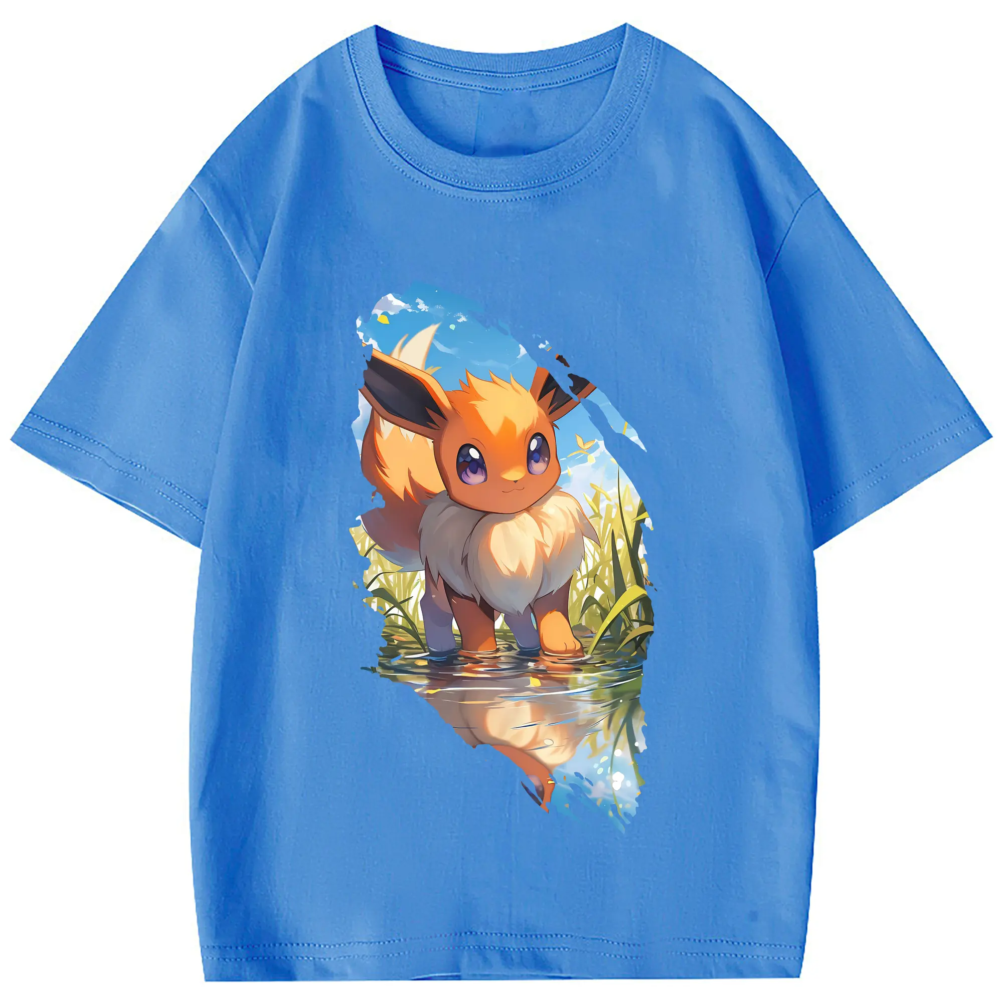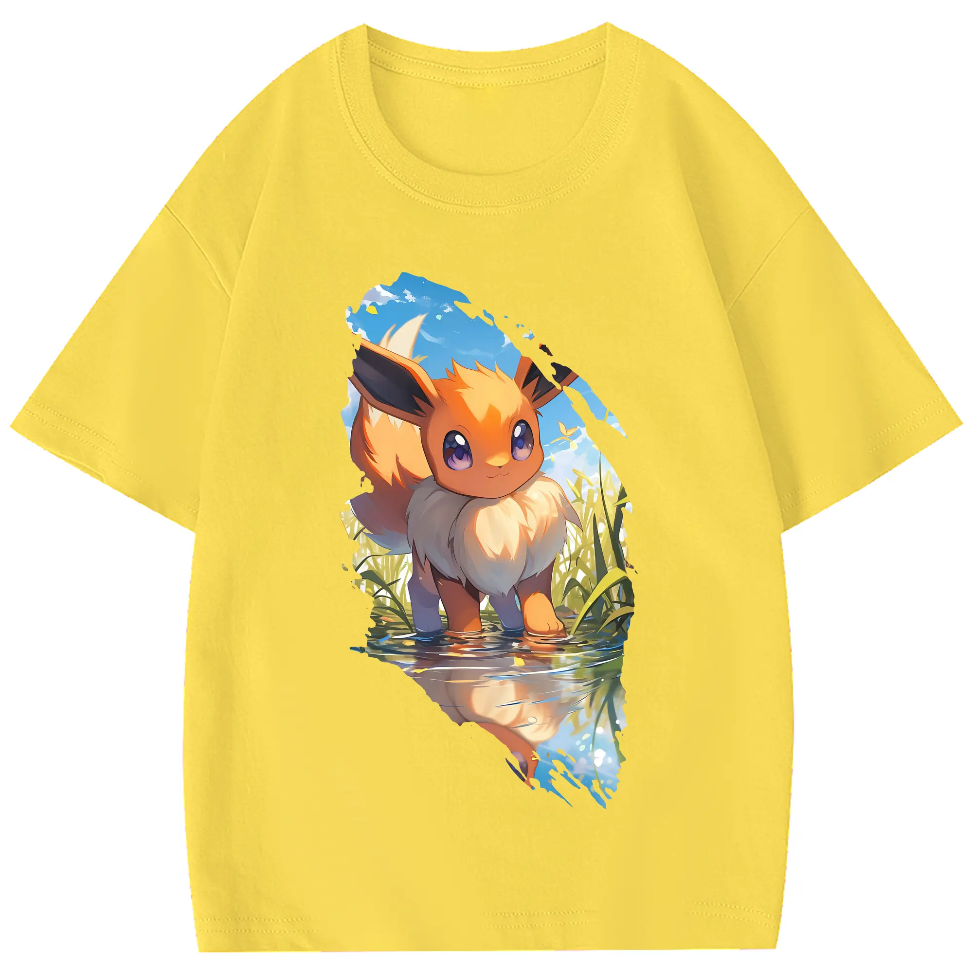 ポケモン グッズ,イーブイ - 綿100% 半袖Tシャツ ・ フロントプリント ・ 快適 通気性 ・ 日常使い 散歩 スポーツ用