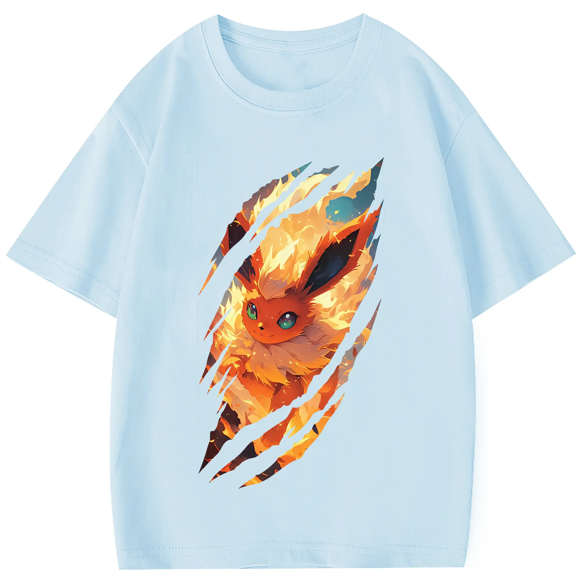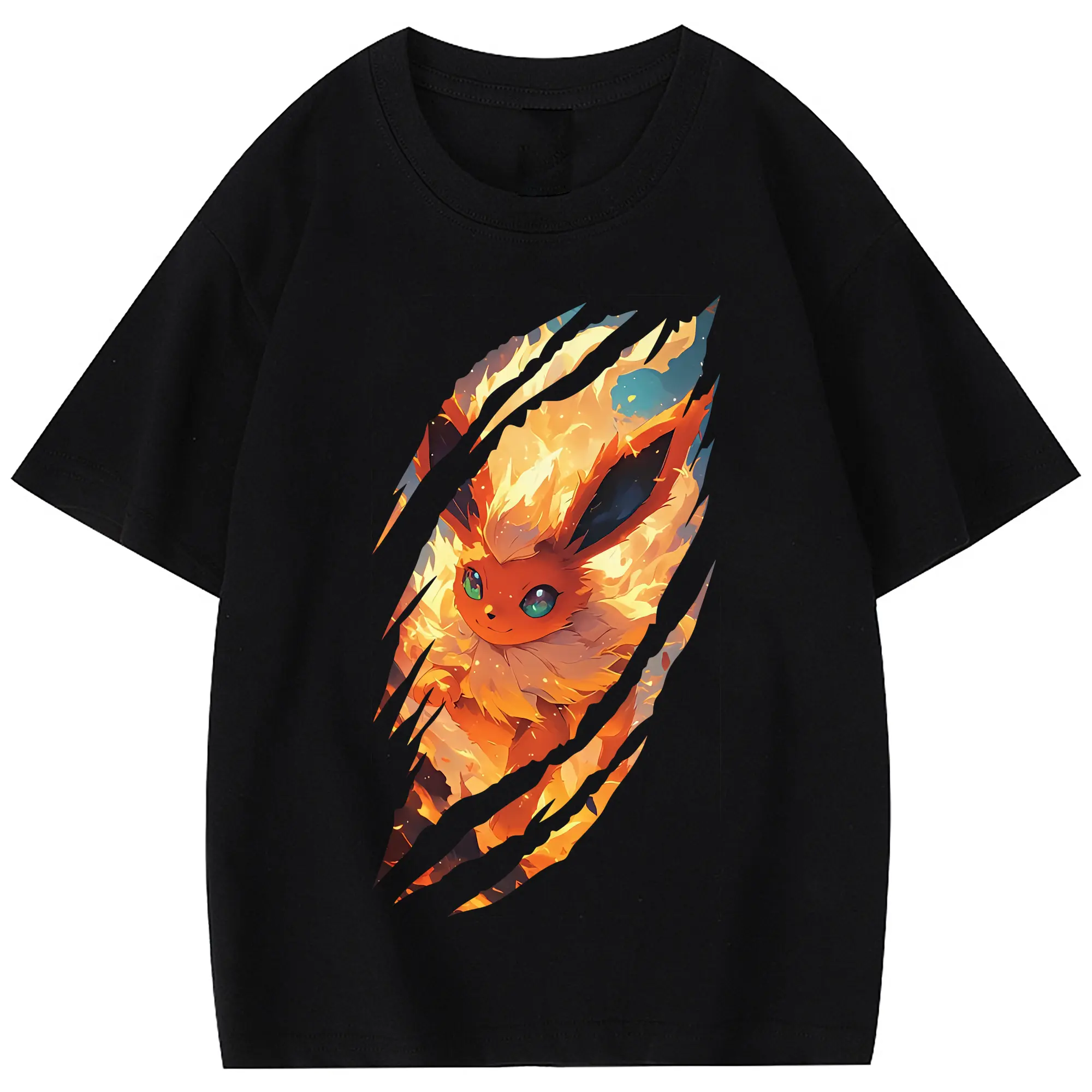ポケモン グッズ,イーブイ - 綿100% 半袖Tシャツ ・ バックプリント ・ 快適 通気性 ・ 日常使い 散歩 スポーツ用