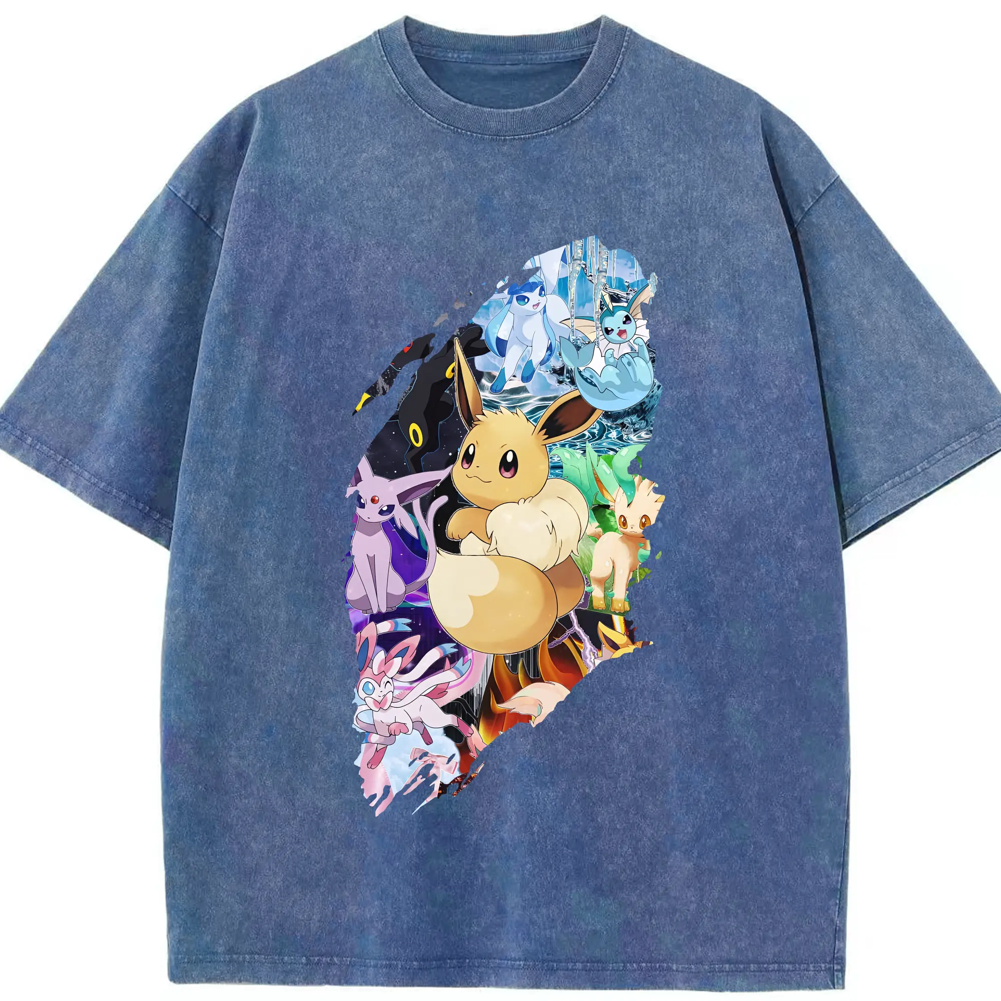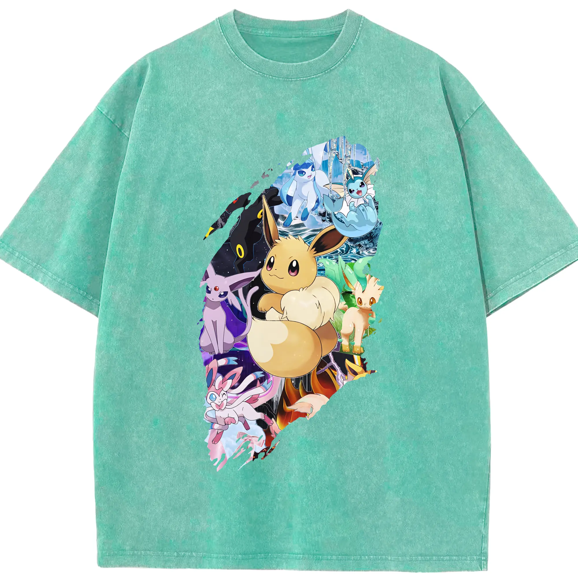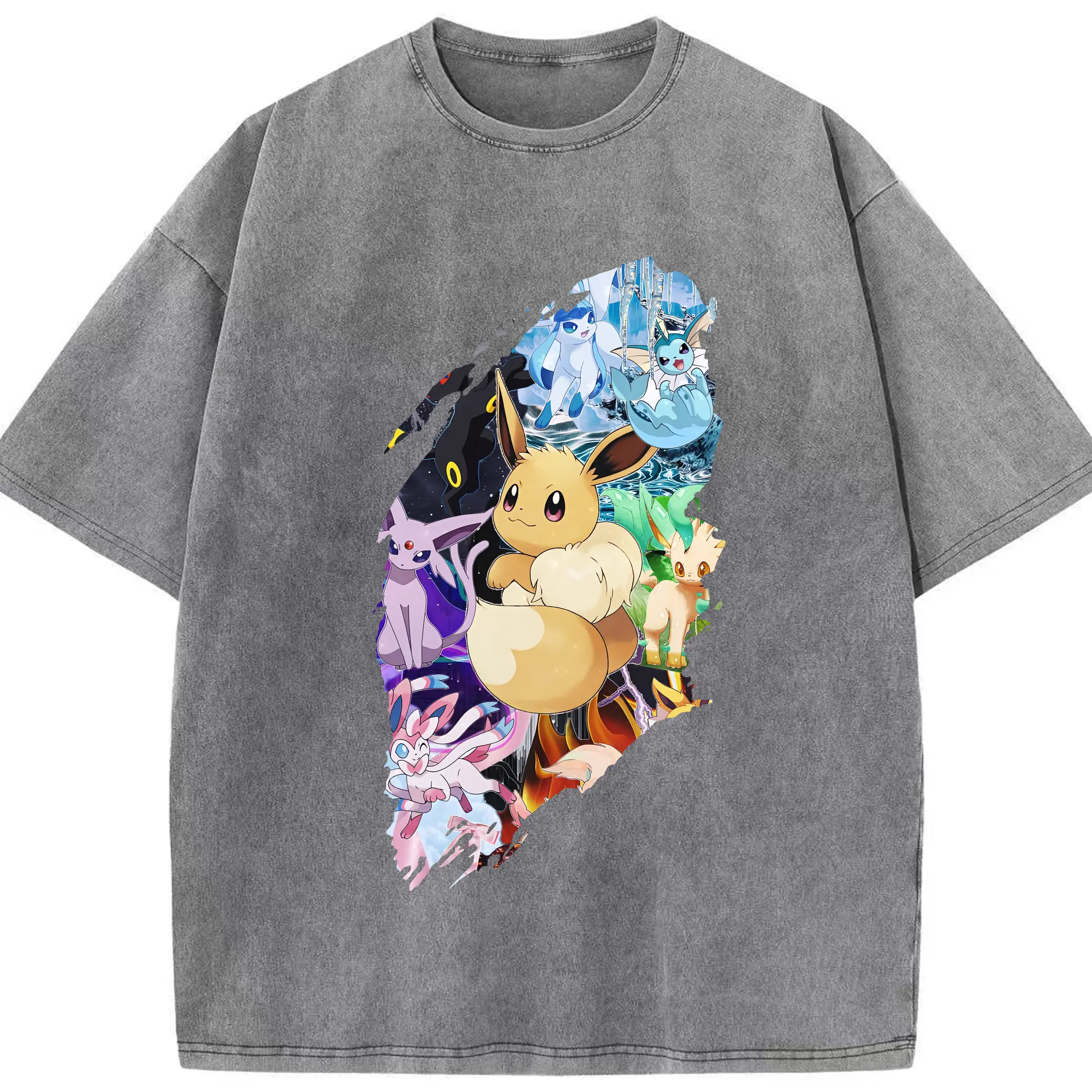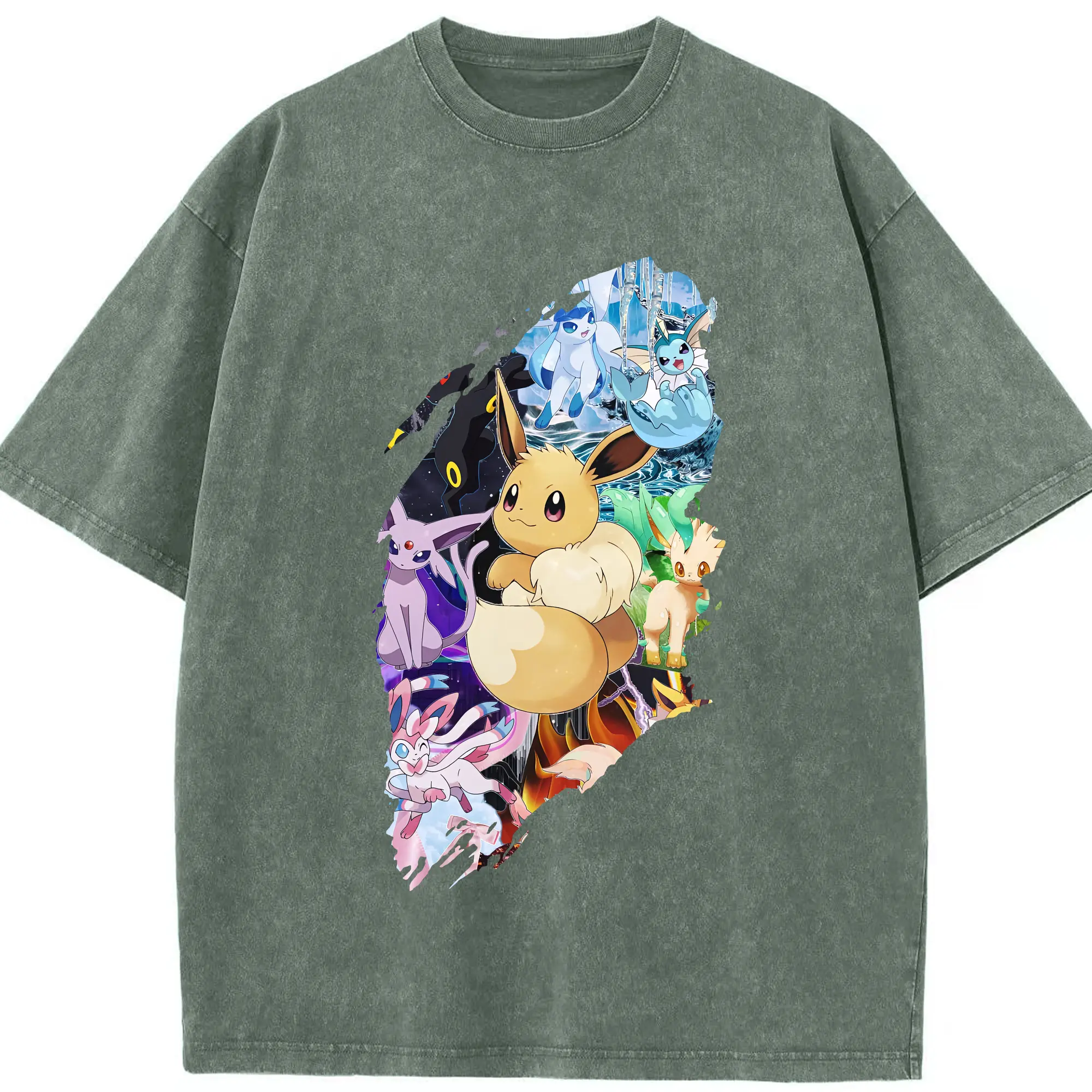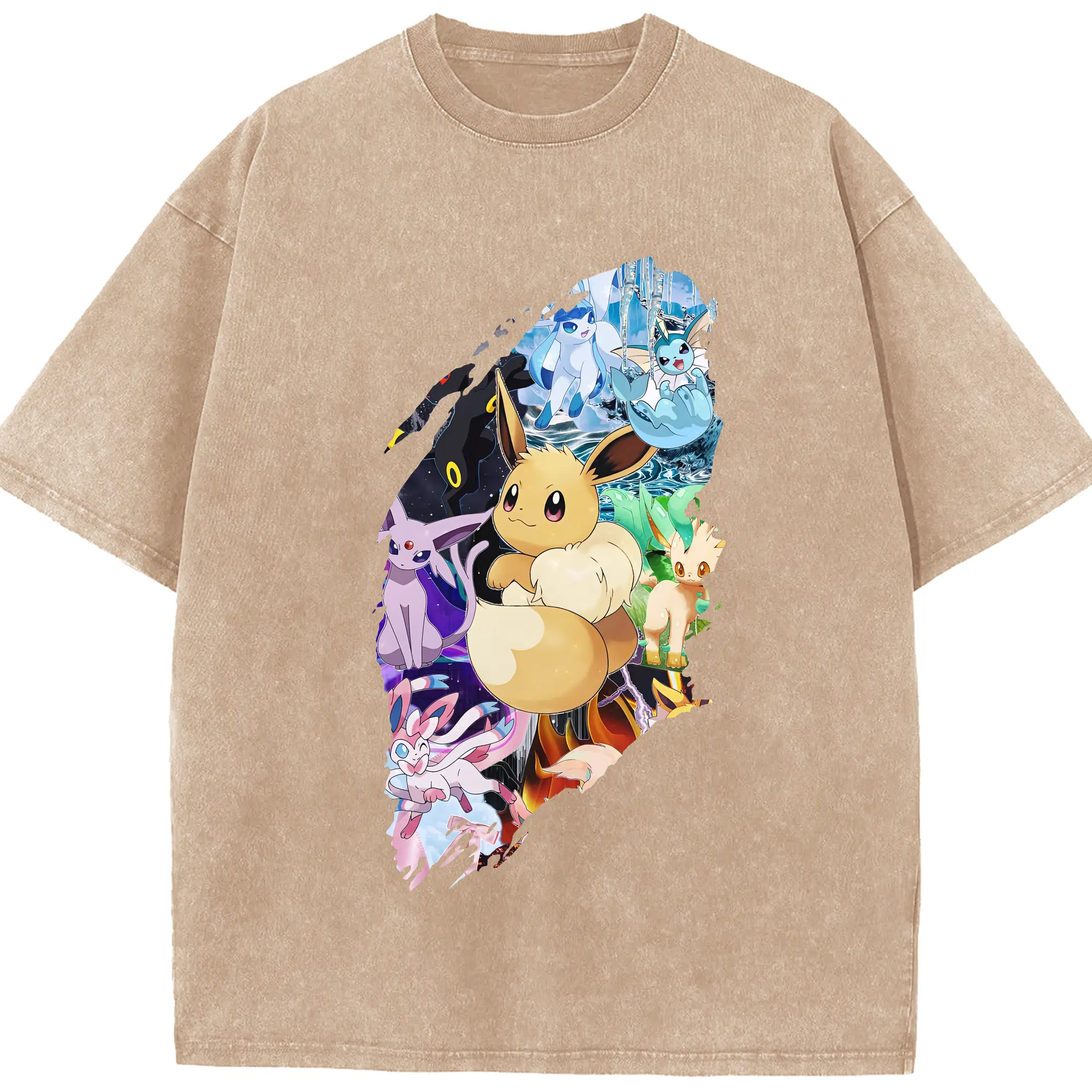 ポケモン グッズ,イーブイ - 綿100% ヴィンテージ風 半袖Tシャツ ・ 背面プリント ・ 柔らか肌触り ・ 通気性 快適 ・ スポーツ カジュアル 外出用