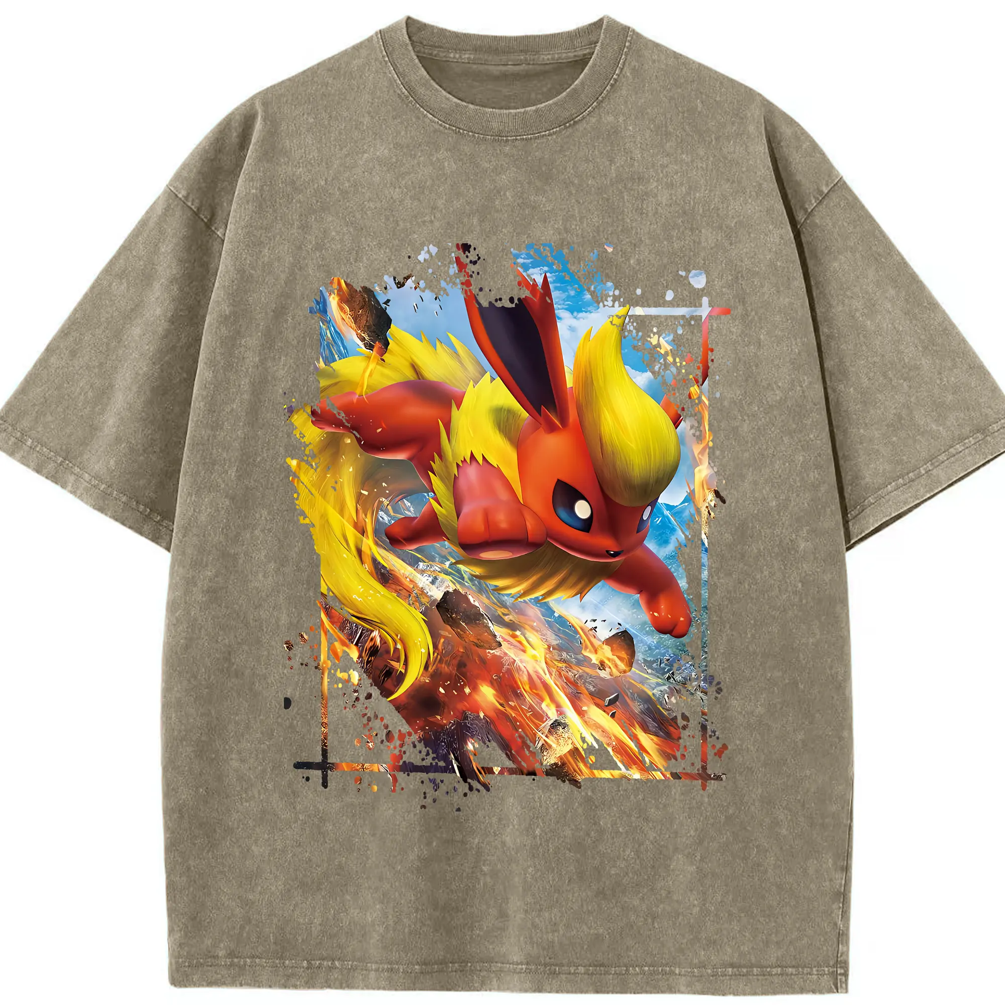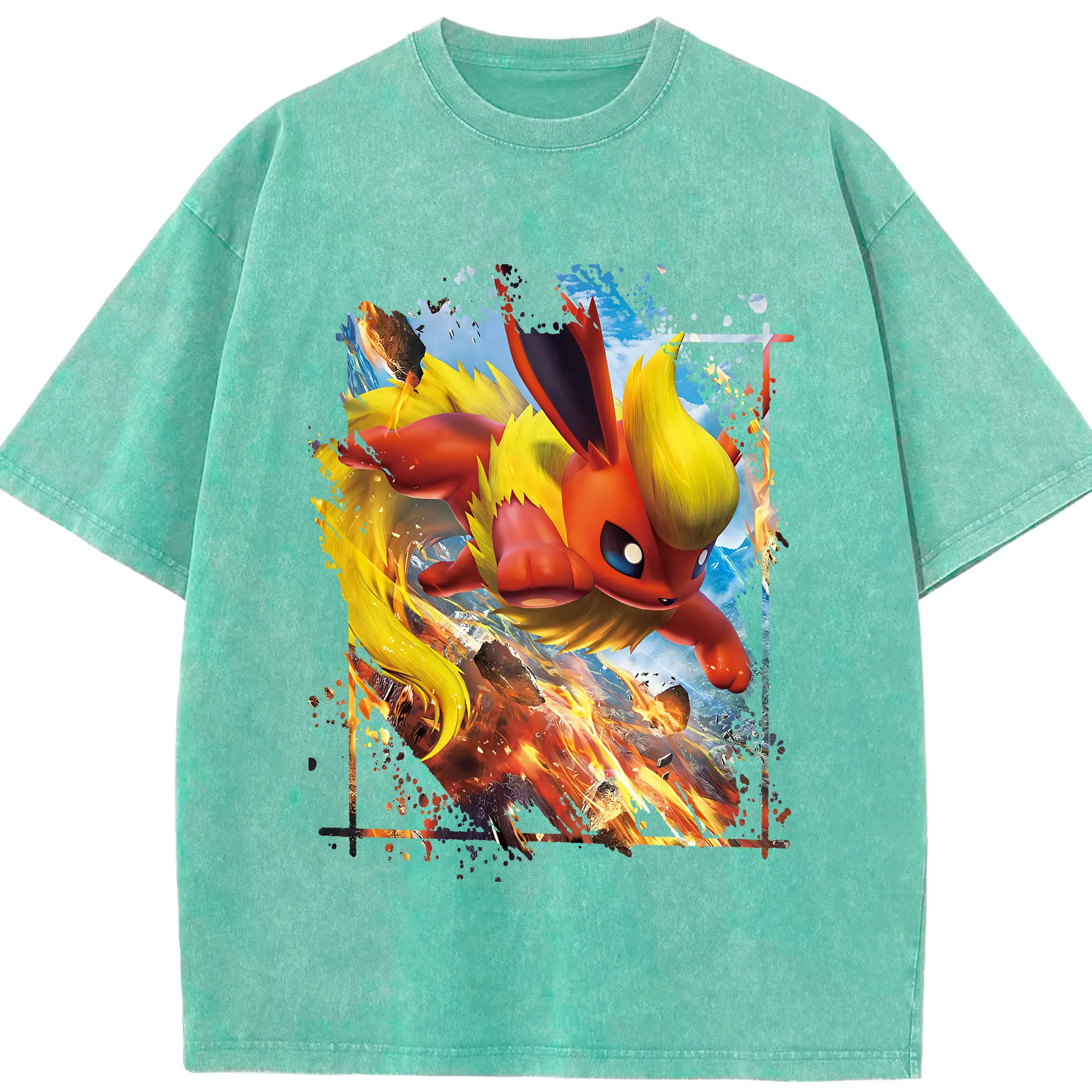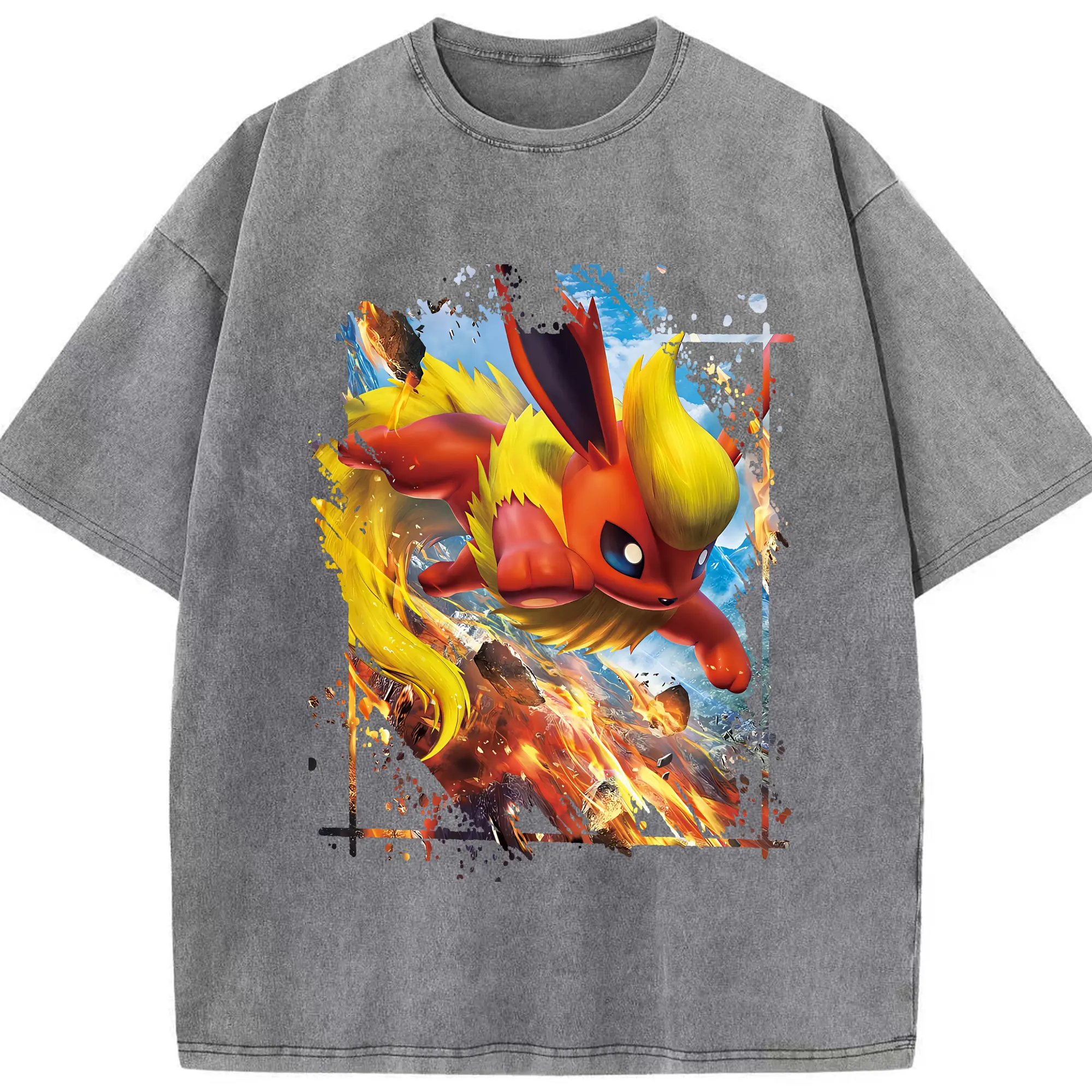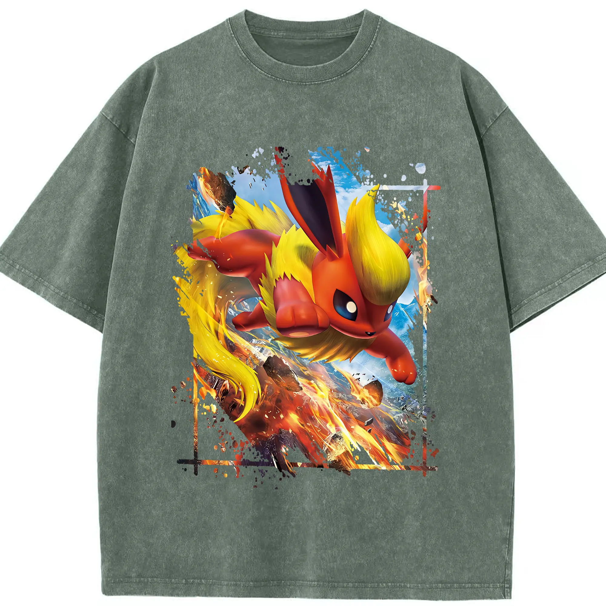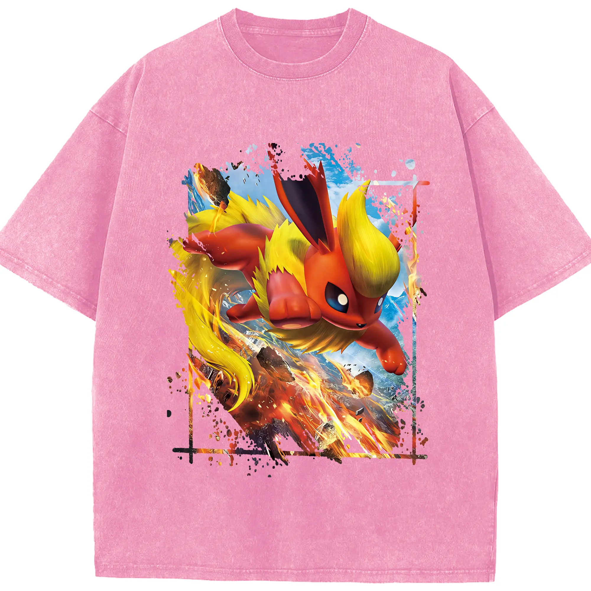 ポケモン グッズ,イーブイ - 綿100% ヴィンテージ風 半袖Tシャツ ・ 背面プリント ・ 柔らか肌触り ・ 通気性 快適 ・ スポーツ カジュアル 外出用