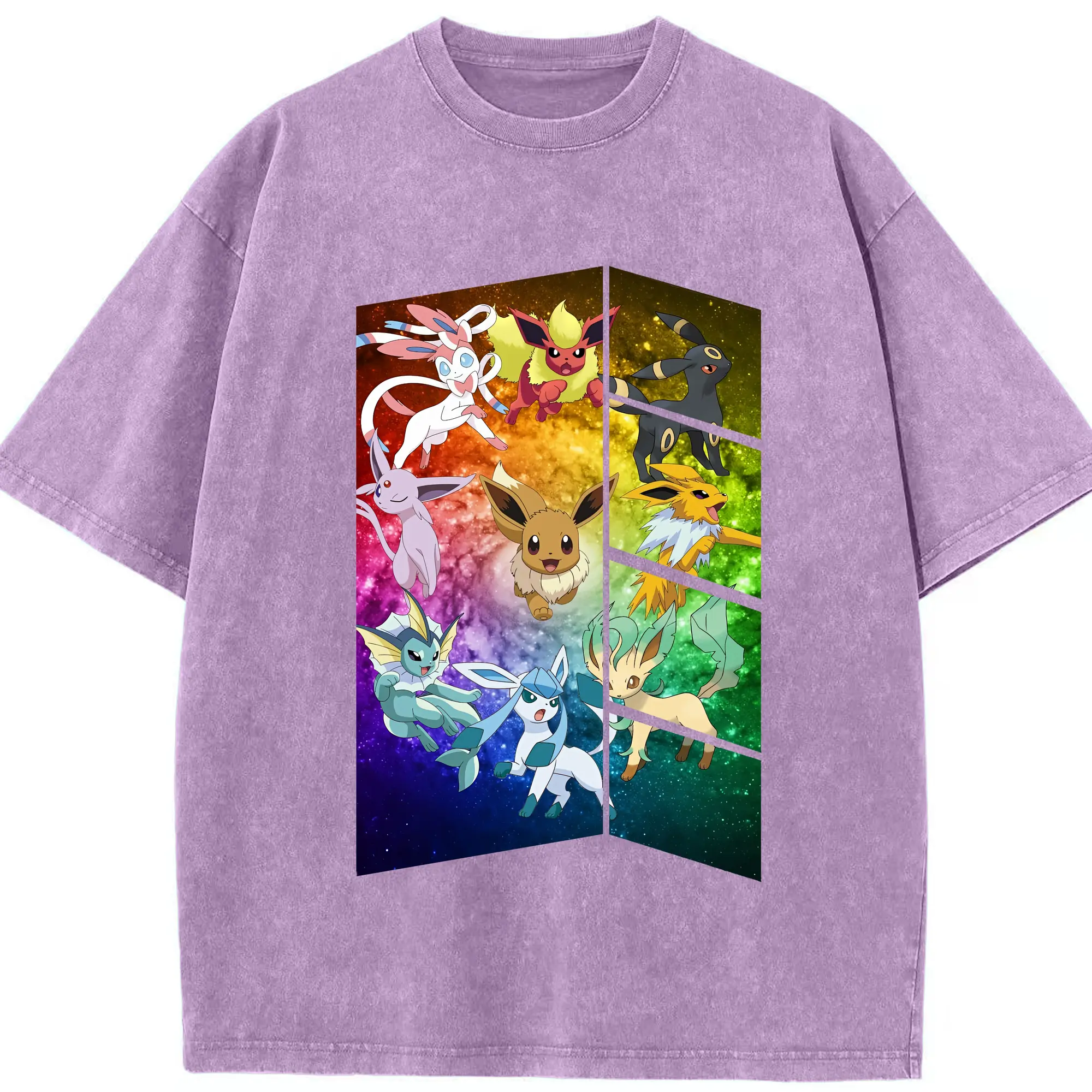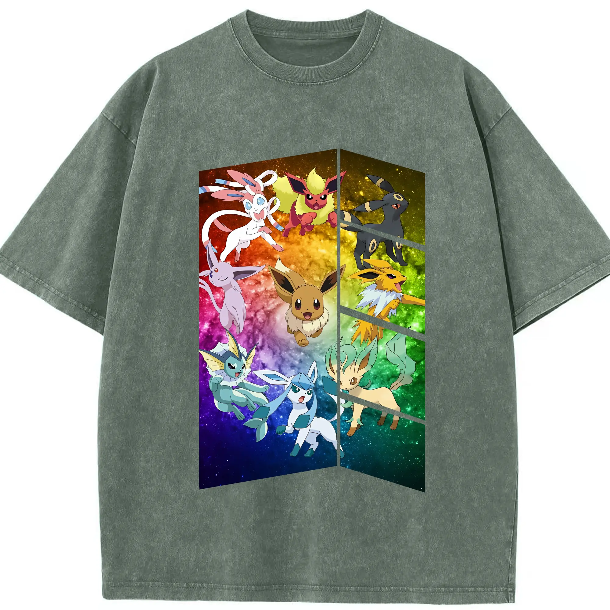 ポケモン グッズ,イーブイ - 綿100% ヴィンテージ風 半袖Tシャツ ・ 背面プリント ・ 柔らか肌触り ・ 通気性 快適 ・ スポーツ カジュアル 外出用