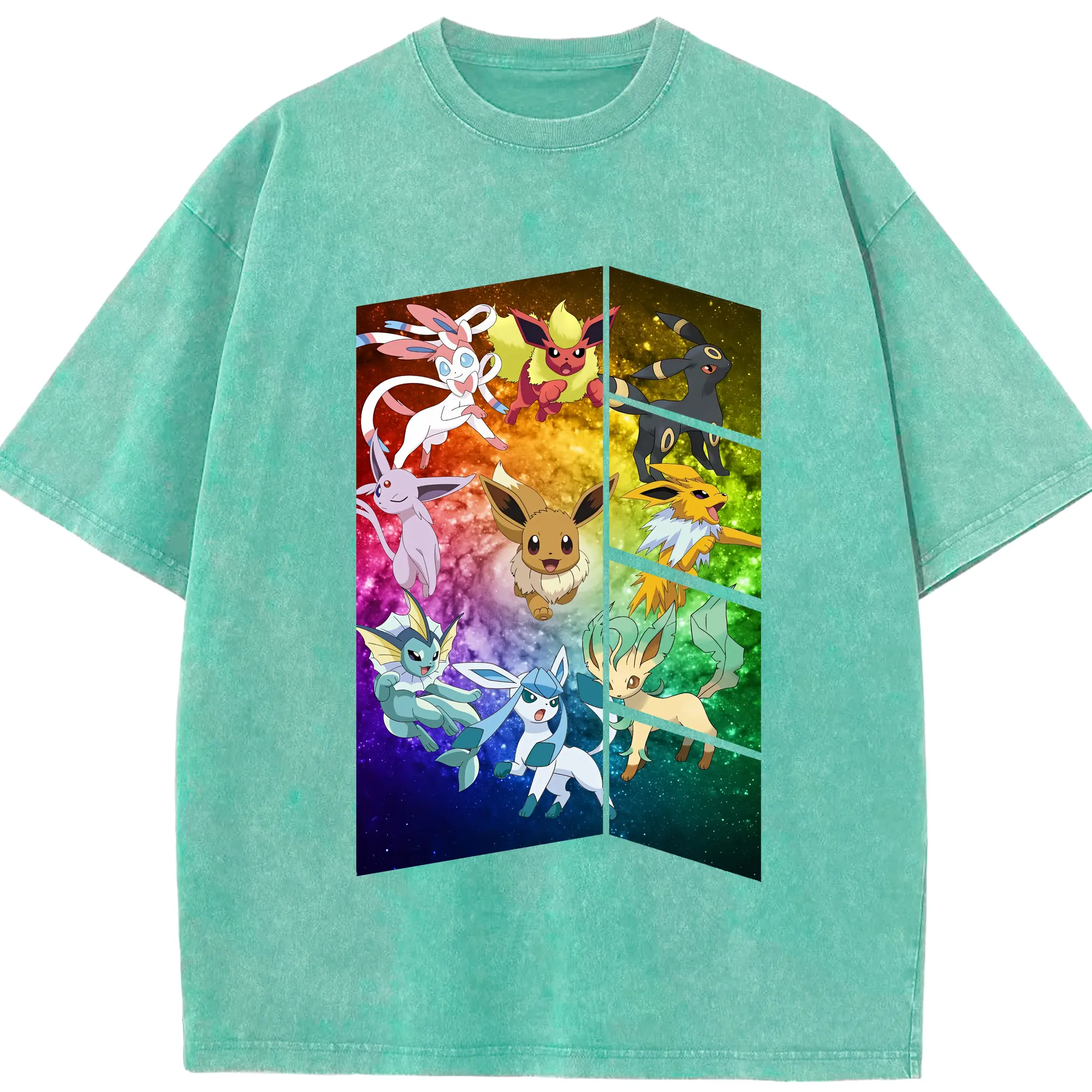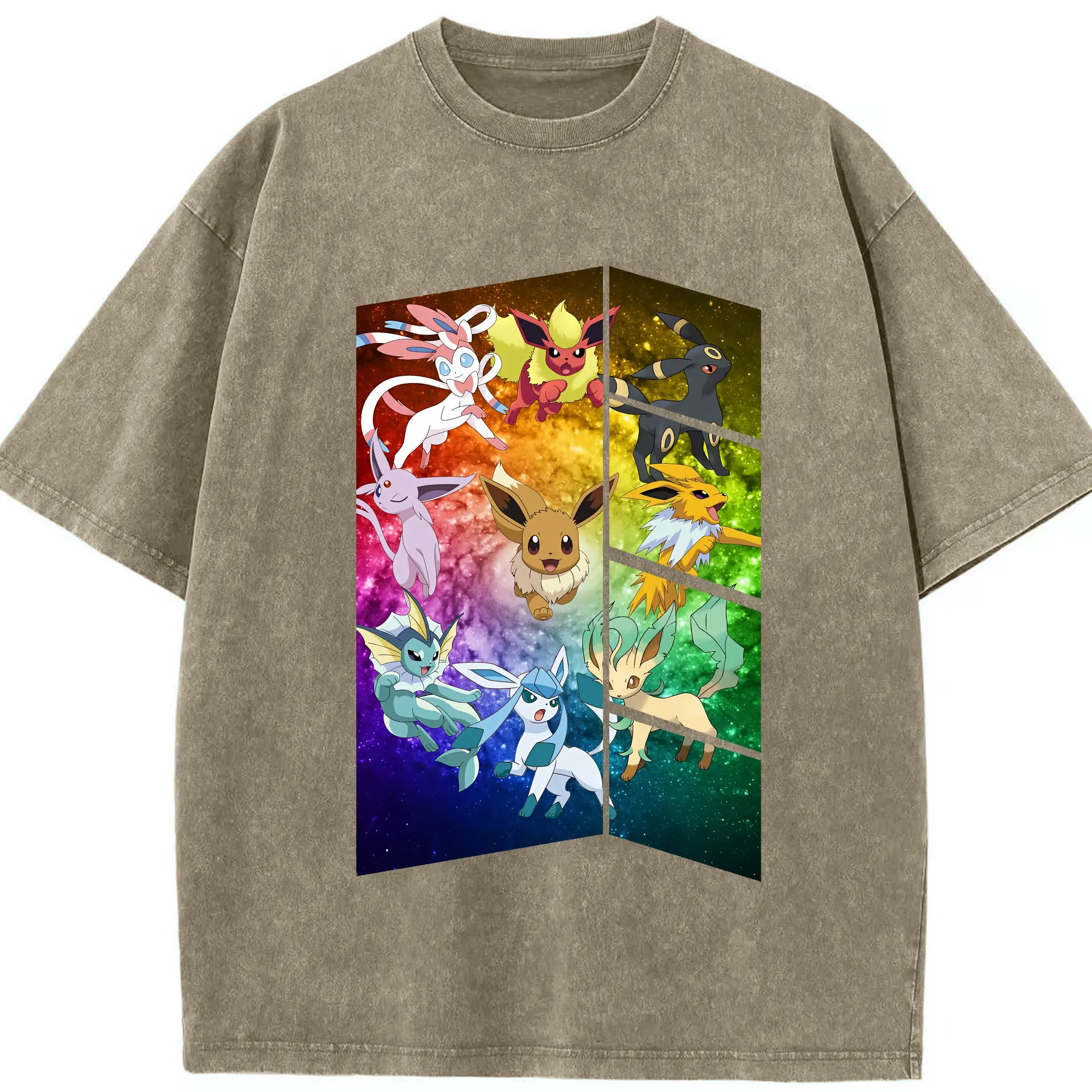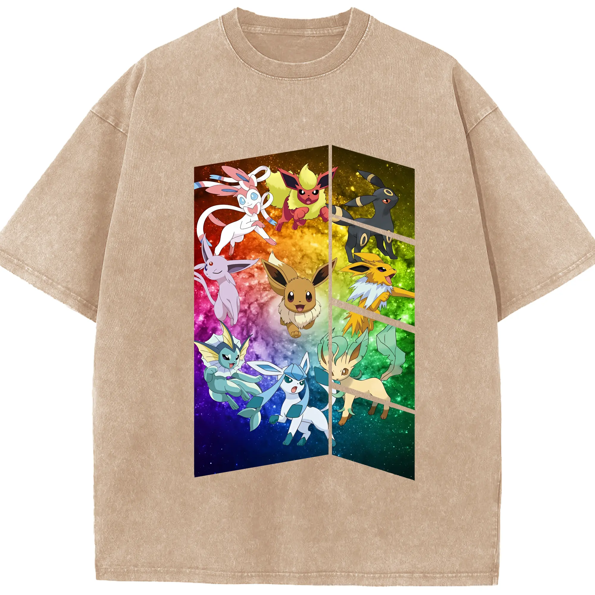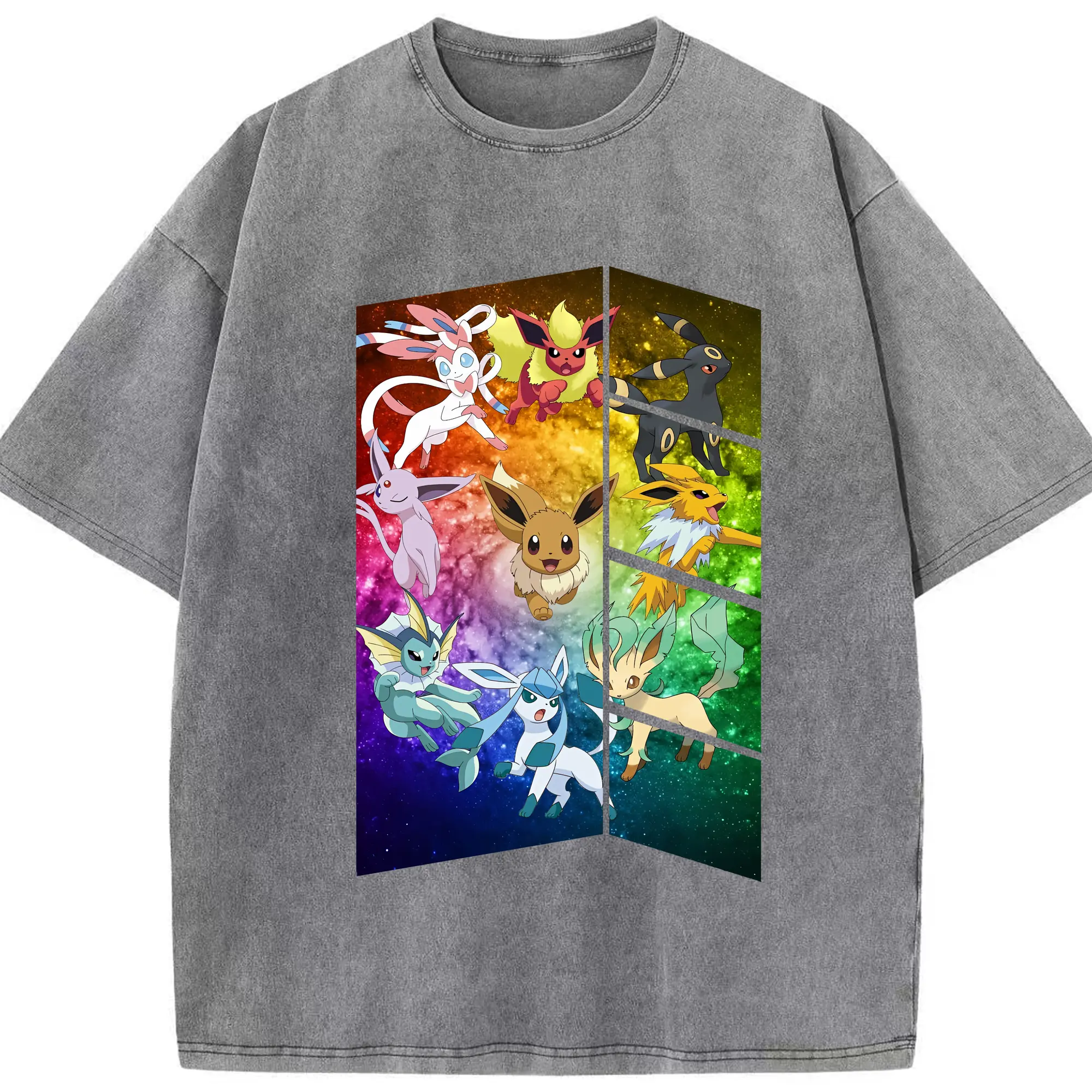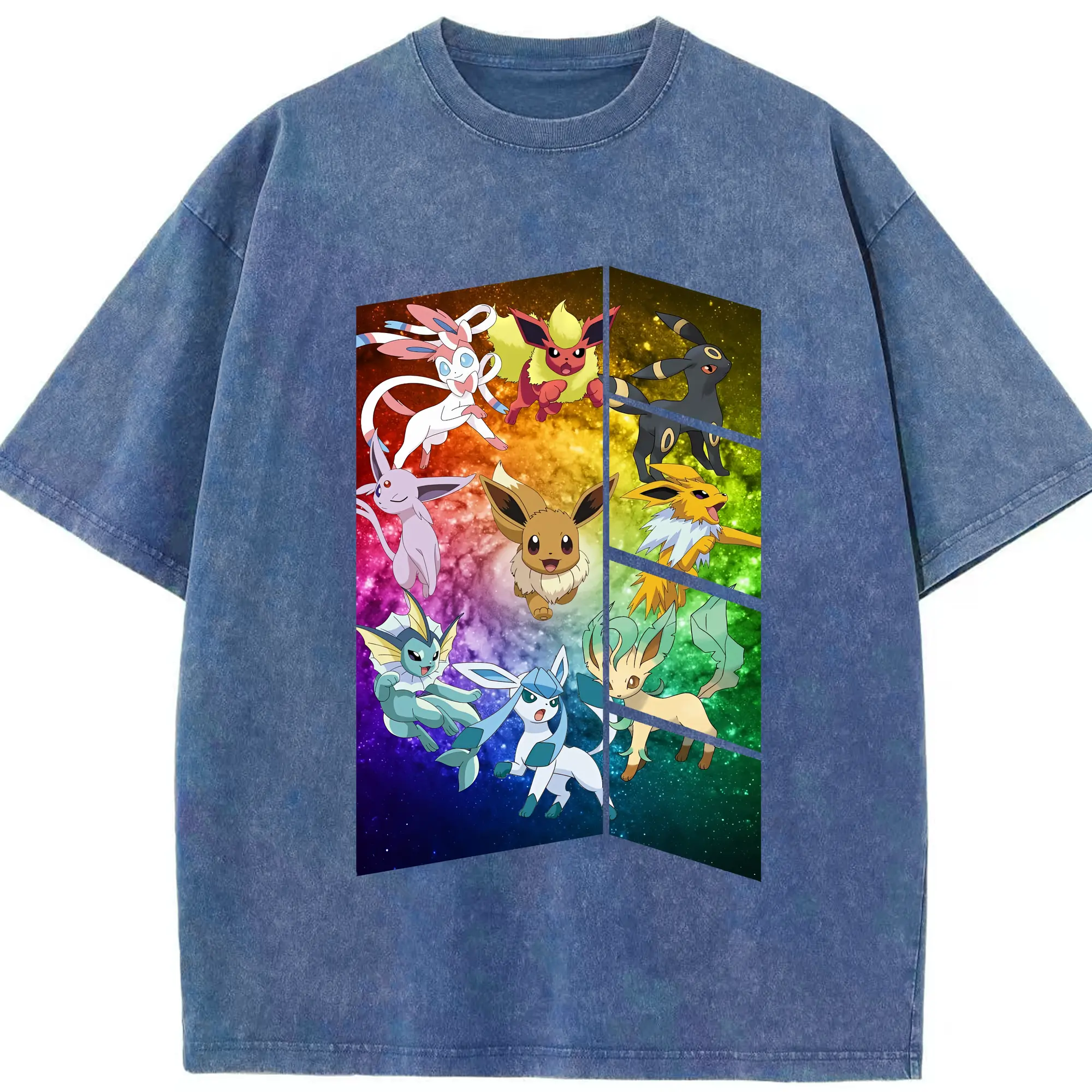ポケモン グッズ,イーブイ - 綿100% ヴィンテージ風 半袖Tシャツ ・ フロントプリント ・ 柔らか肌触り ・ 通気性 快適 ・ スポーツ カジュアル 外出用