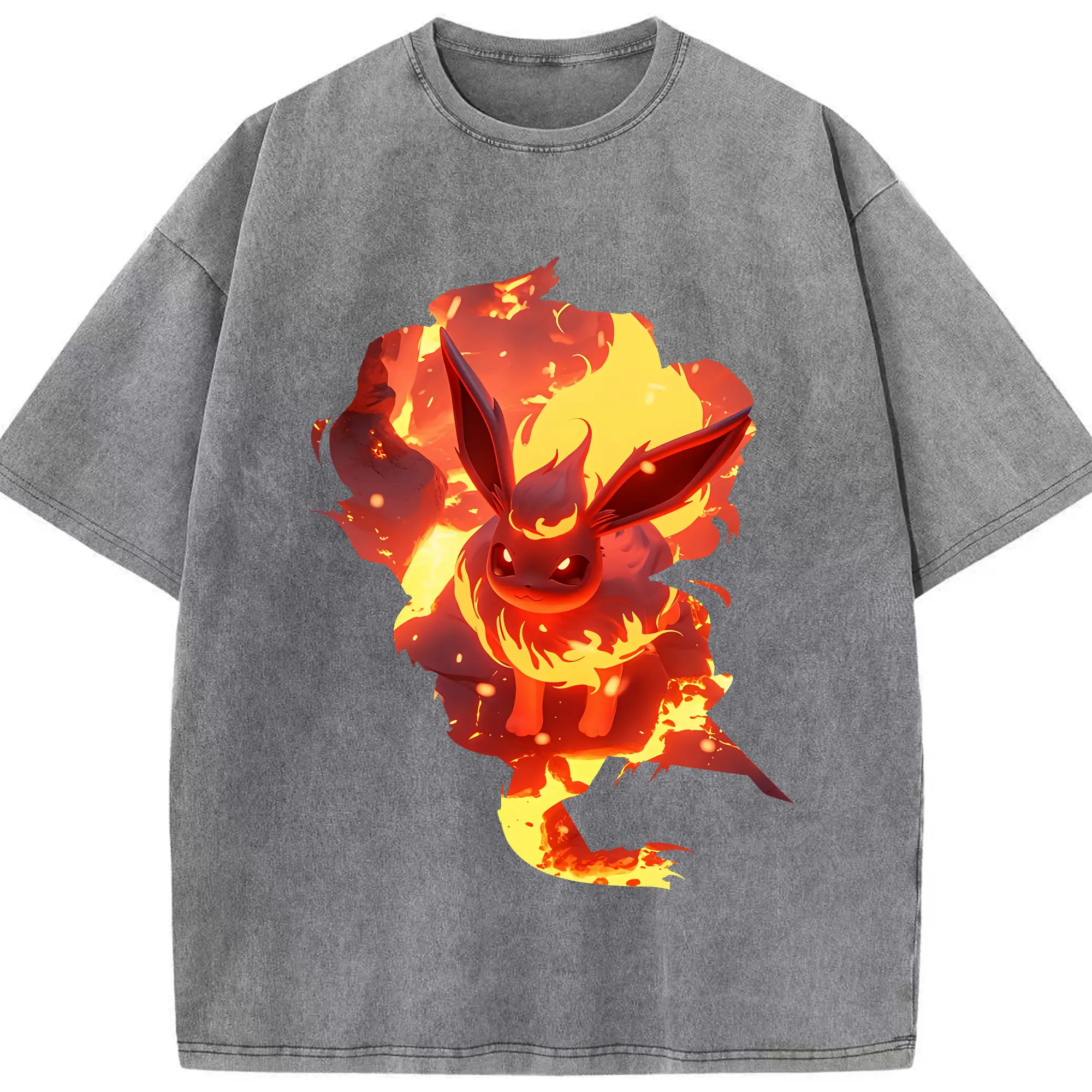 ポケモン グッズ,イーブイ - 綿100% ヴィンテージ風 半袖Tシャツ ・ 背面プリント ・ 柔らか肌触り ・ 通気性 快適 ・ スポーツ カジュアル 外出用