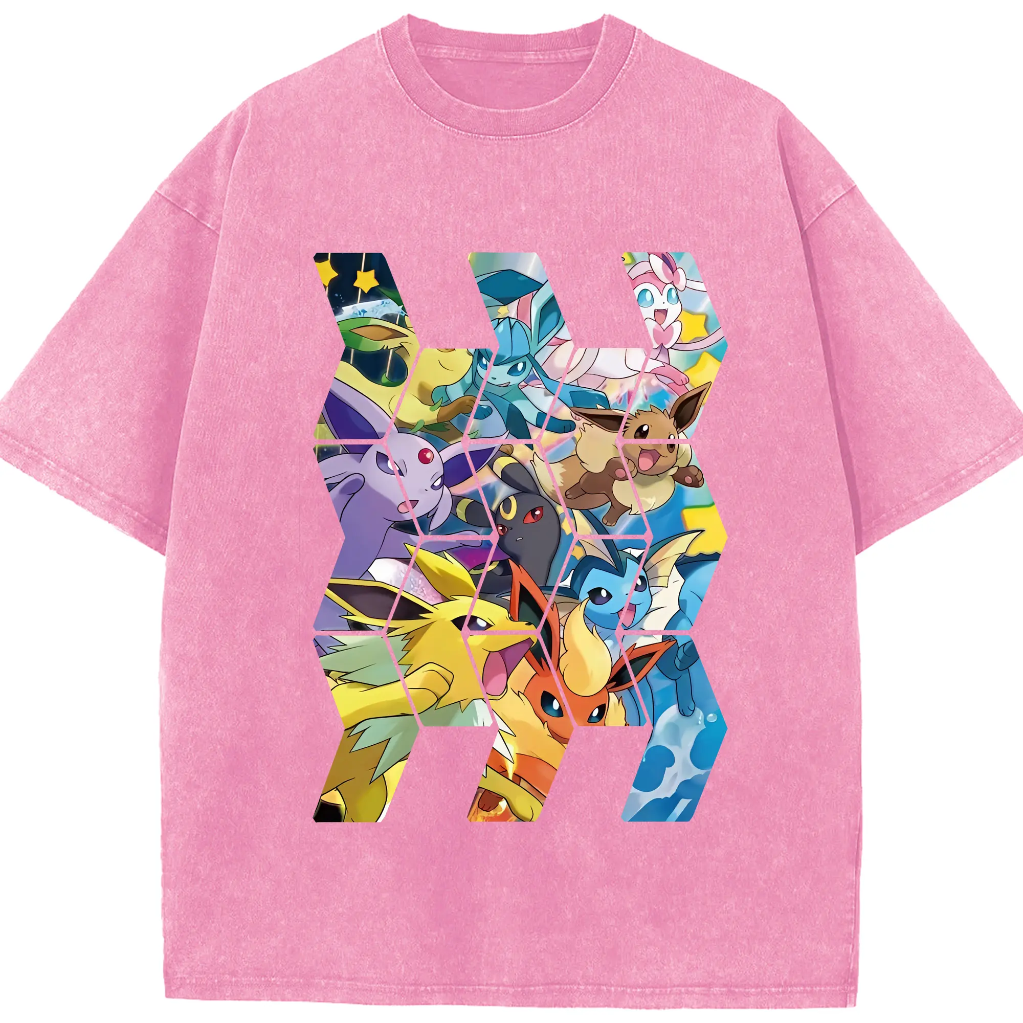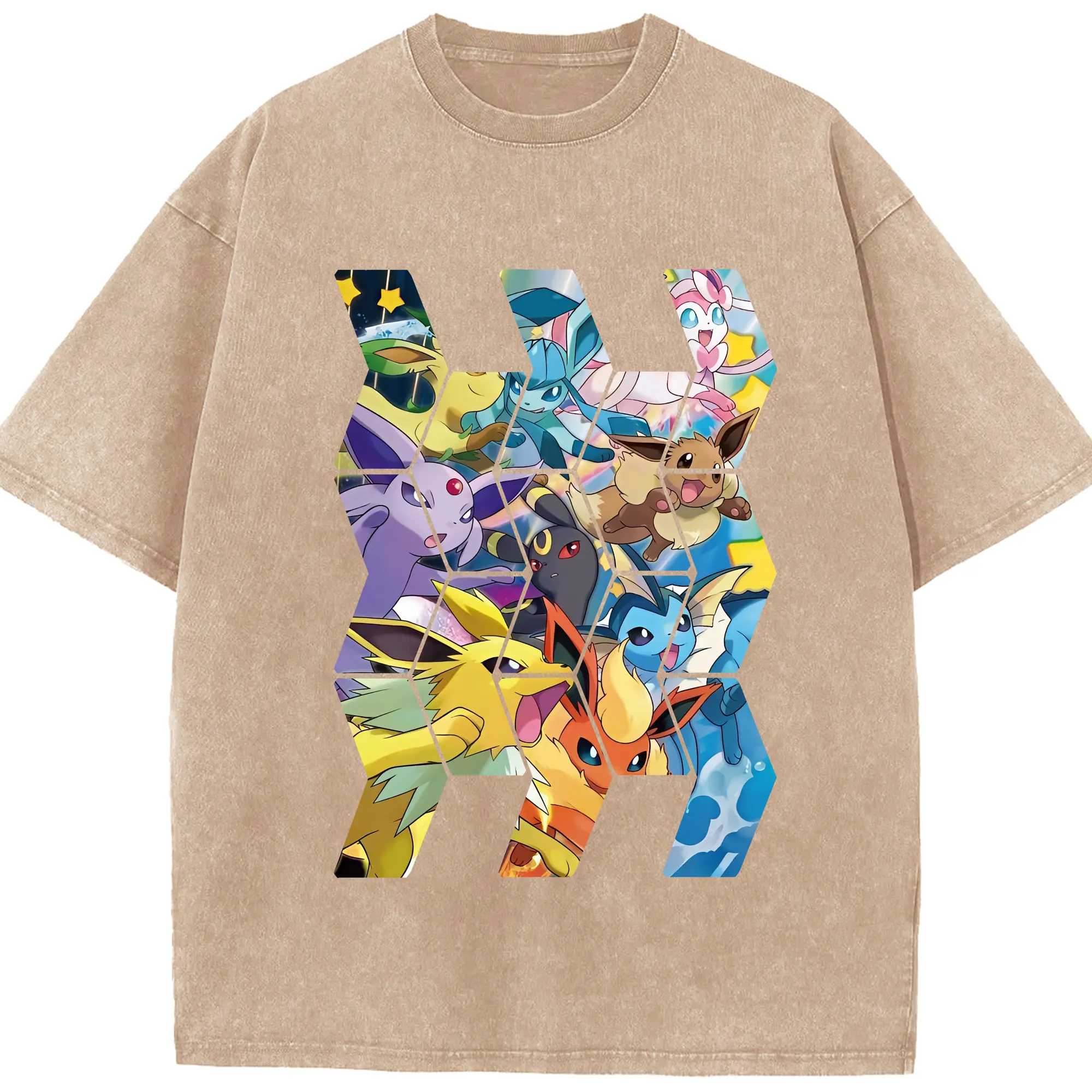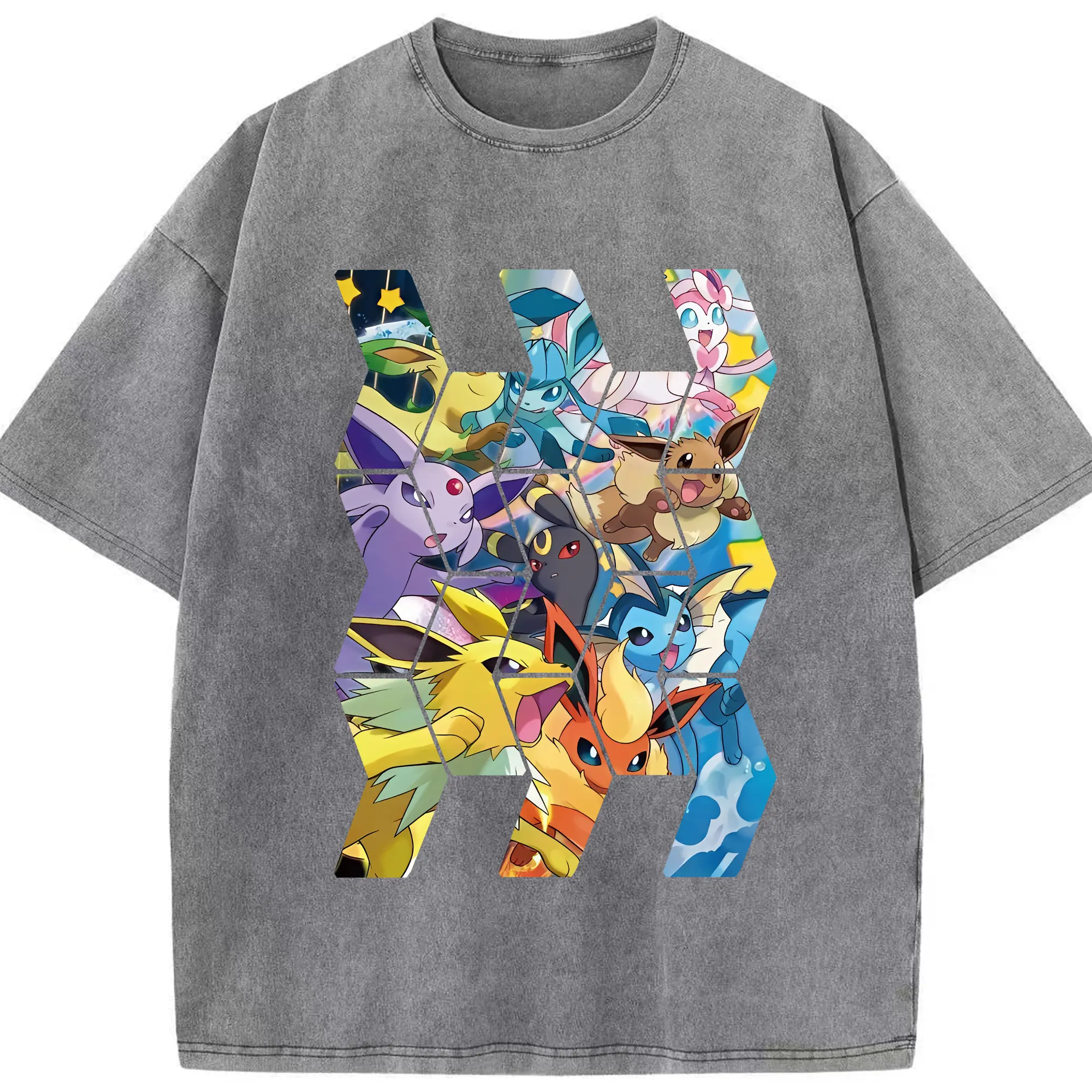ポケモン グッズ,イーブイ - 綿100% ヴィンテージ風 半袖Tシャツ ・ 背面プリント ・ 柔らか肌触り ・ 通気性 快適 ・ スポーツ カジュアル 外出用