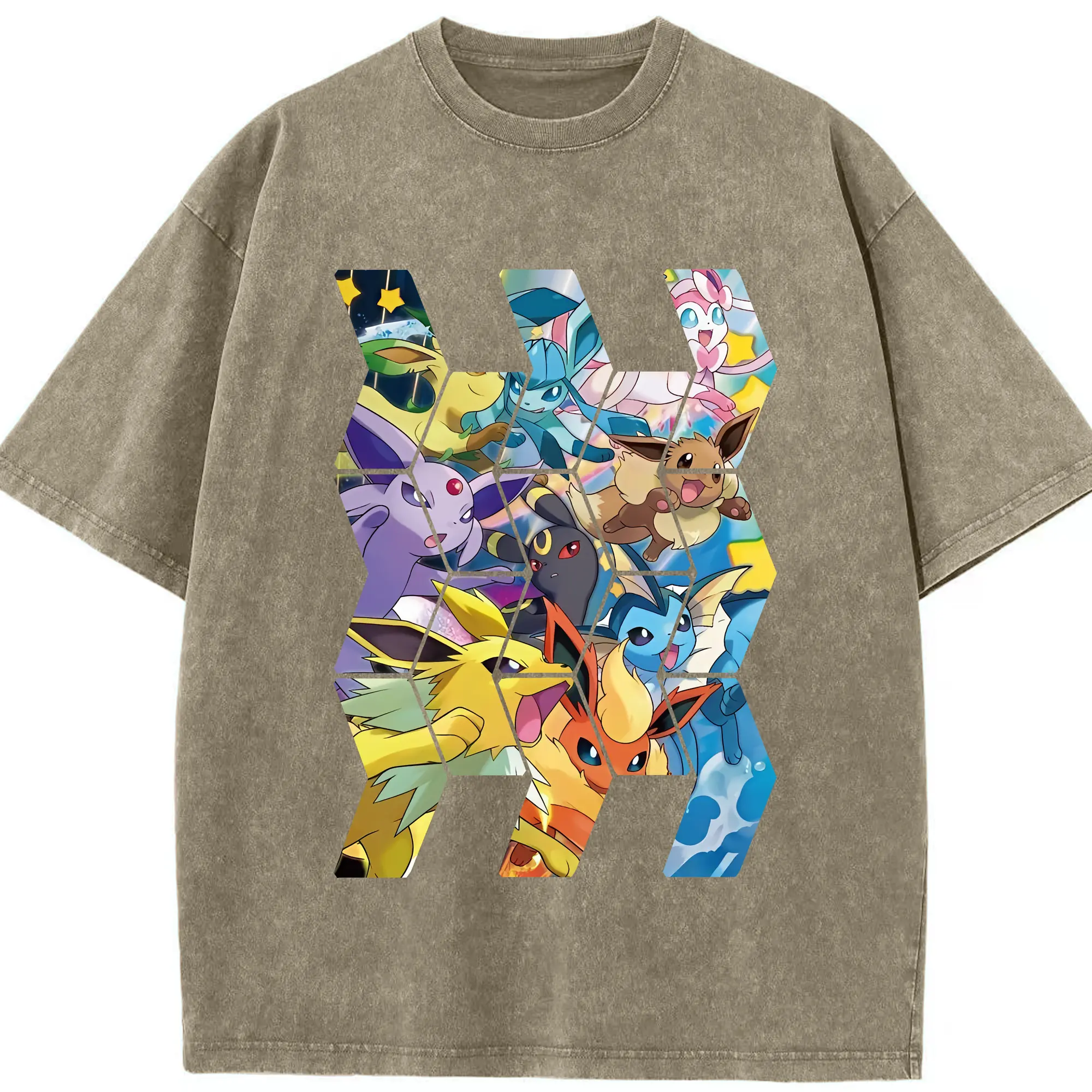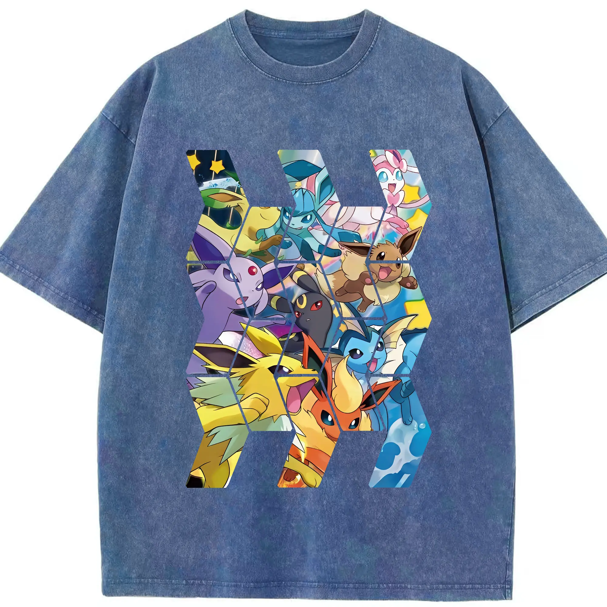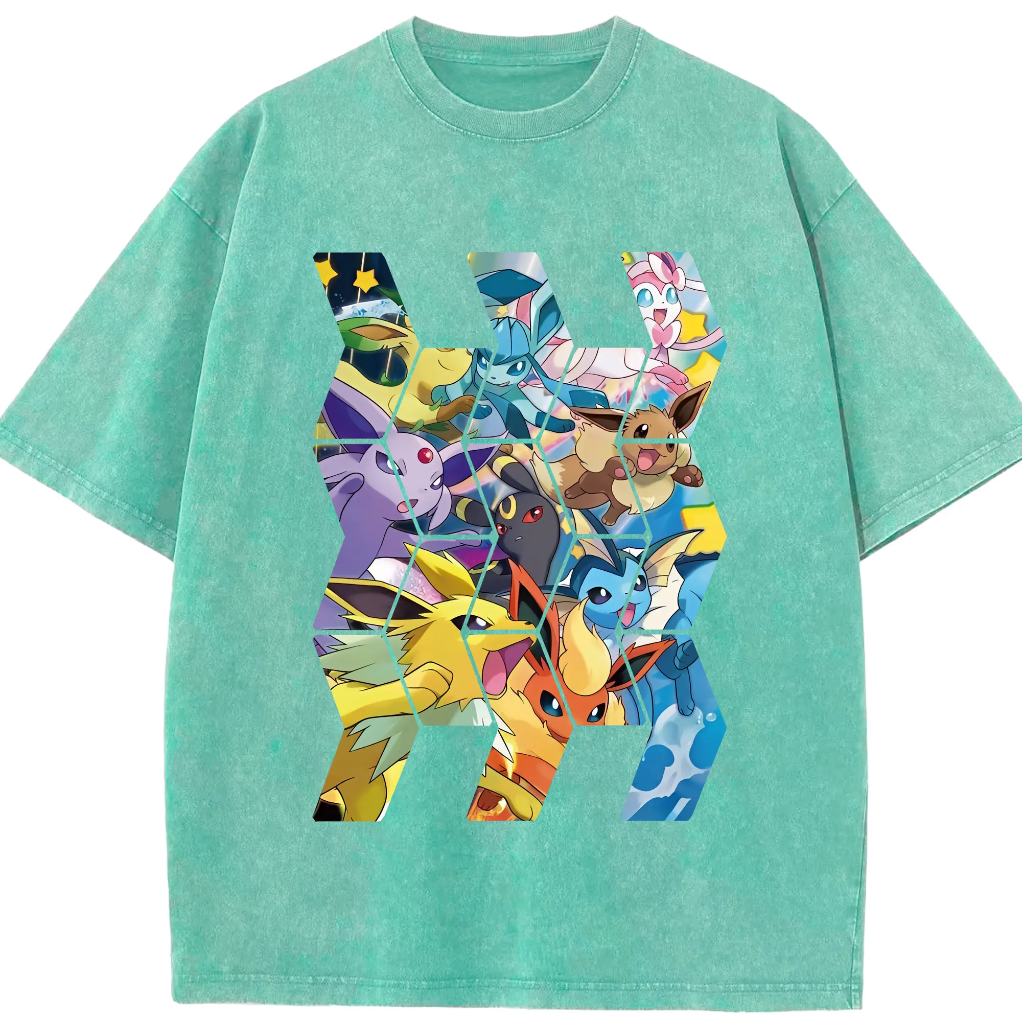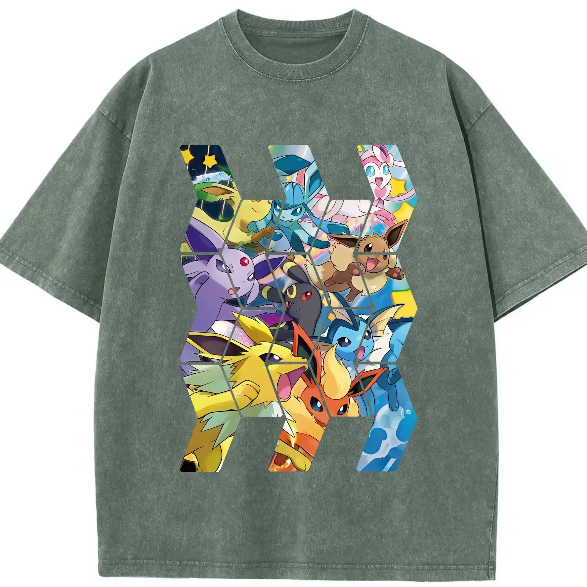 ポケモン グッズ,イーブイ - 綿100% ヴィンテージ風 半袖Tシャツ ・ 背面プリント ・ 柔らか肌触り ・ 通気性 快適 ・ スポーツ カジュアル 外出用