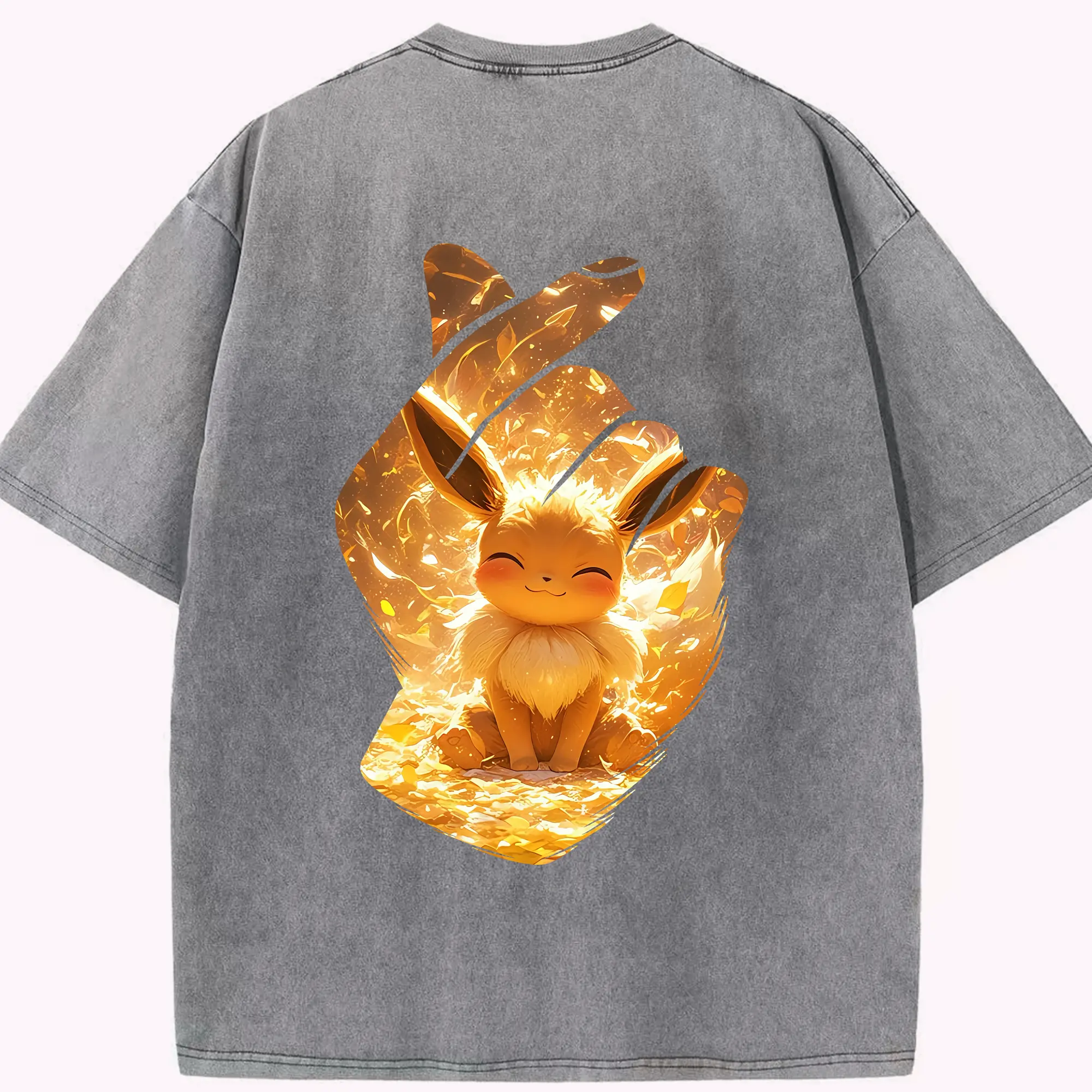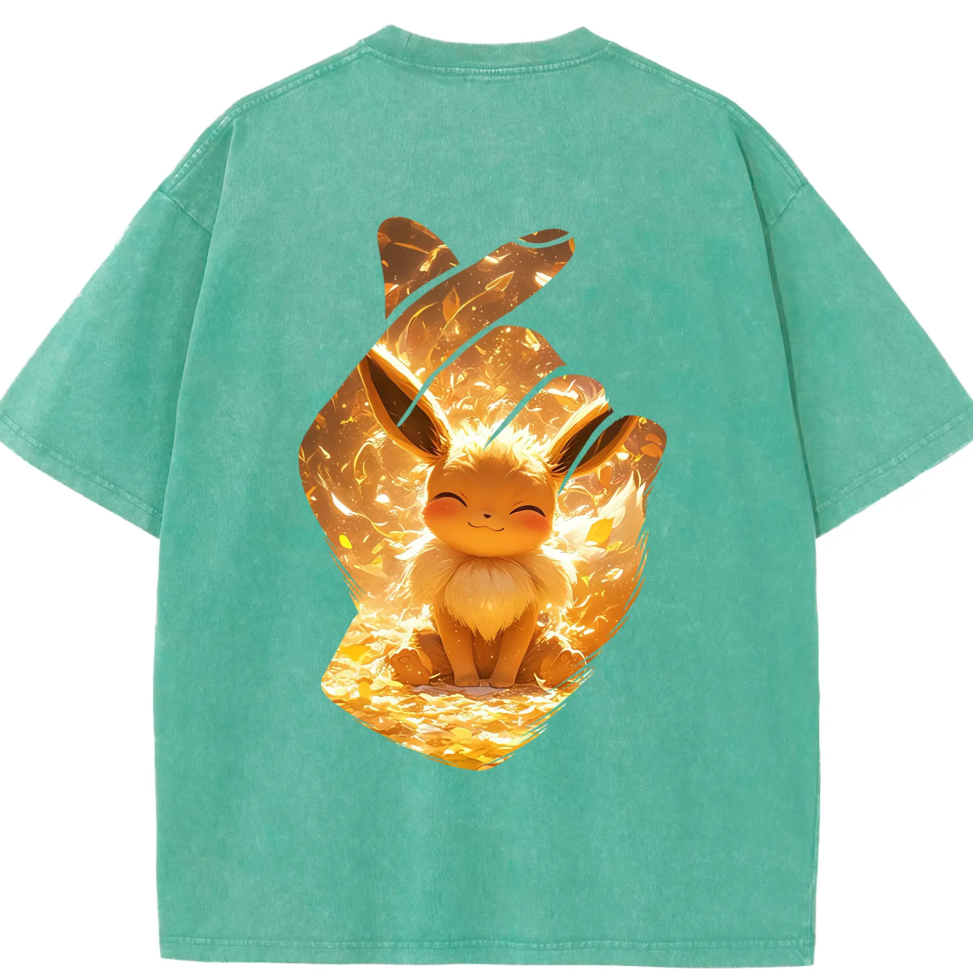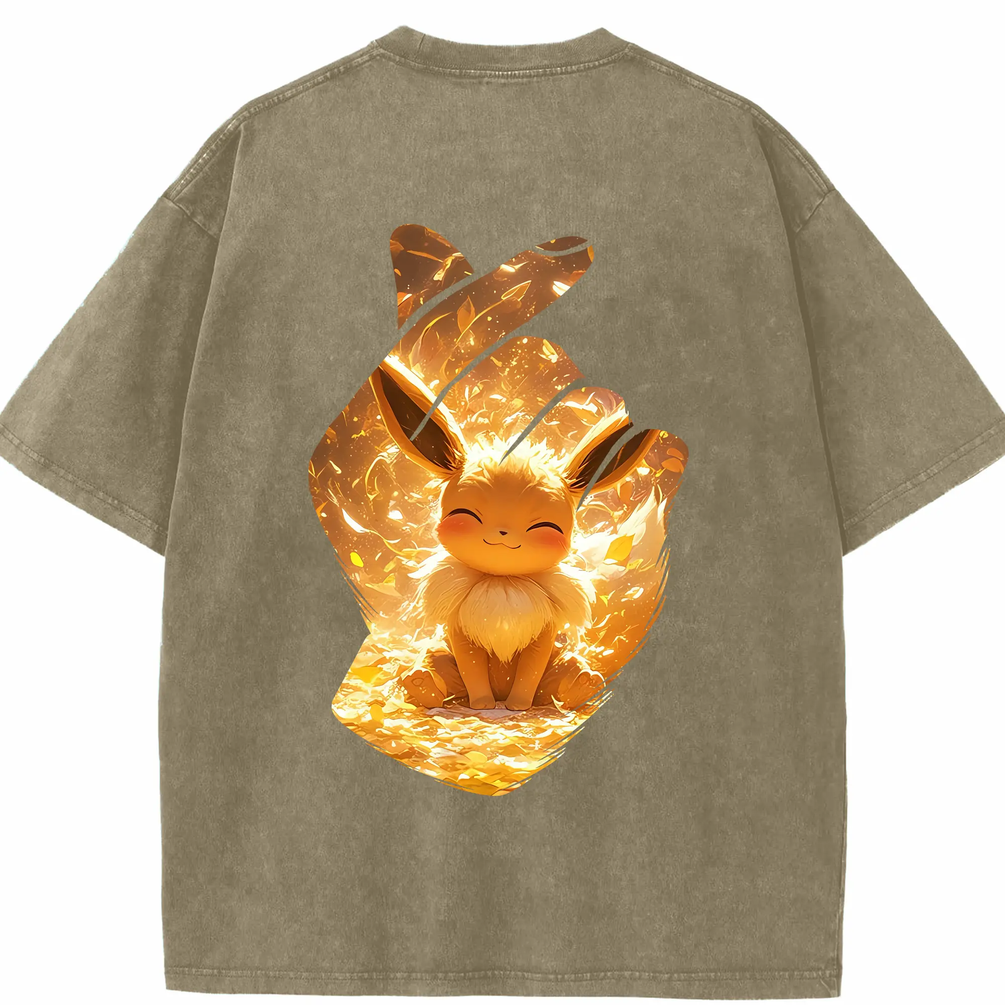 ポケモン グッズ,イーブイ - 綿100% ヴィンテージ風 半袖Tシャツ ・ フロントプリント ・ 柔らか肌触り ・ 通気性 快適 ・ スポーツ カジュアル 外出用