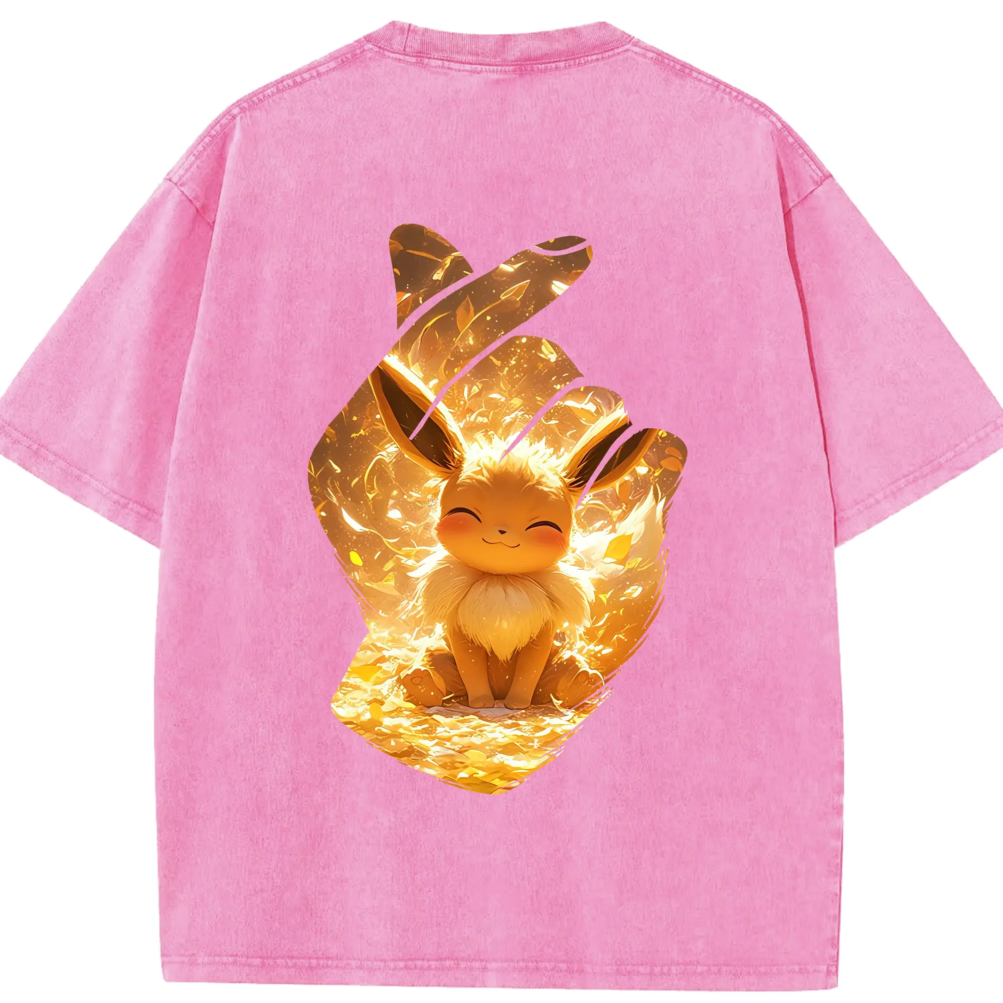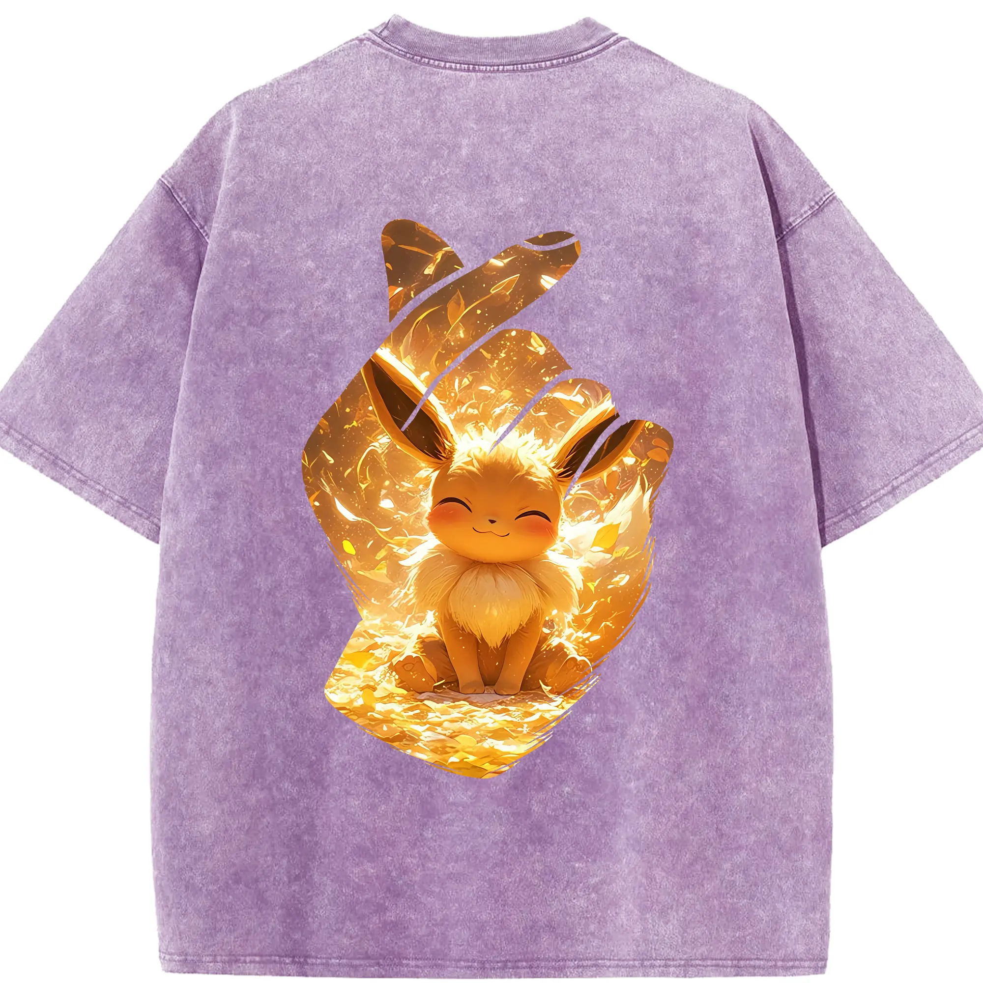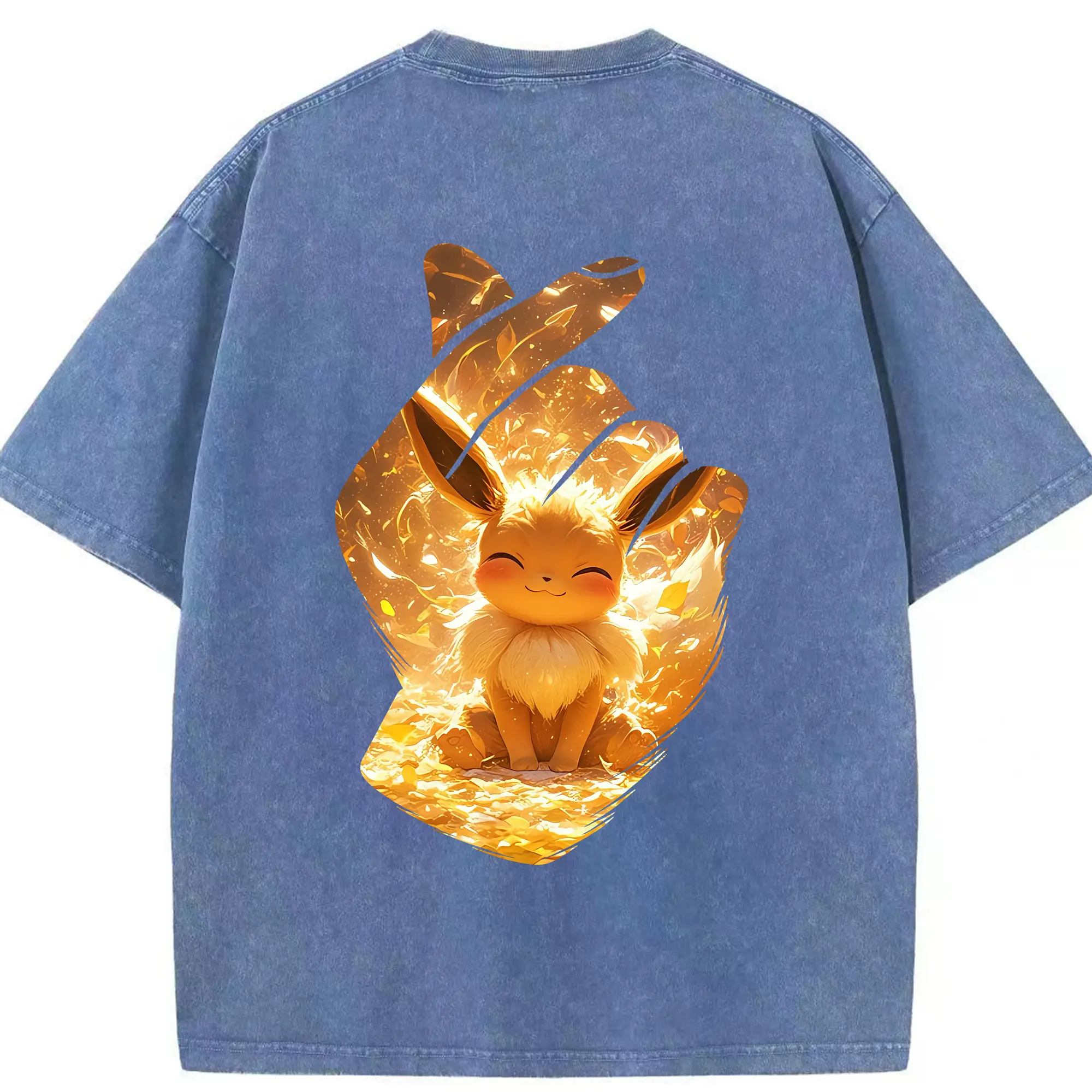ポケモン グッズ,イーブイ - 綿100% ヴィンテージ風 半袖Tシャツ ・ フロントプリント ・ 柔らか肌触り ・ 通気性 快適 ・ スポーツ カジュアル 外出用