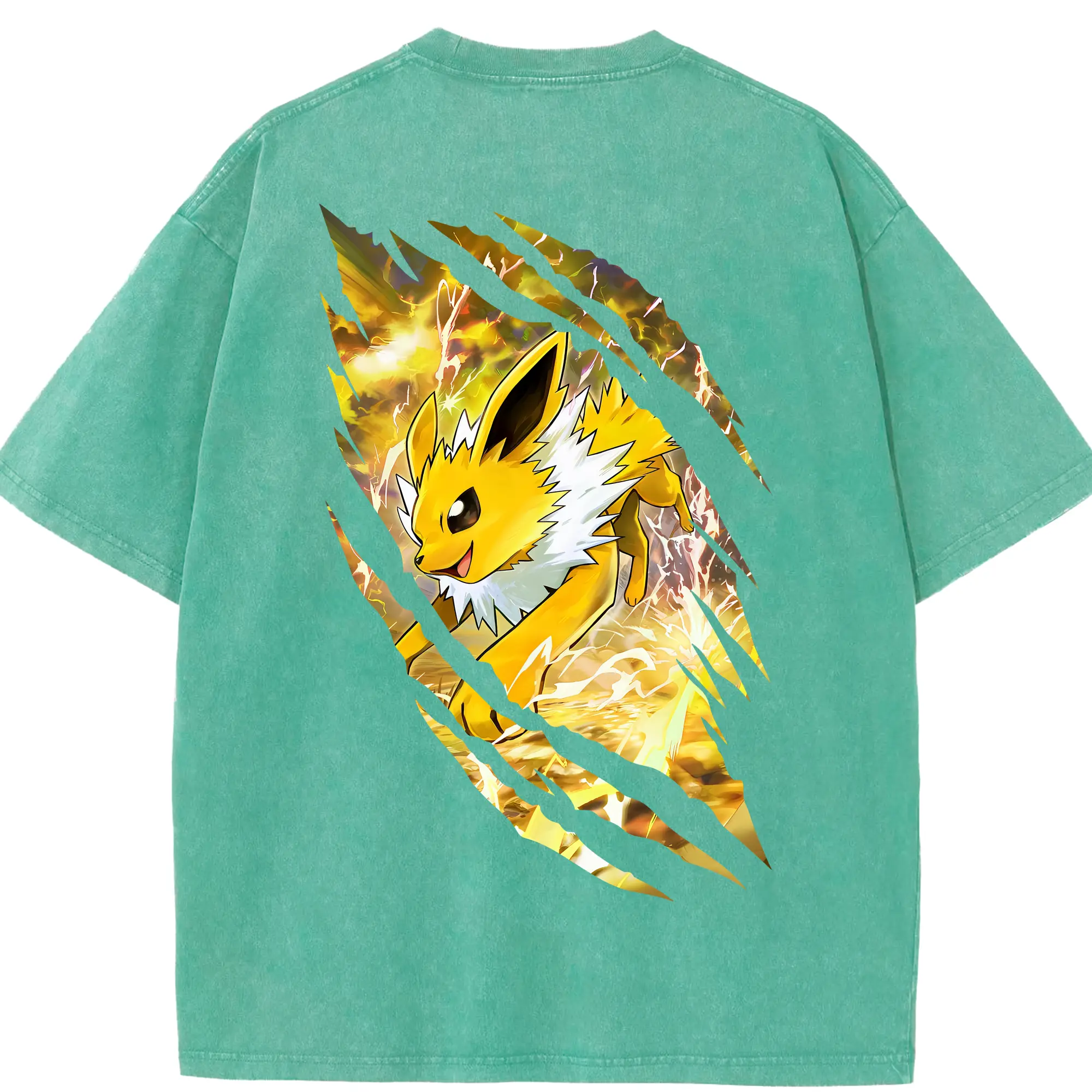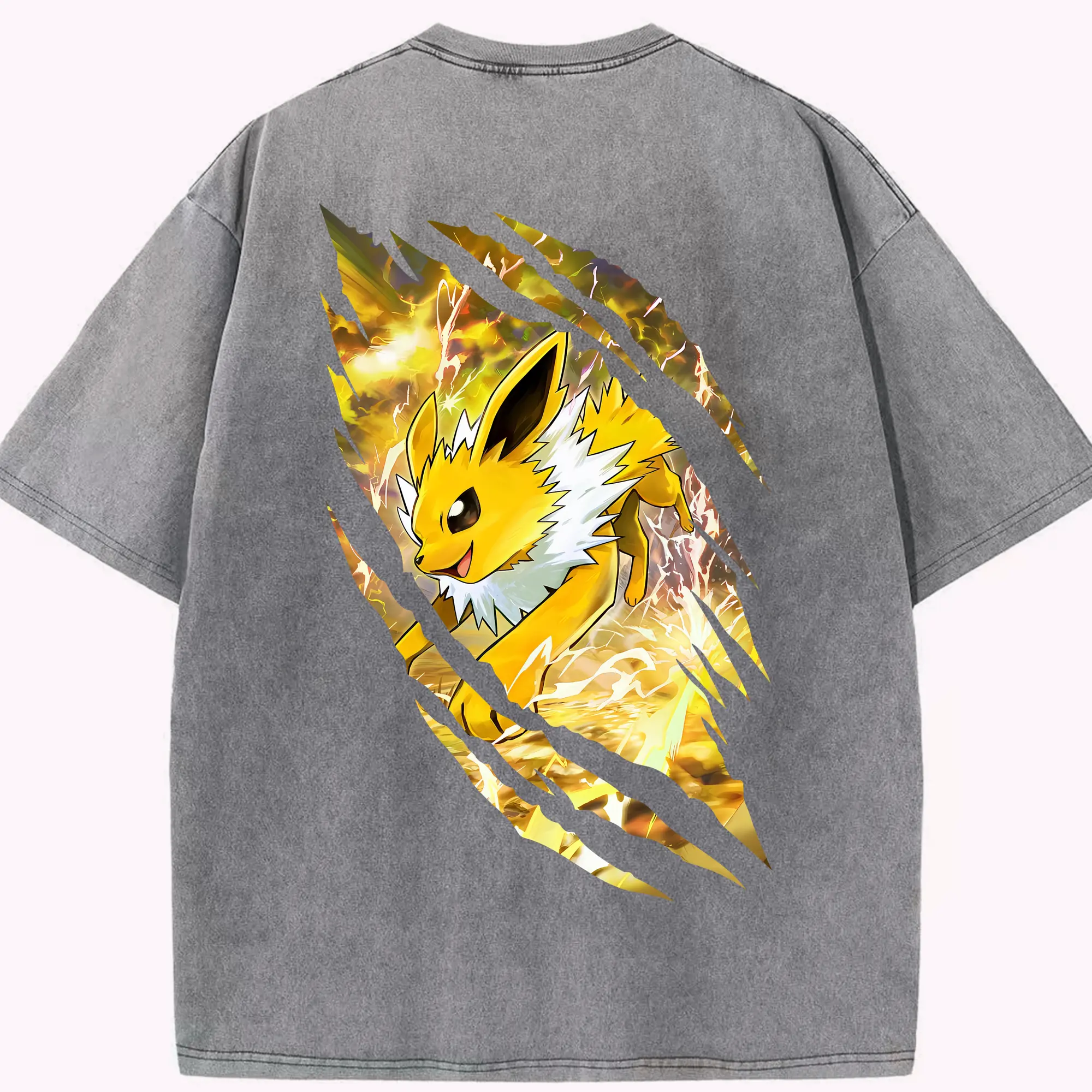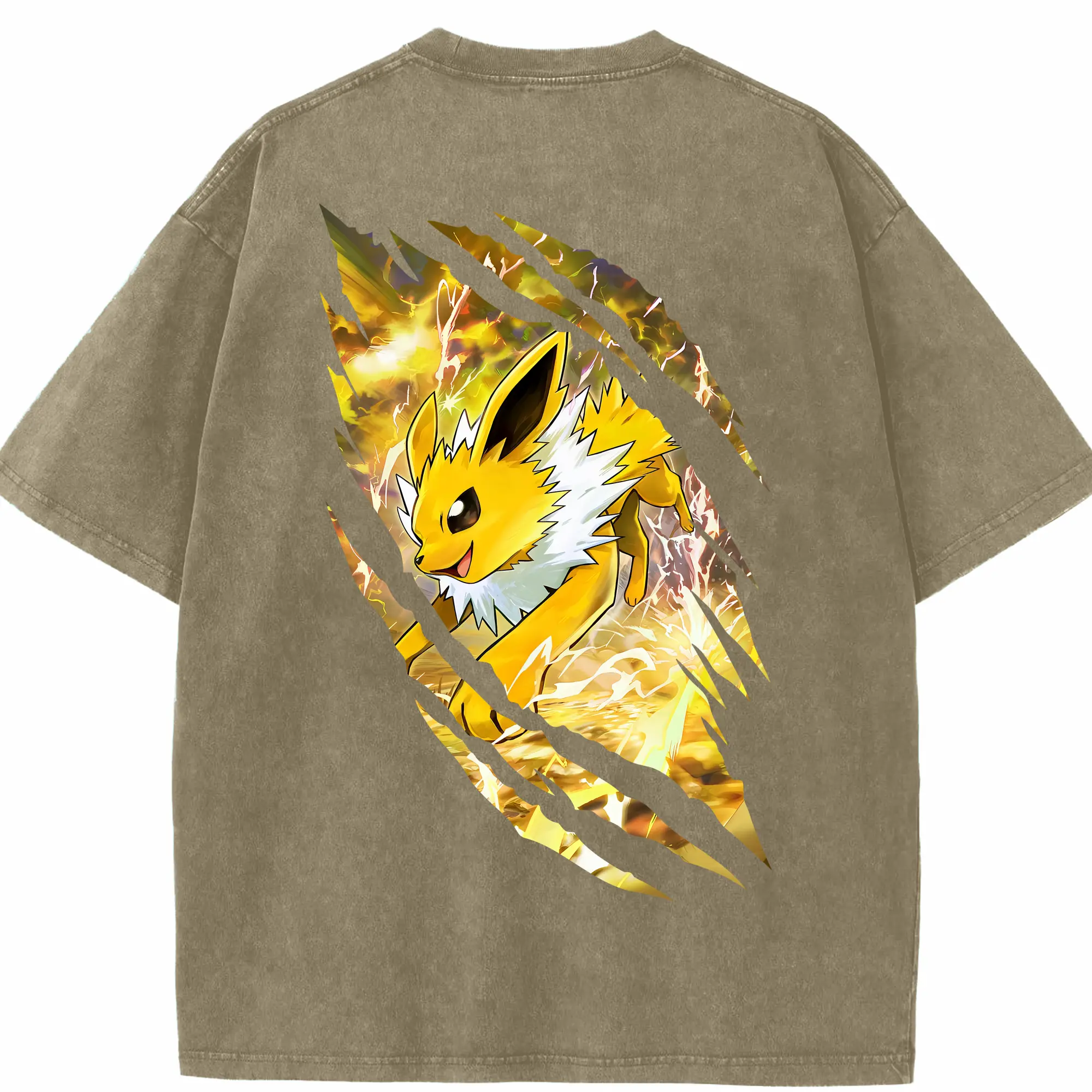 ポケモン グッズ,イーブイ - 綿100% ヴィンテージ風 半袖Tシャツ ・ フロントプリント ・ 柔らか肌触り ・ 通気性 快適 ・ スポーツ カジュアル 外出用