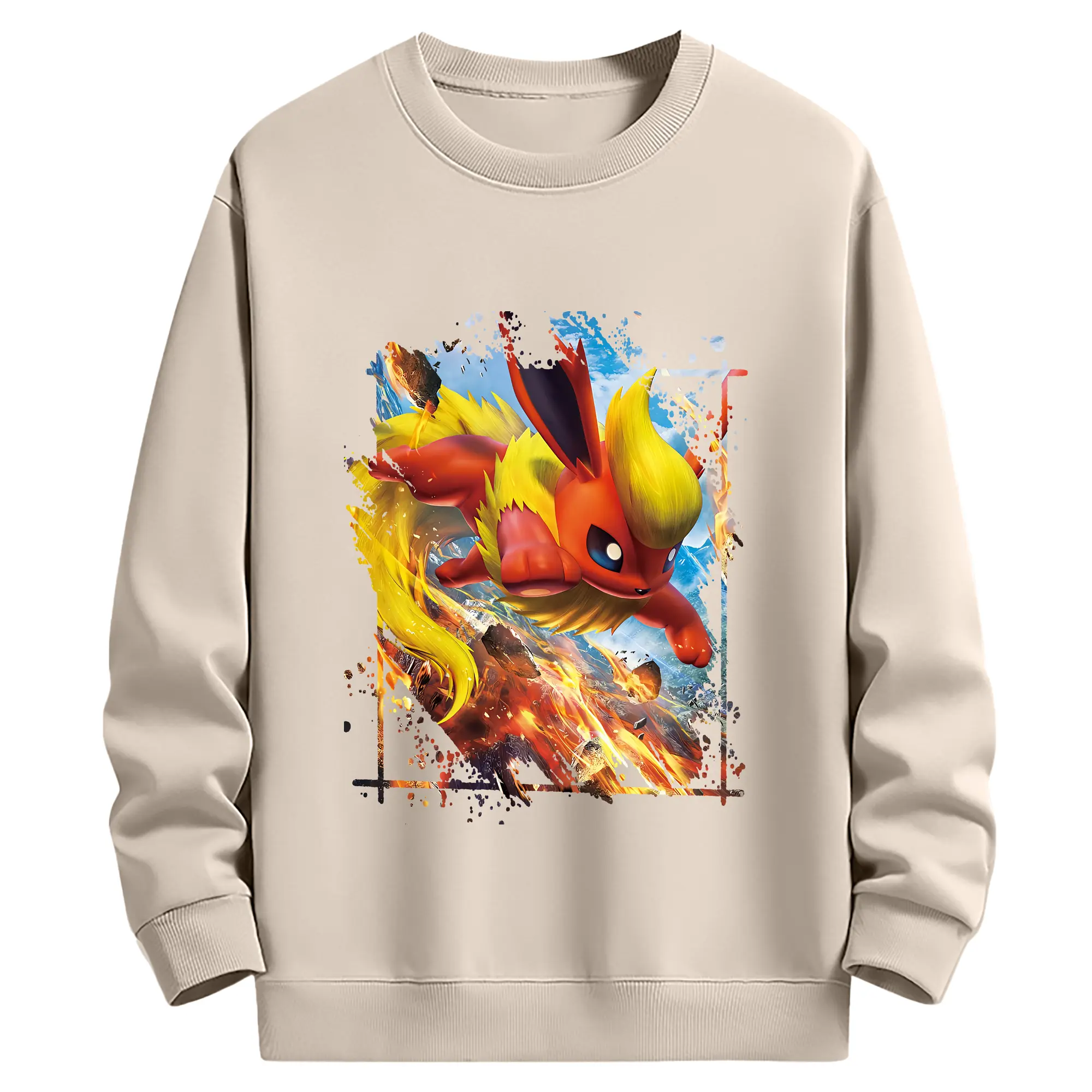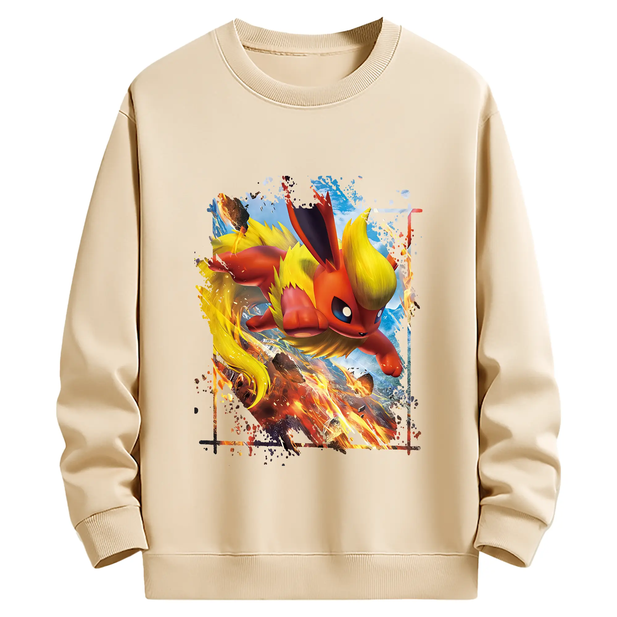 ポケモン グッズ,イーブイ - 薄手 クルーネック スウェット 裏毛260g · ポリエステル 春秋向け カジュアル 男女兼用 · トレーナー デイリー スポーツ 散歩に最適