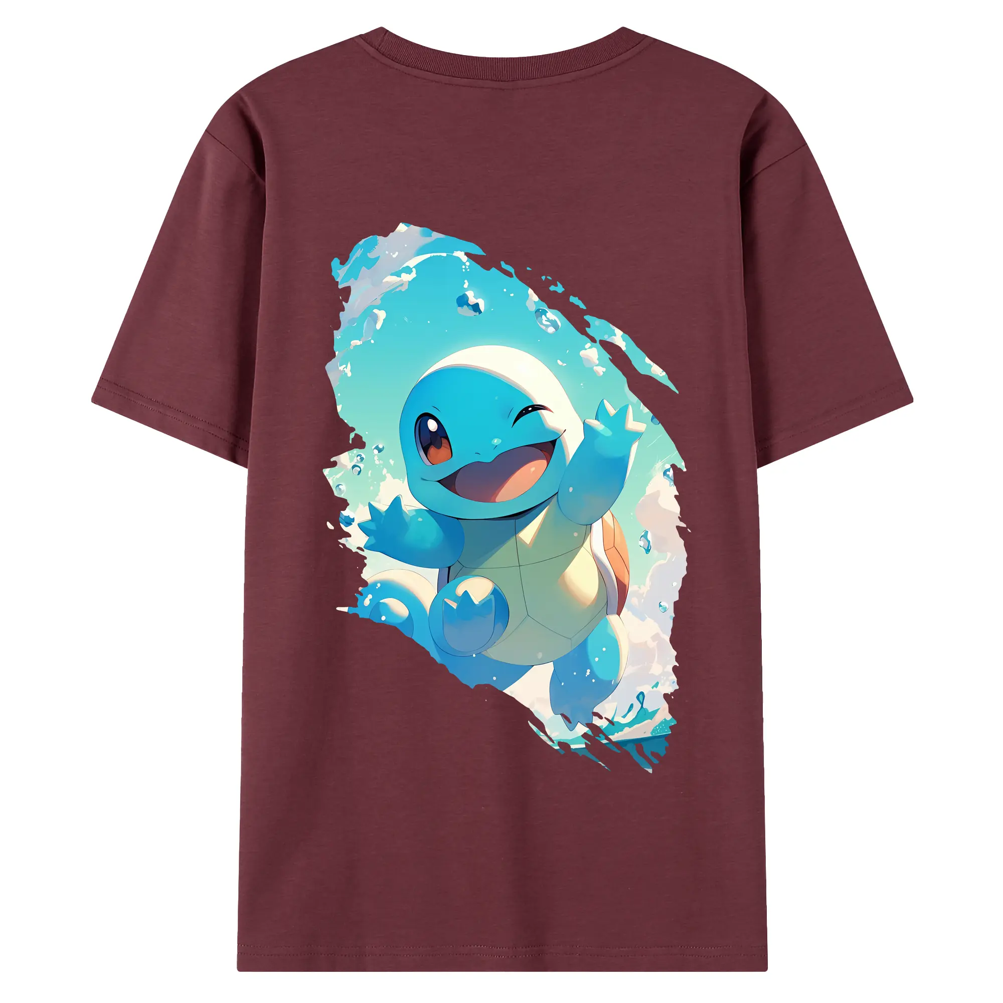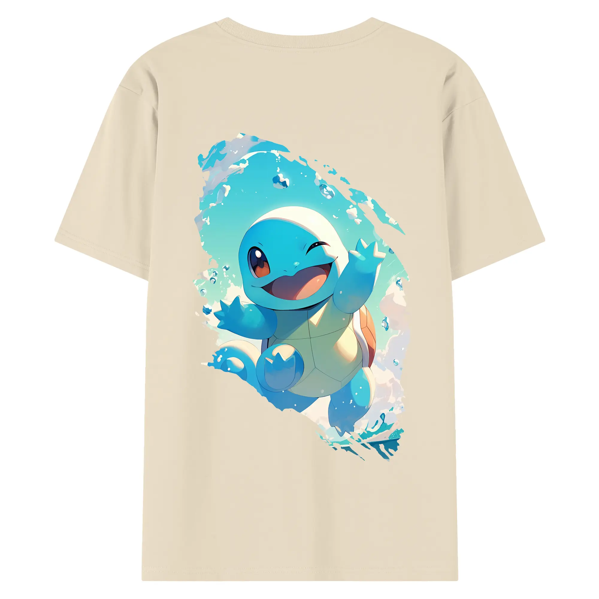 ポケモン グッズ,ゼニガメ - 綿100% ヴィンテージ風 半袖Tシャツ ・ 背面プリント ・ 柔らか肌触り ・ 通気性 快適 ・ スポーツ カジュアル 外出用