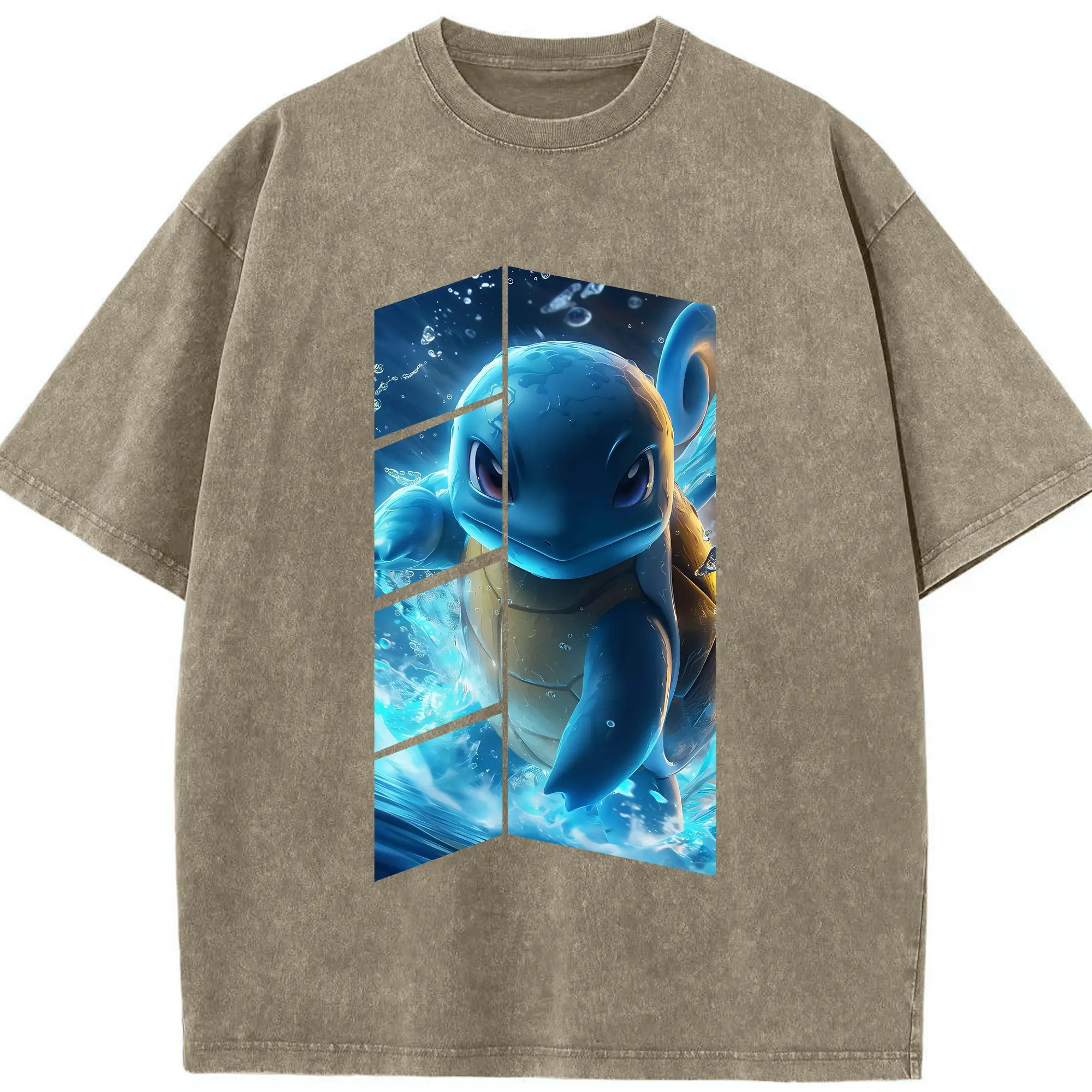 ポケモン グッズ,ゼニガメ - 綿100% ヴィンテージ風 半袖Tシャツ ・ 背面プリント ・ 柔らか肌触り ・ 通気性 快適 ・ スポーツ カジュアル 外出用