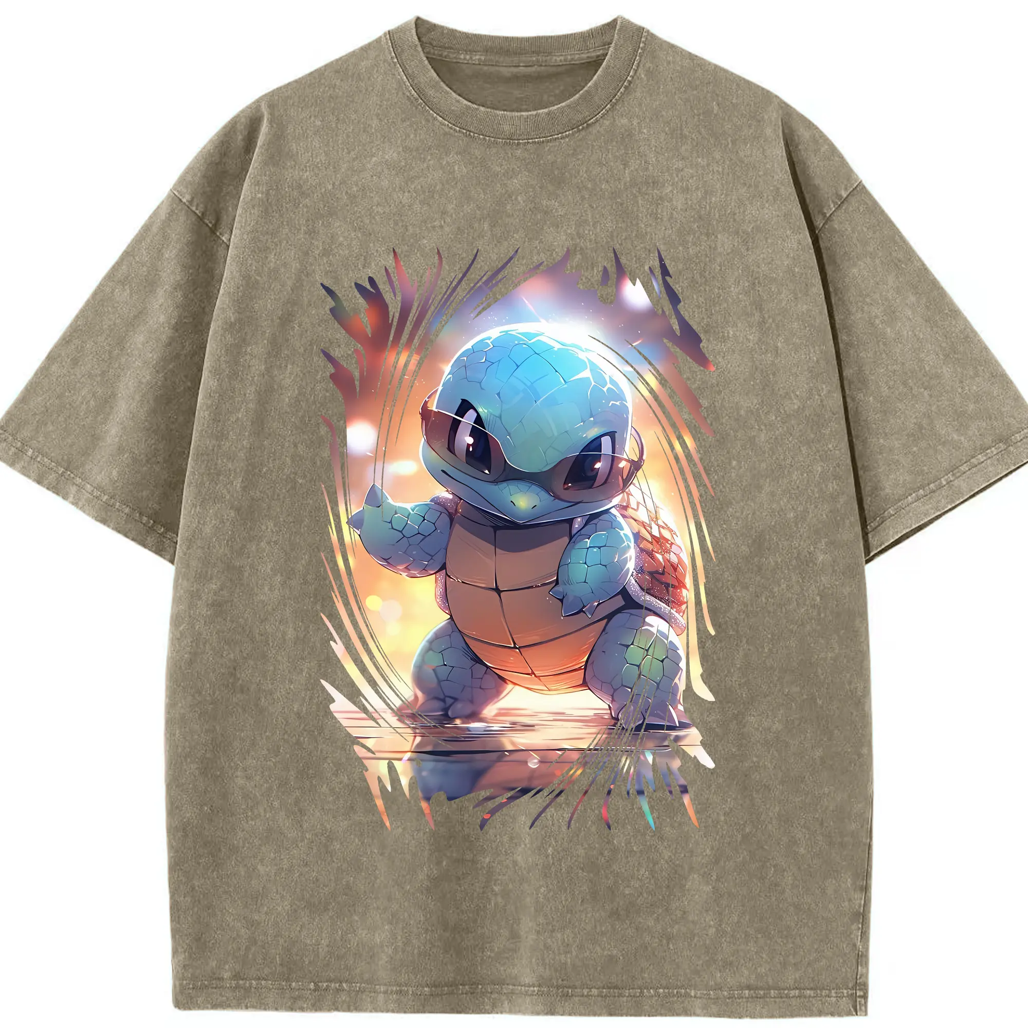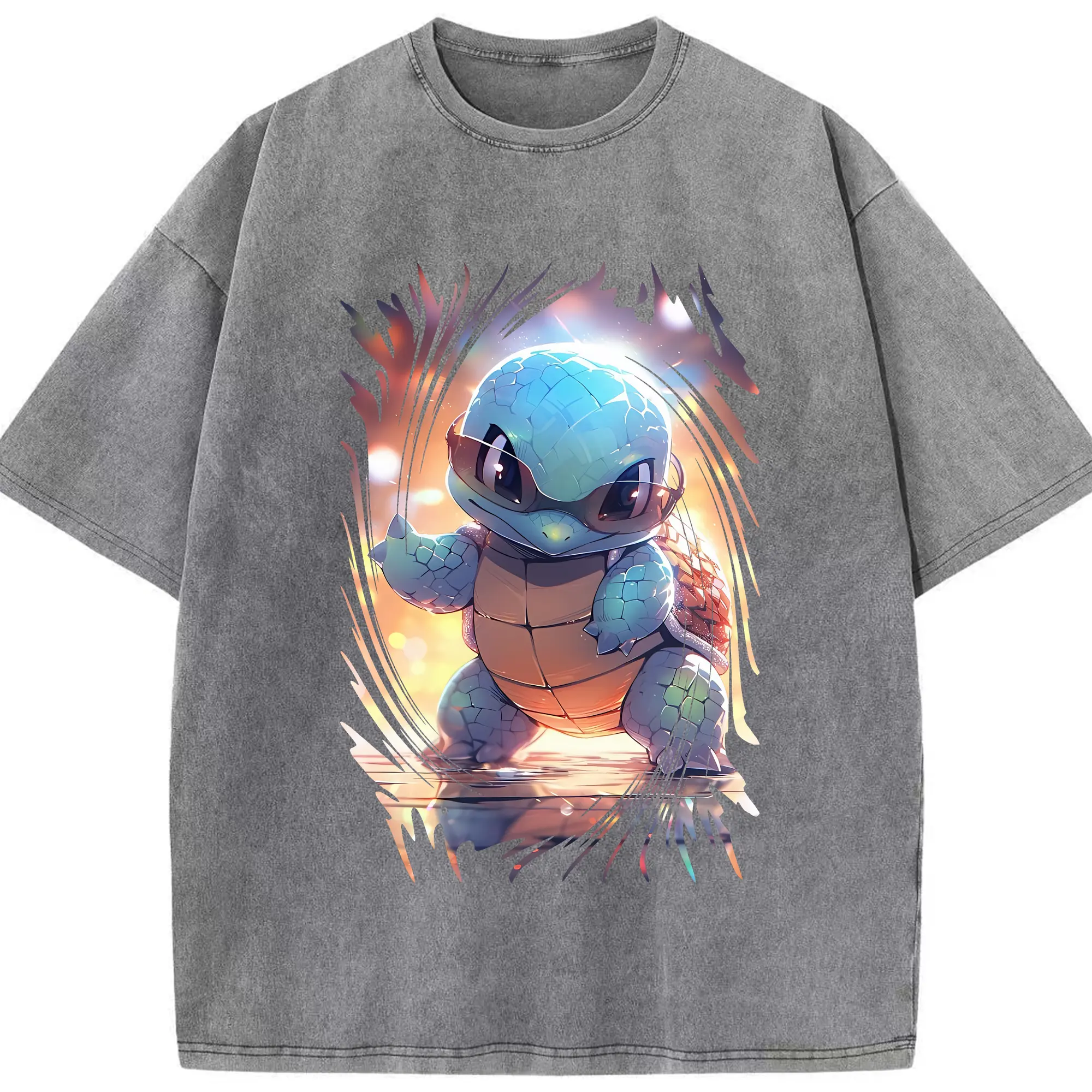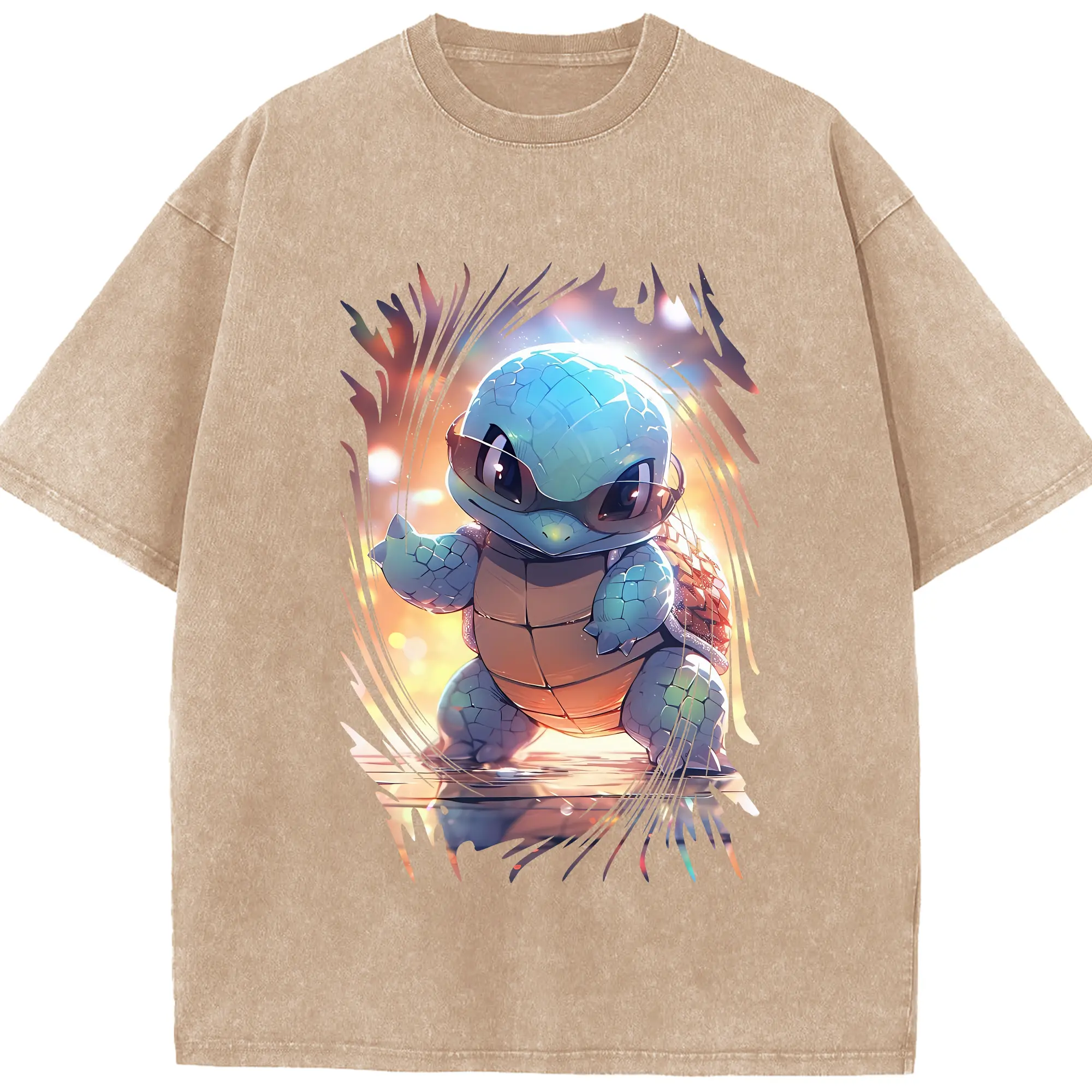ポケモン グッズ,ゼニガメ - 綿100% ヴィンテージ風 半袖Tシャツ ・ 背面プリント ・ 柔らか肌触り ・ 通気性 快適 ・ スポーツ カジュアル 外出用
