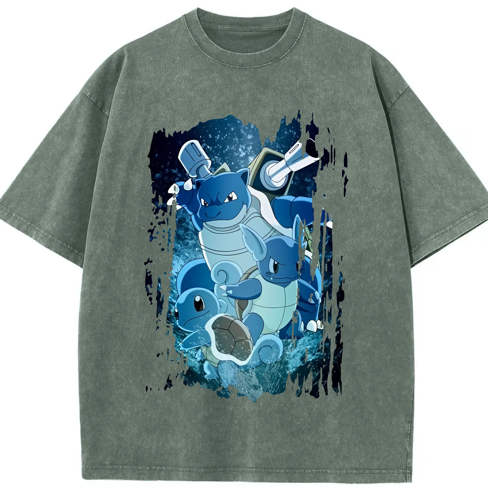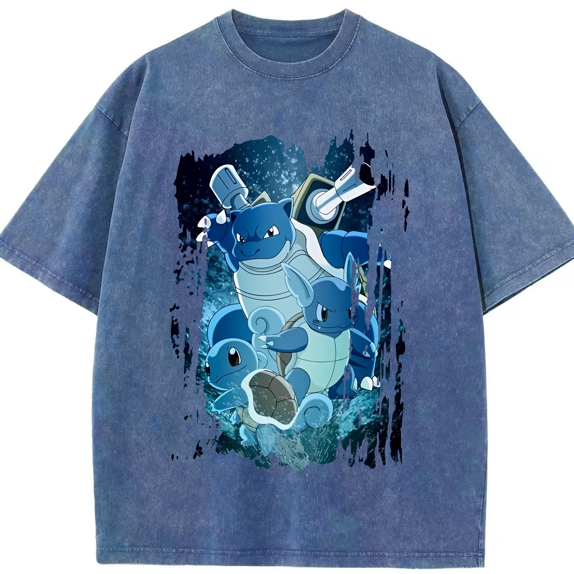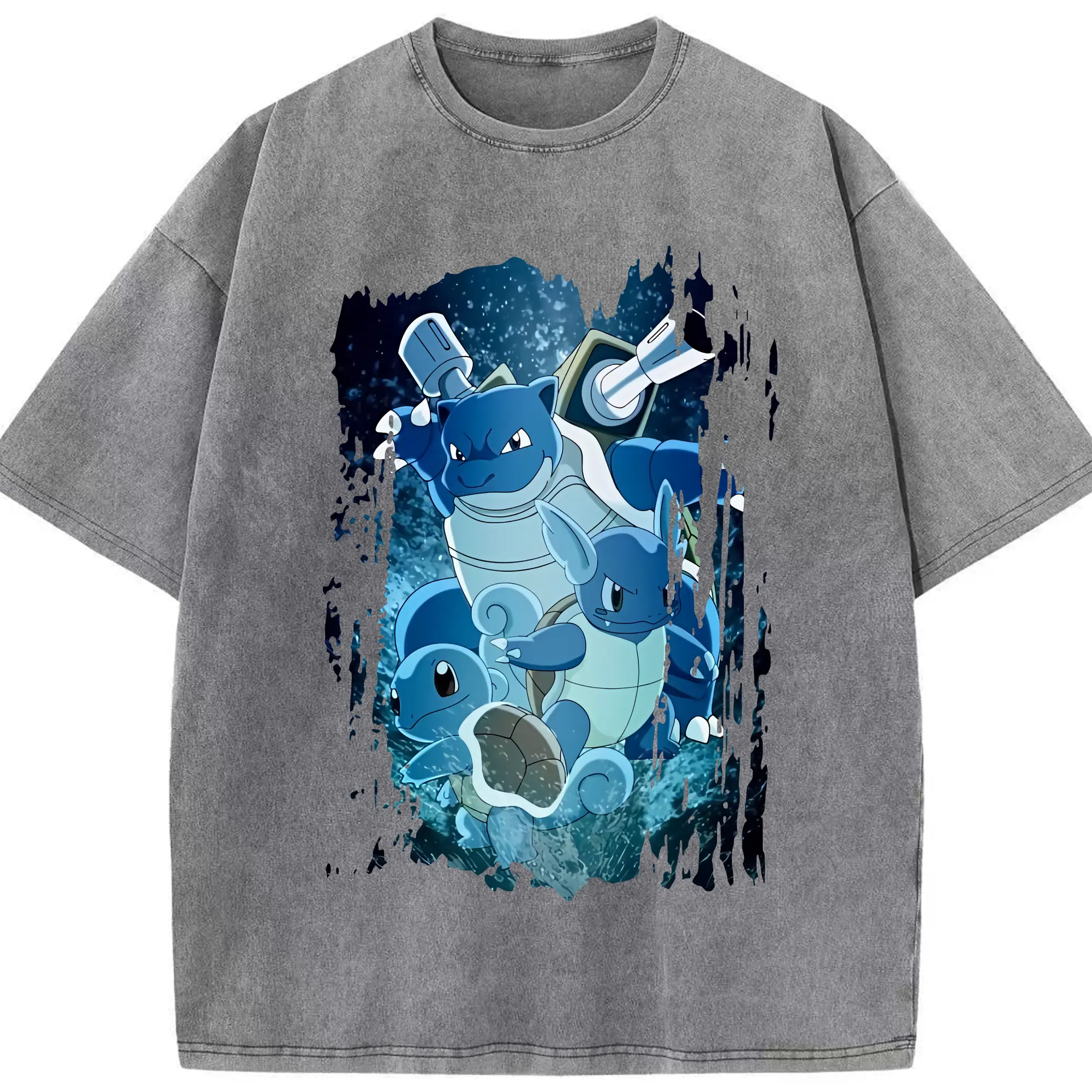 ポケモン グッズ,ゼニガメ - 綿100% ヴィンテージ風 半袖Tシャツ ・ 背面プリント ・ 柔らか肌触り ・ 通気性 快適 ・ スポーツ カジュアル 外出用