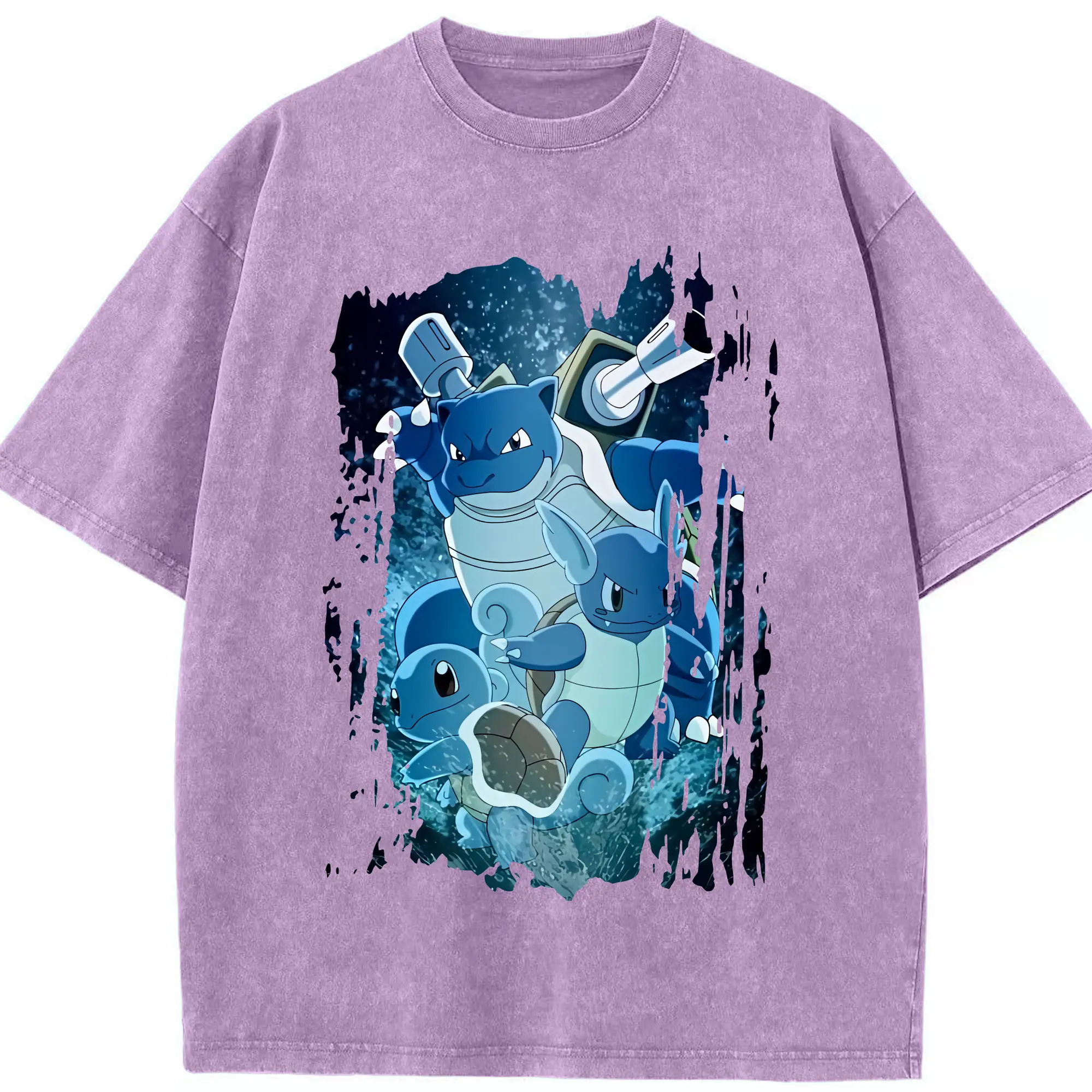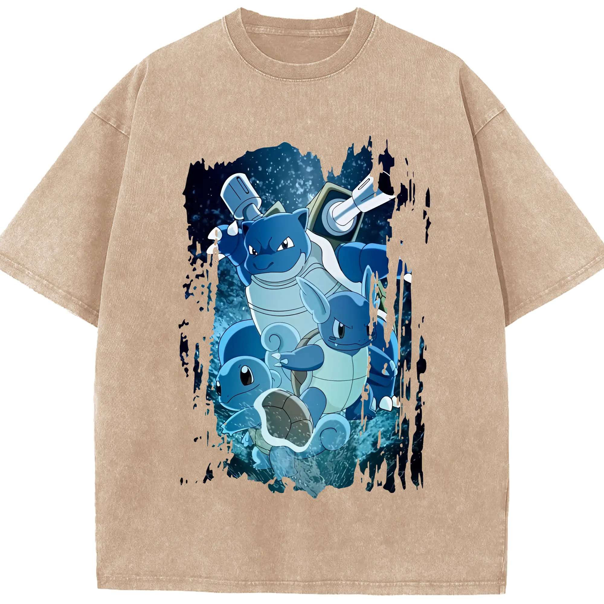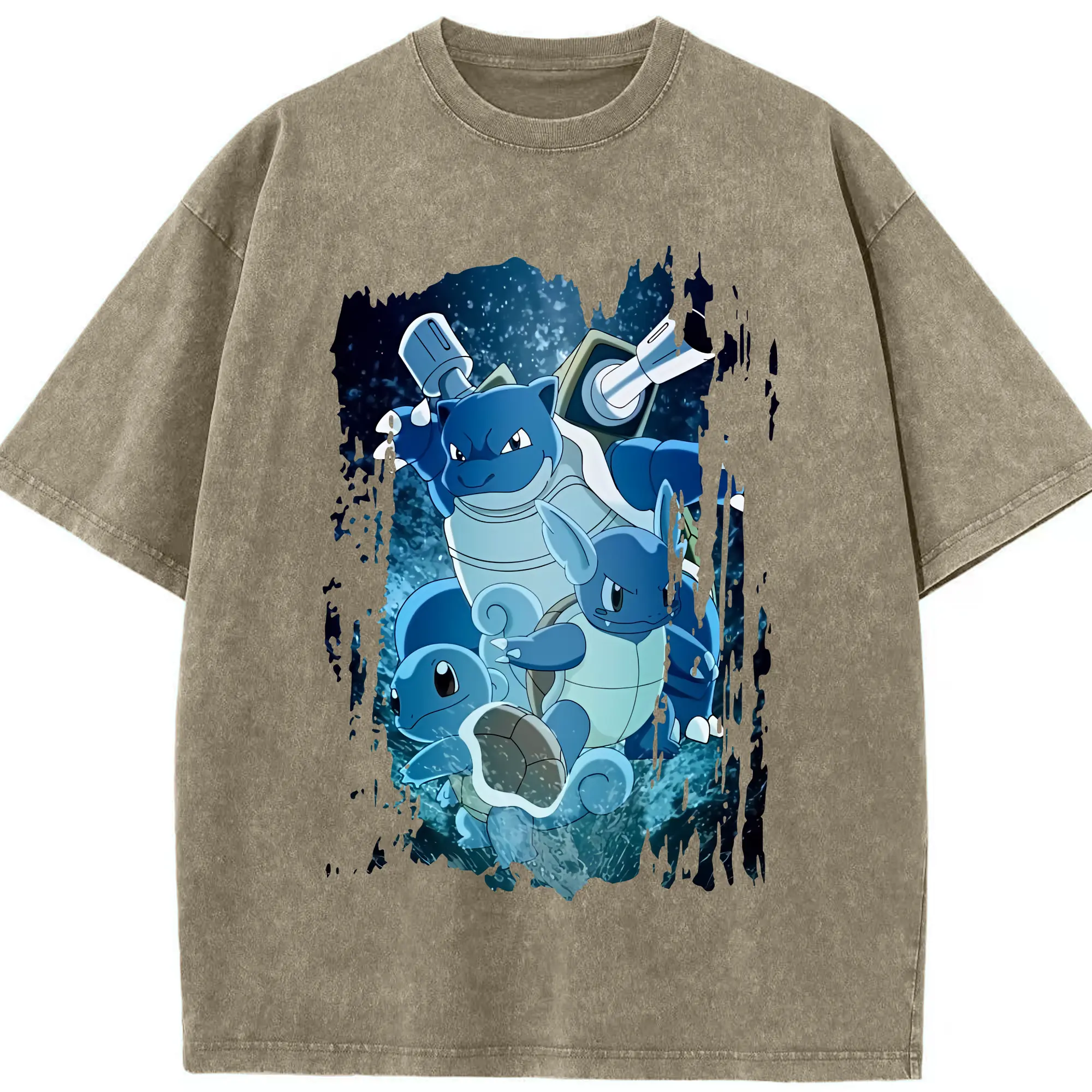 ポケモン グッズ,ゼニガメ - 綿100% ヴィンテージ風 半袖Tシャツ ・ 背面プリント ・ 柔らか肌触り ・ 通気性 快適 ・ スポーツ カジュアル 外出用