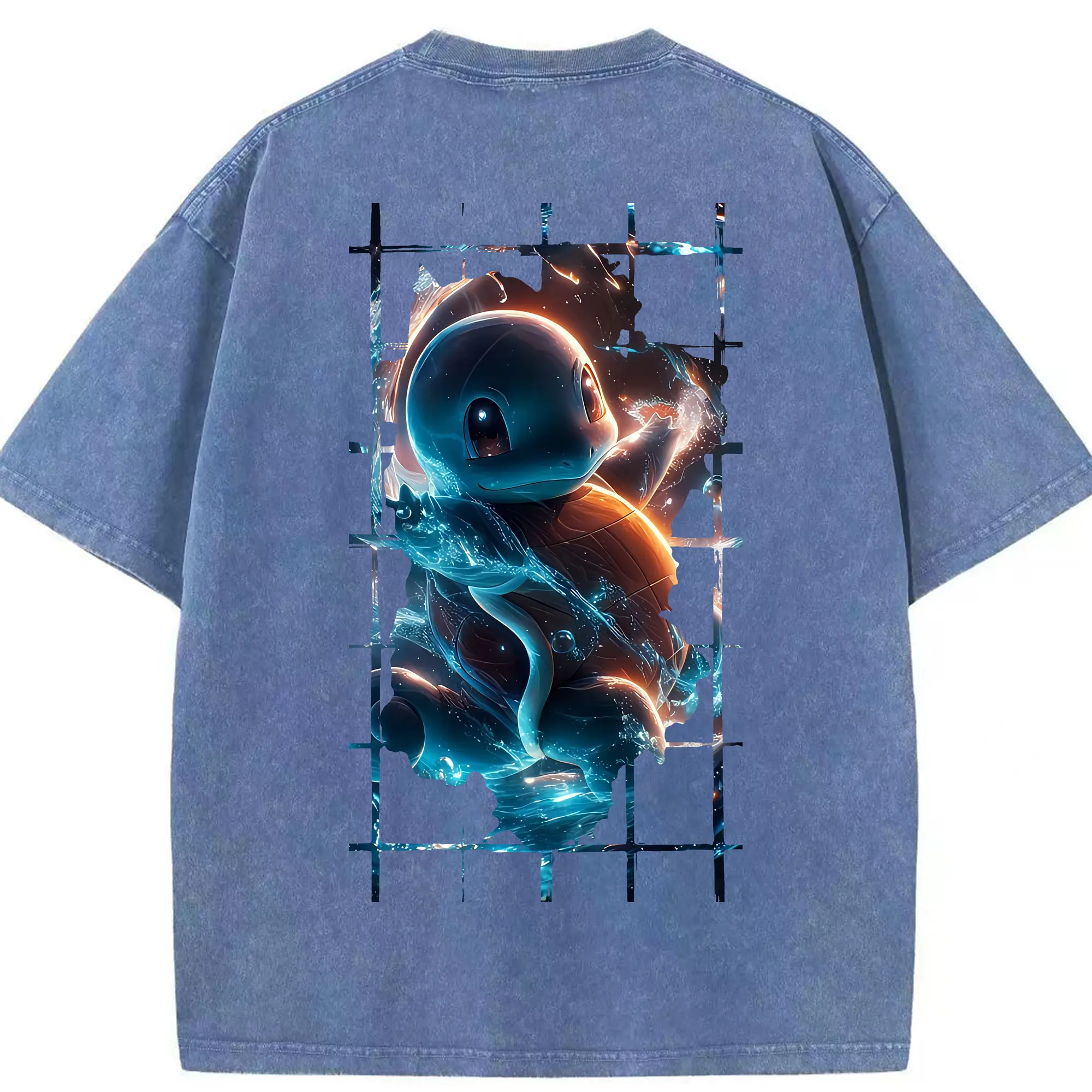 ポケモン グッズ,ゼニガメ - 綿100% ヴィンテージ風 半袖Tシャツ ・ フロントプリント ・ 柔らか肌触り ・ 通気性 快適 ・ スポーツ カジュアル 外出用
