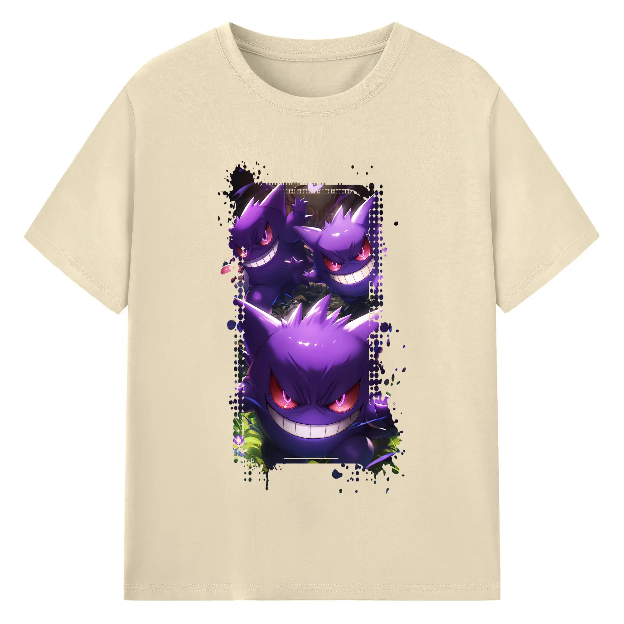 ポケモン グッズ,ゲンガー - 綿100% ヴィンテージ風 半袖Tシャツ ・ フロントプリント ・ 柔らか肌触り ・ 通気性 快適 ・ スポーツ カジュアル 外出用