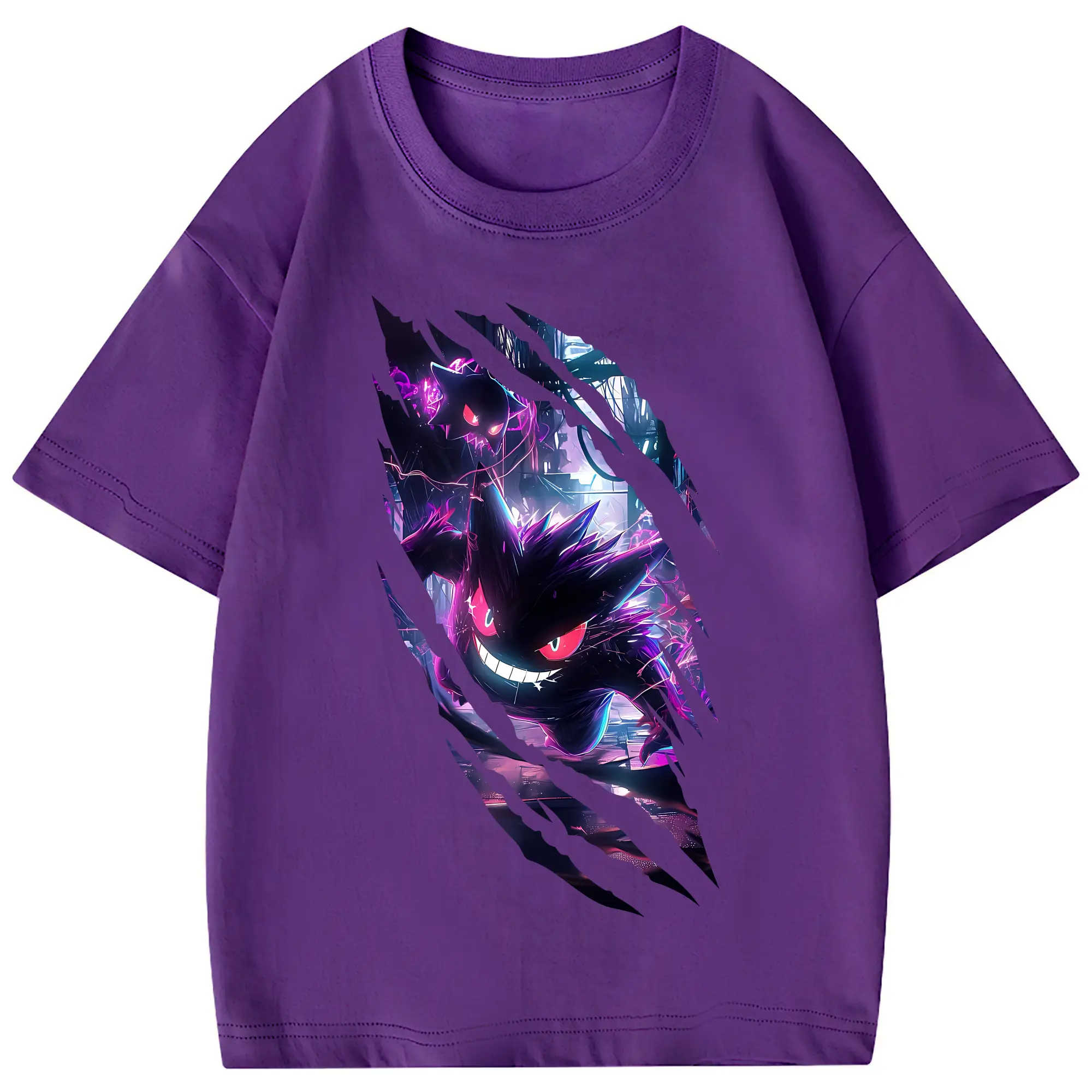 ポケモン グッズ,ゲンガー - 綿100% 半袖Tシャツ ・ フロントプリント ・ 快適 通気性 ・ 日常使い 散歩 スポーツ用