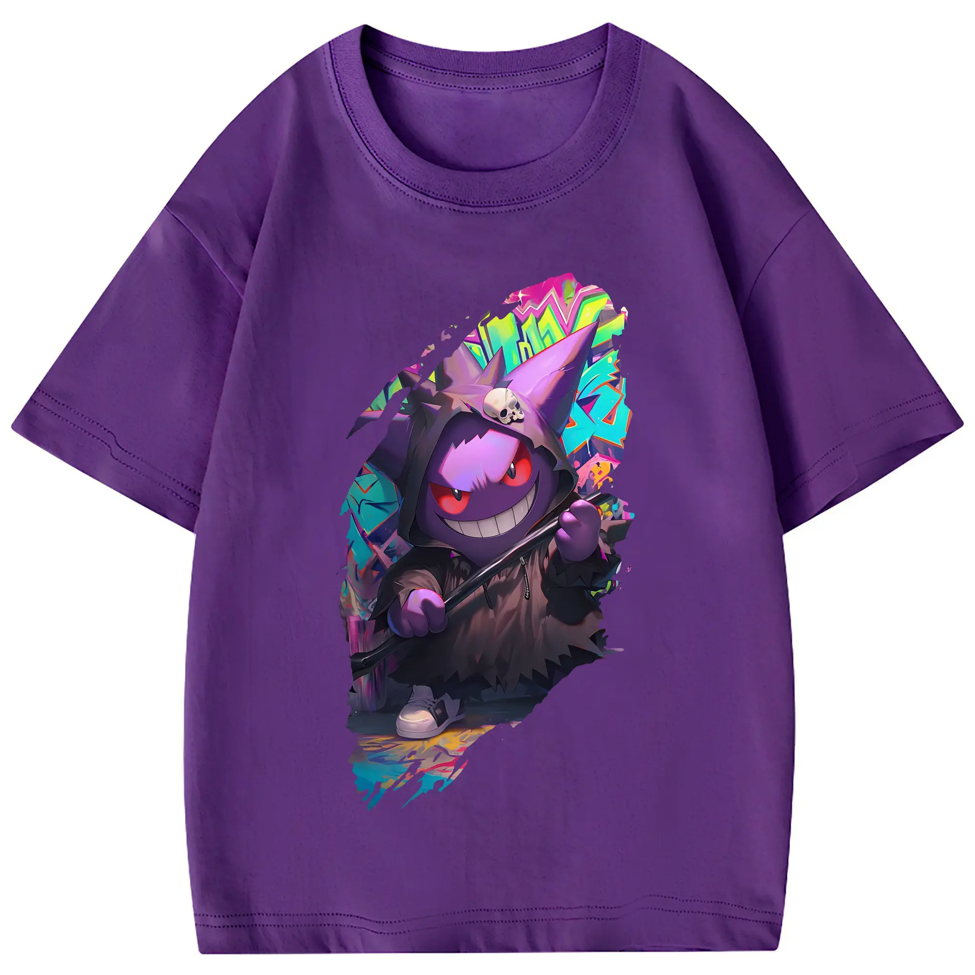 ポケモン グッズ,ゲンガー - 綿100% 半袖Tシャツ ・ フロントプリント ・ 快適 通気性 ・ 日常使い 散歩 スポーツ用