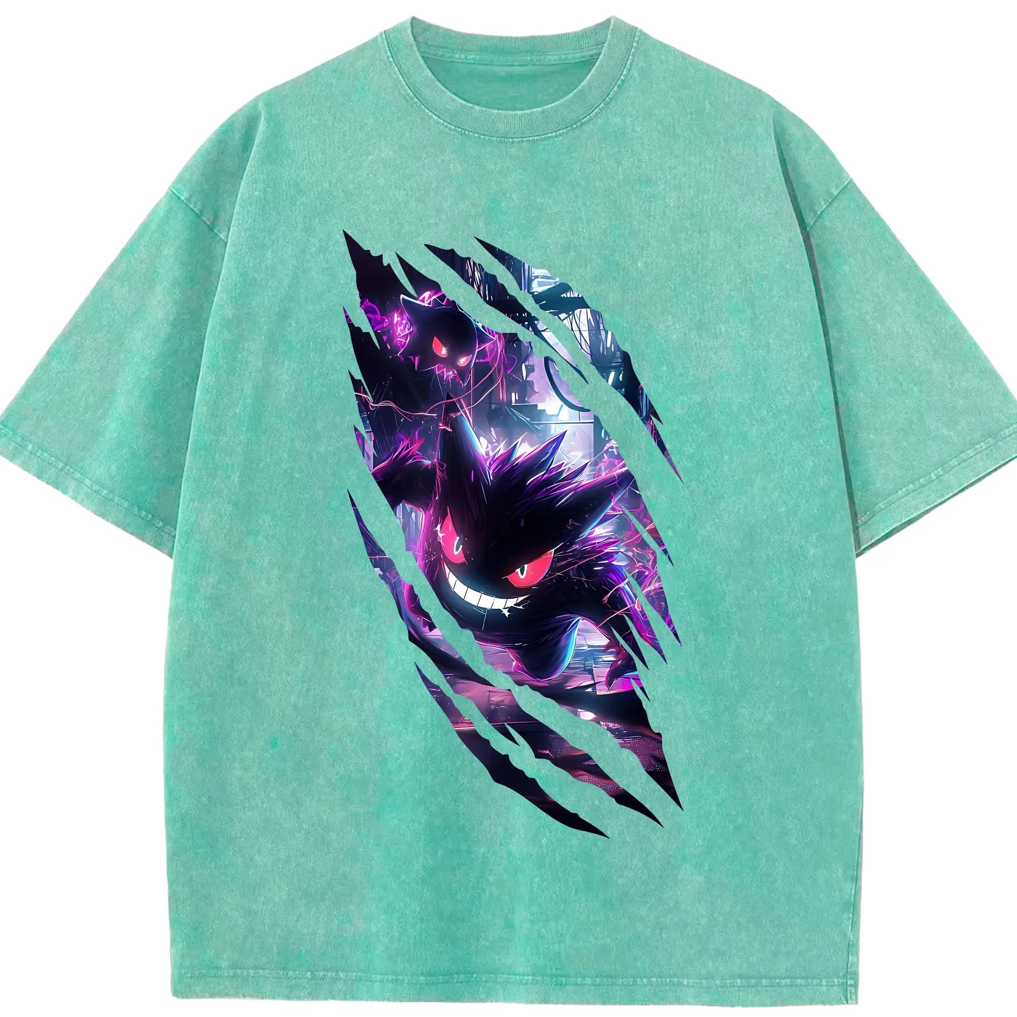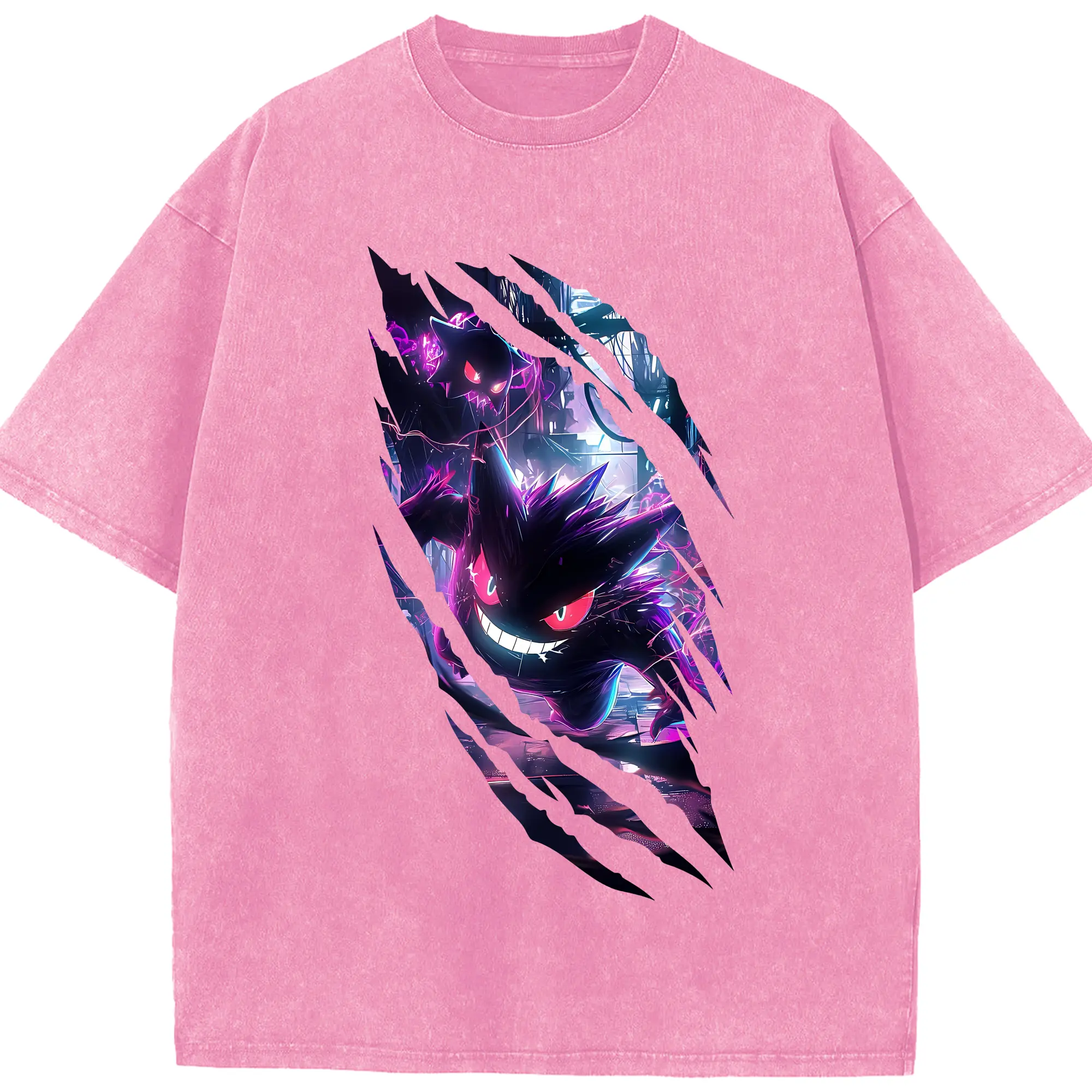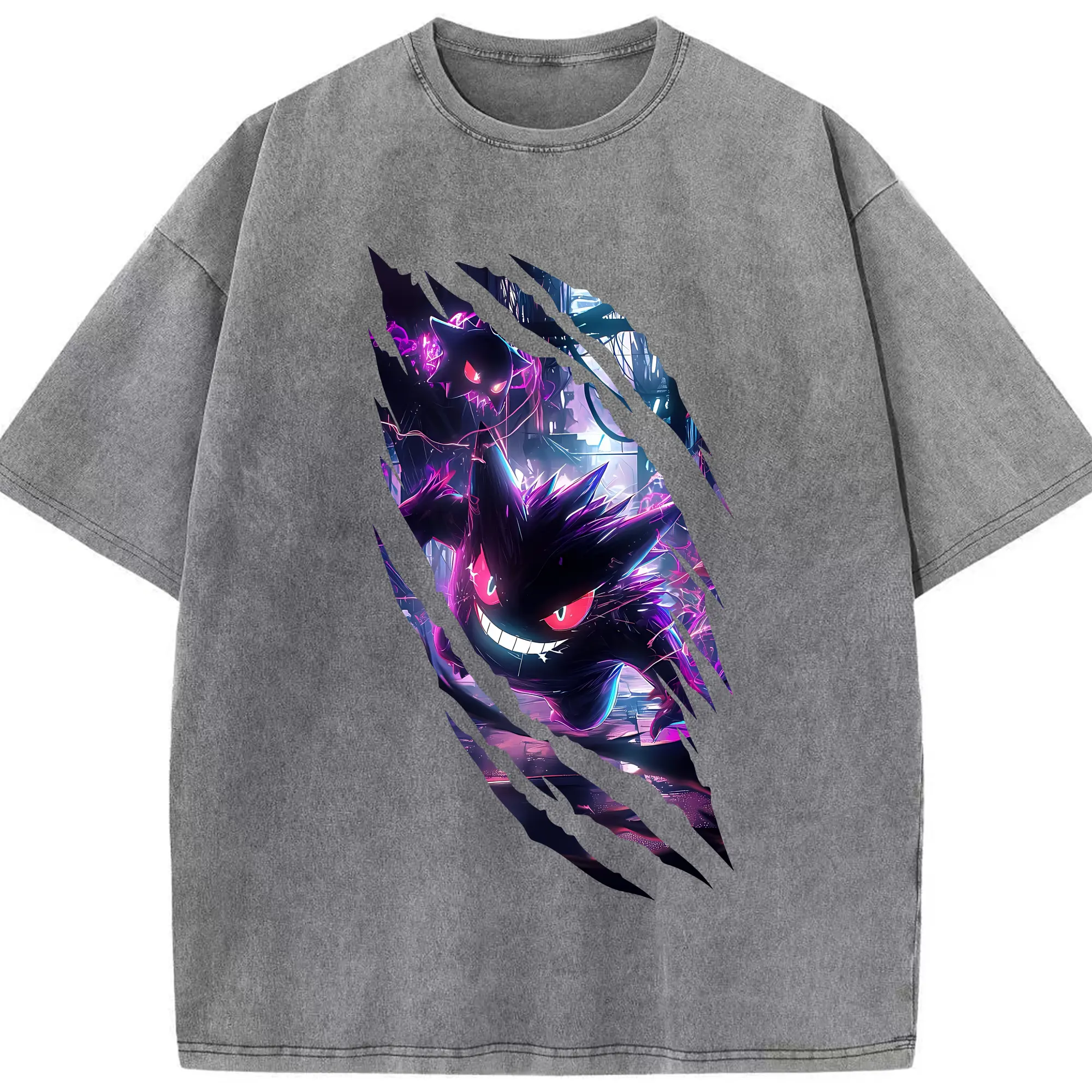 ポケモン グッズ,ゲンガー - 綿100% ヴィンテージ風 半袖Tシャツ ・ 背面プリント ・ 柔らか肌触り ・ 通気性 快適 ・ スポーツ カジュアル 外出用