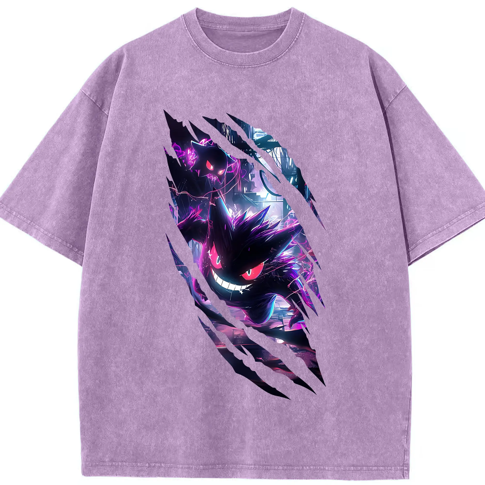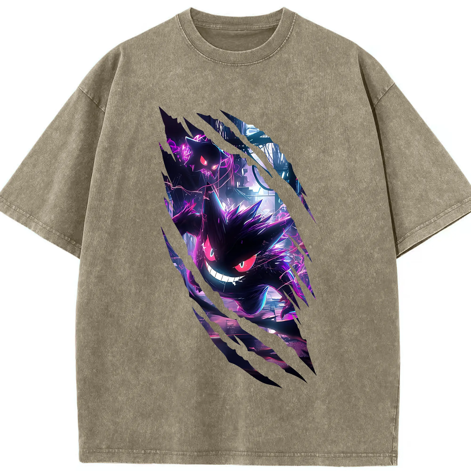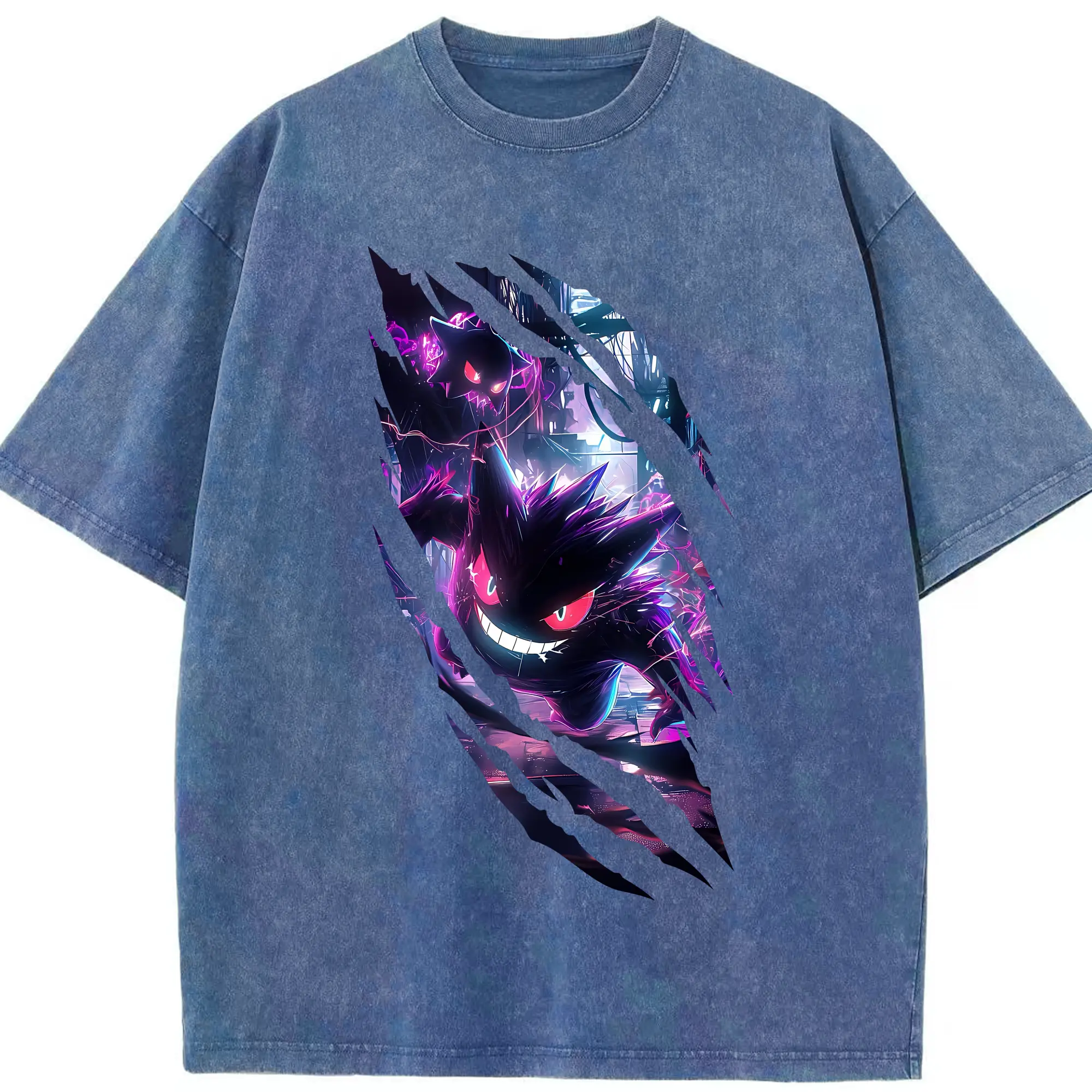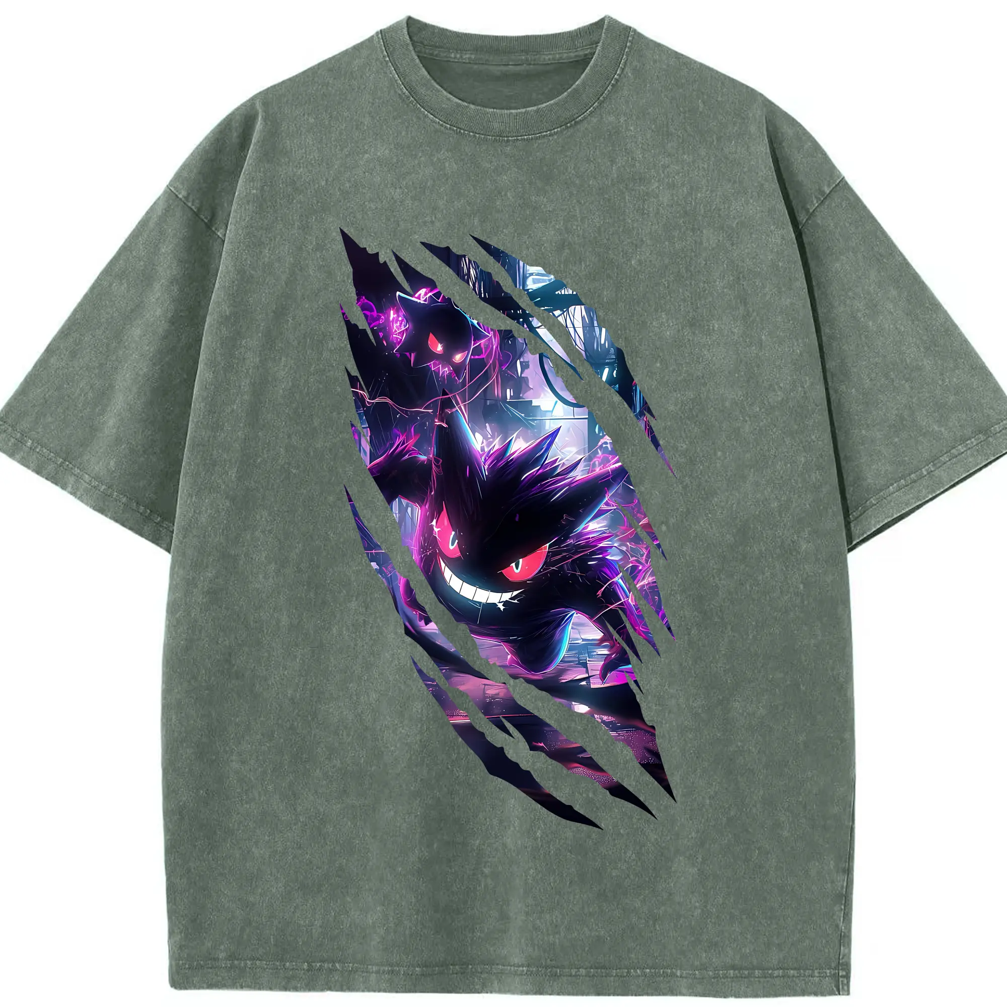 ポケモン グッズ,ゲンガー - 綿100% ヴィンテージ風 半袖Tシャツ ・ 背面プリント ・ 柔らか肌触り ・ 通気性 快適 ・ スポーツ カジュアル 外出用