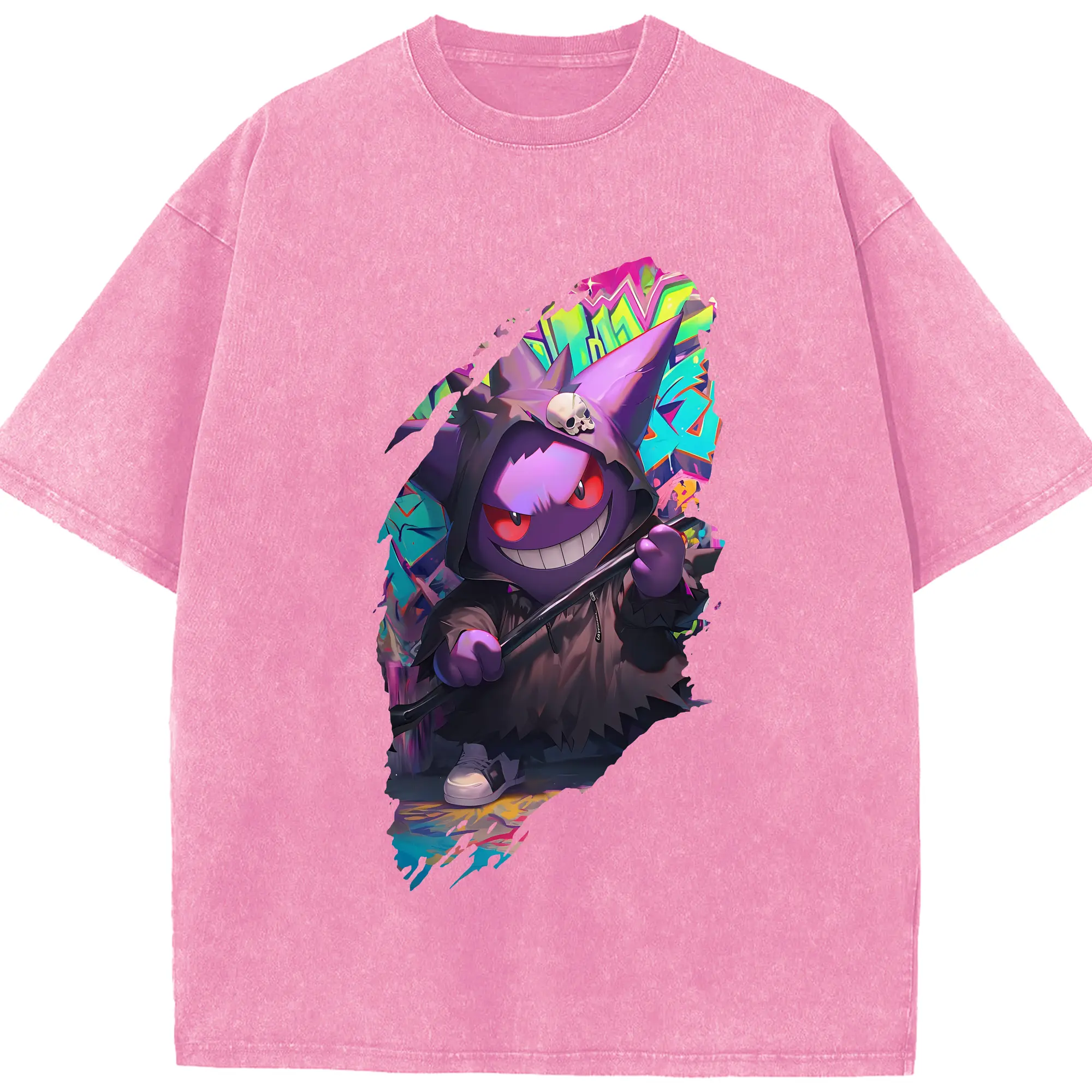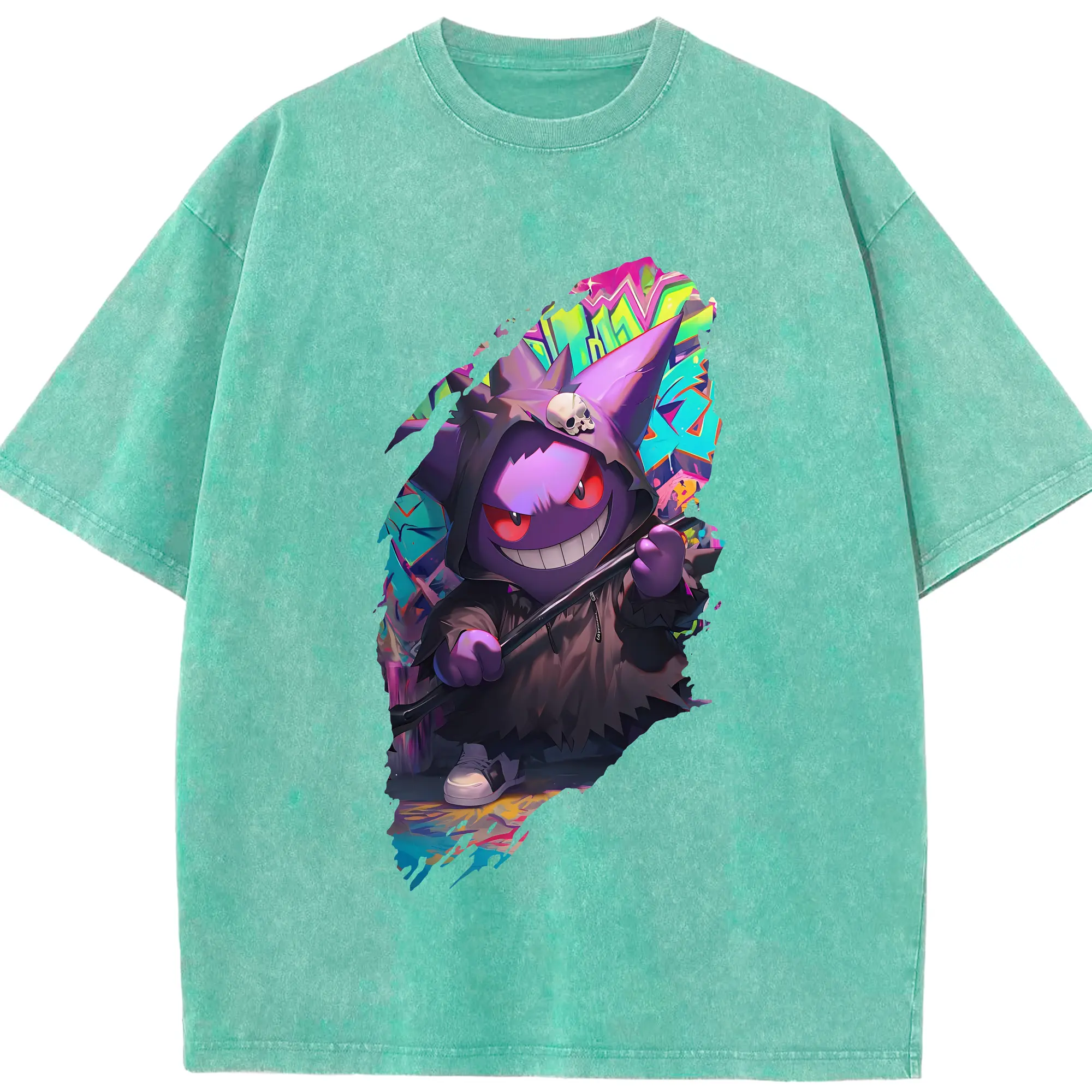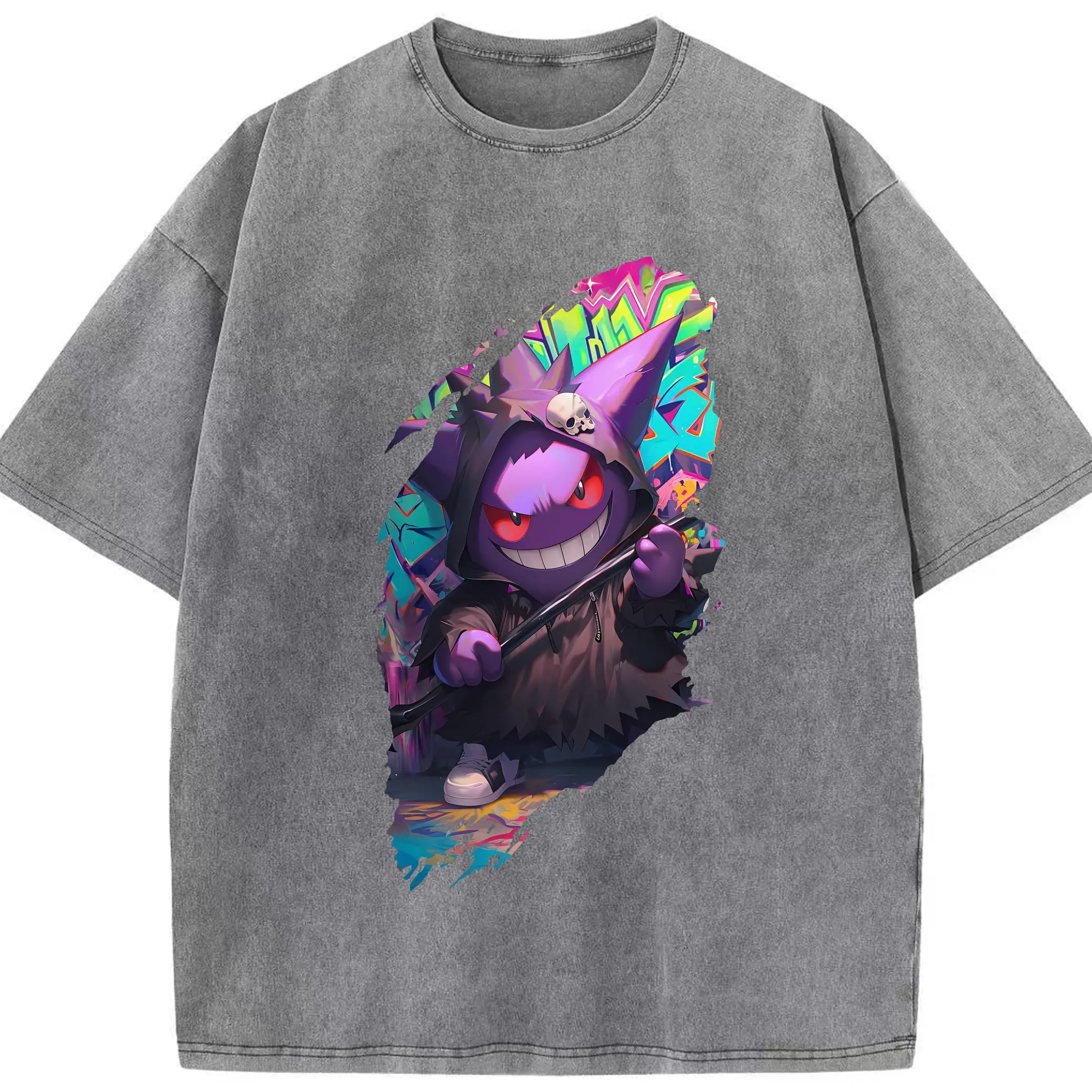 ポケモン グッズ,ゲンガー - 綿100% ヴィンテージ風 半袖Tシャツ ・ 背面プリント ・ 柔らか肌触り ・ 通気性 快適 ・ スポーツ カジュアル 外出用